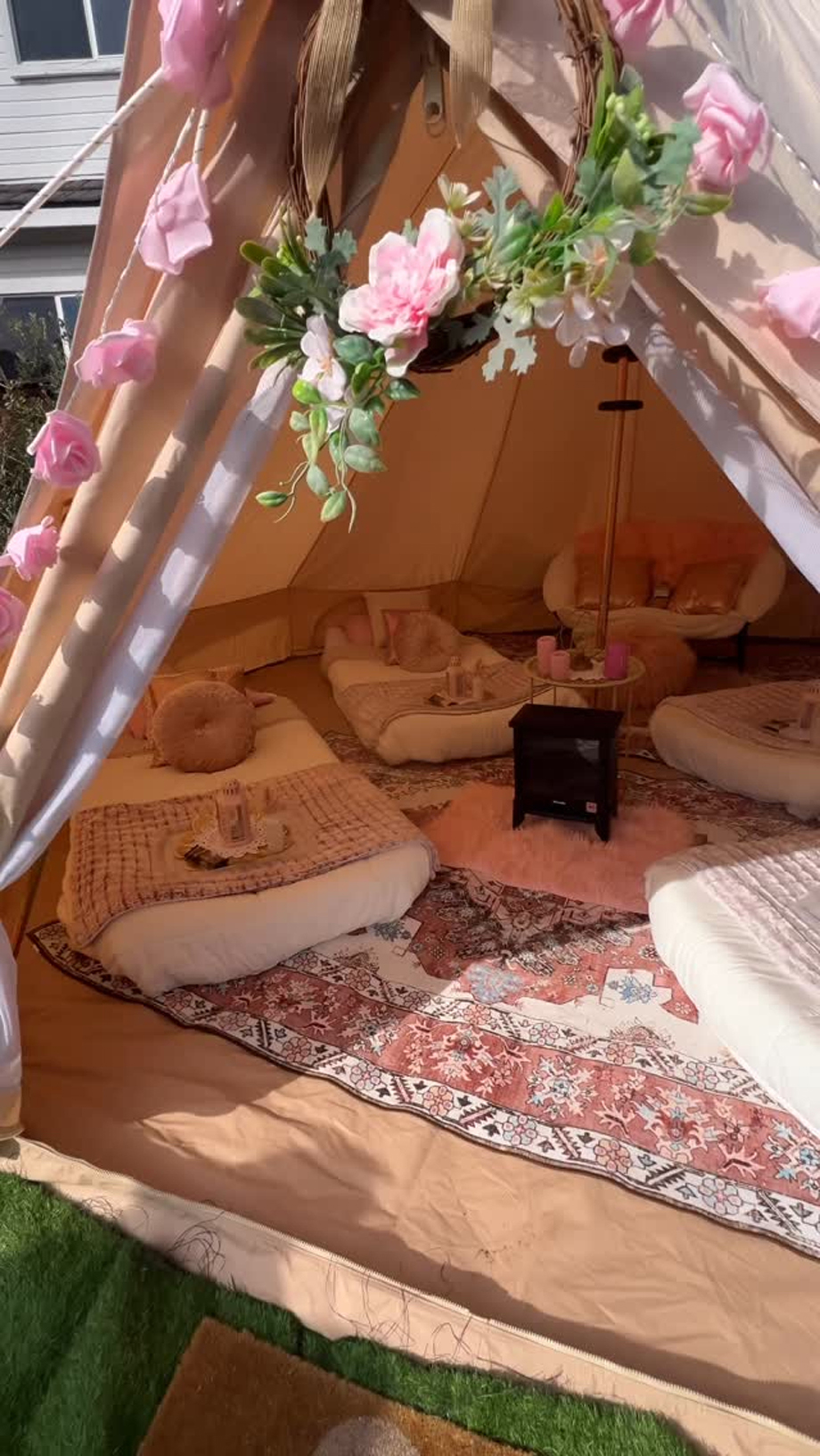 I’m not a camper at all. I’ve been camping unsuccessfully three times in my whole life. But I do love glamping and creating a five-star hotel room in a tent!