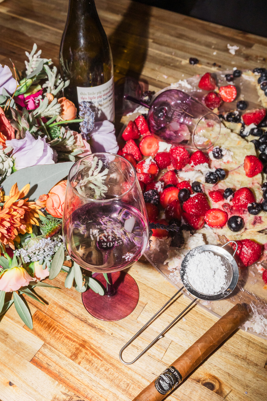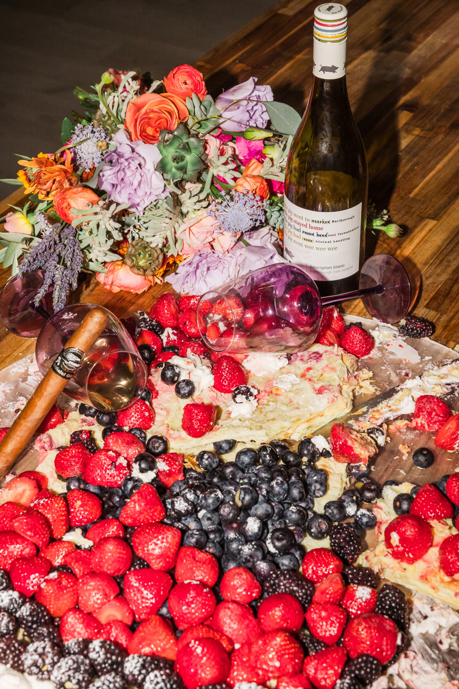 Bright colorful accents appear everywhere—tucked into cocktails, bursting from the bespoke paperie and the lounge designed for slow moments—and nearby a delicate millefoglie layered with cream and fruit awaits ready to be shared.