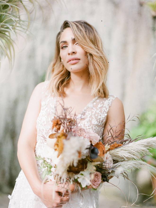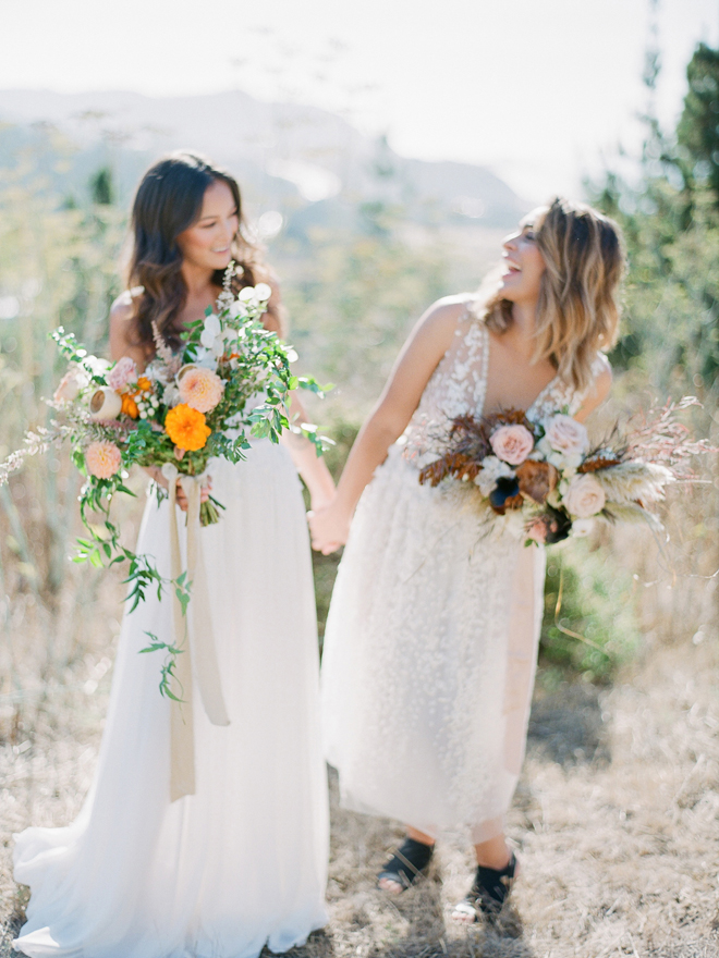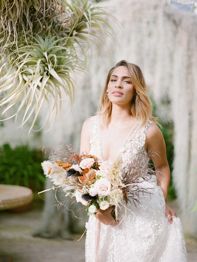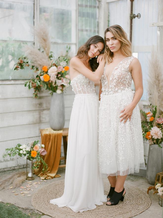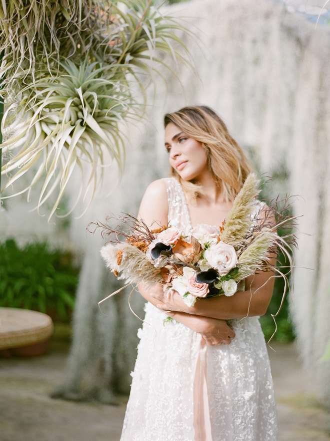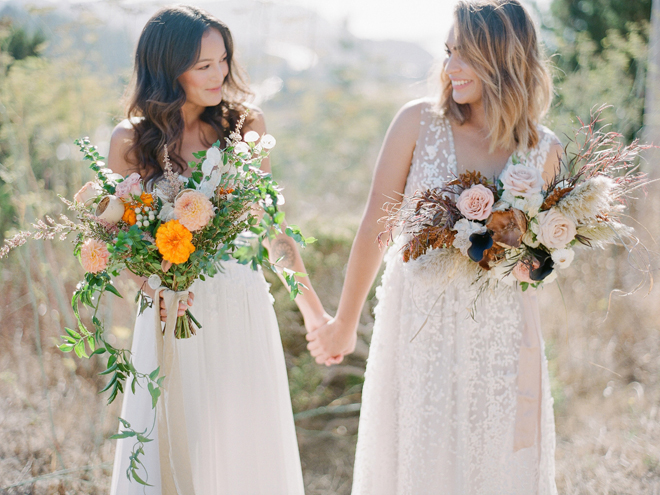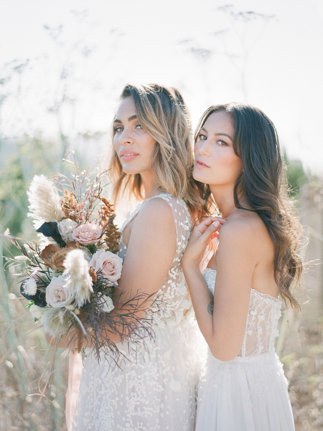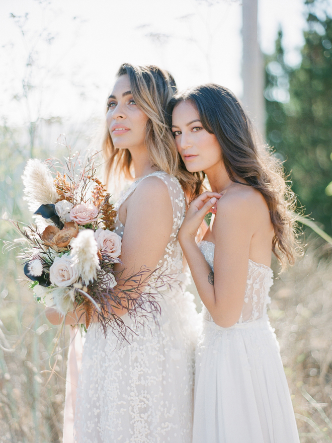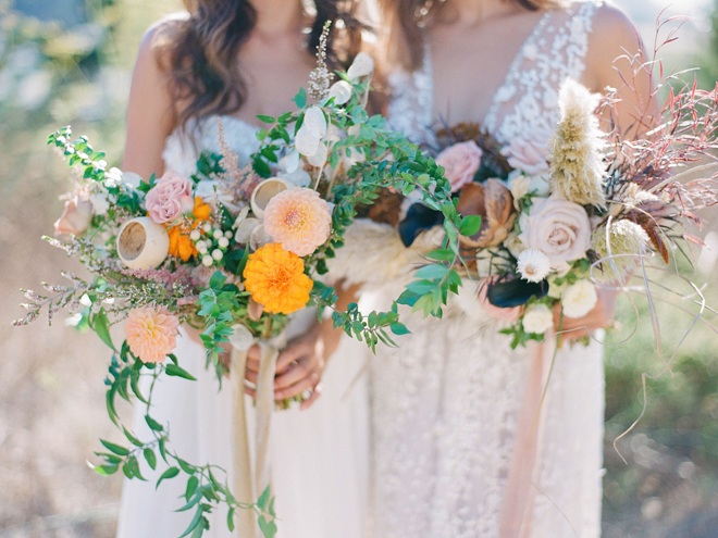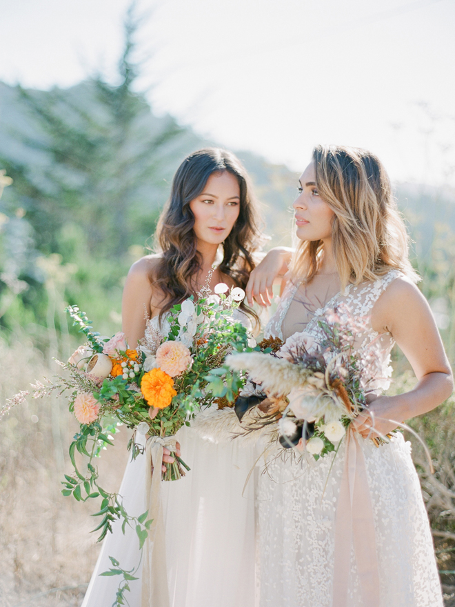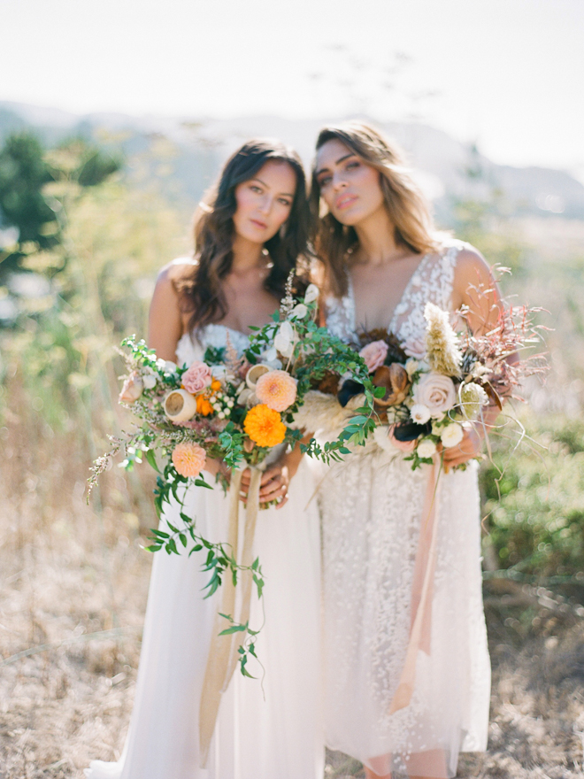 If you love #BohoBrideDetails as much as we do, you’re going to absolutely die over this #StyledShootSunday …it has all the feels: the boho vibe, bespoke bridal gowns, gorgeous hair and makeup, dreamy details and a late-summer color palette with burnt oranges and blushes…and wait until you see the ceremony pantsuit. #dying And the creative team tops it off with a fab getaway car to boot! Enjoy!