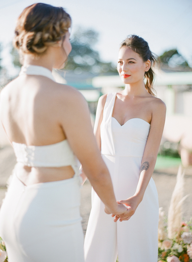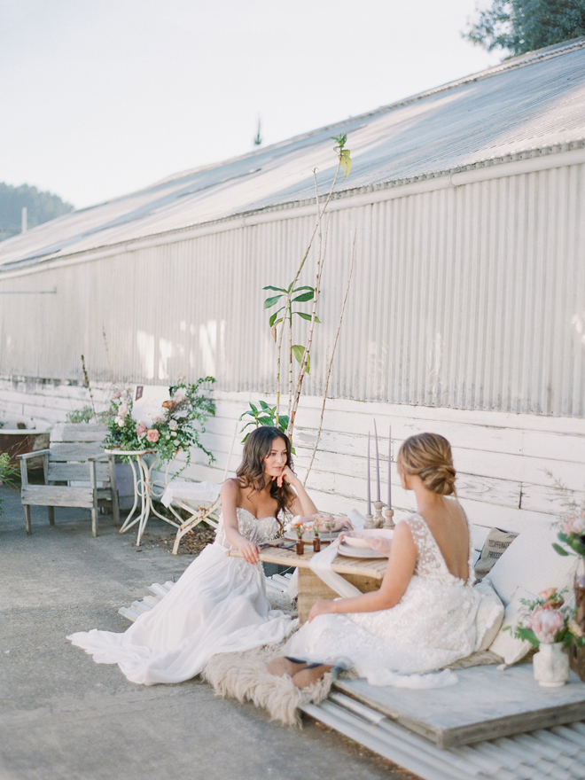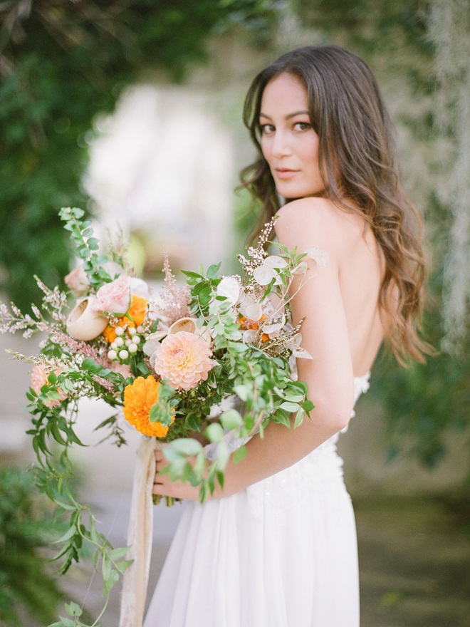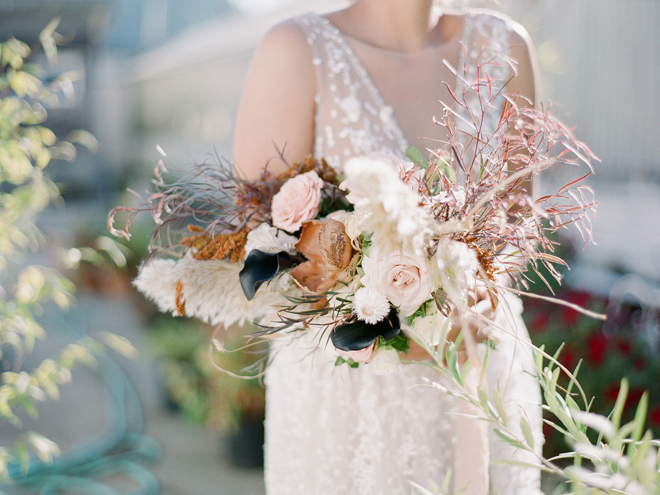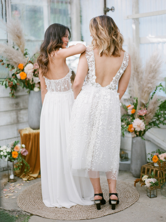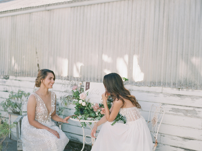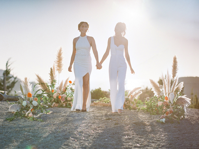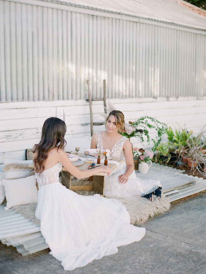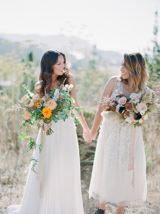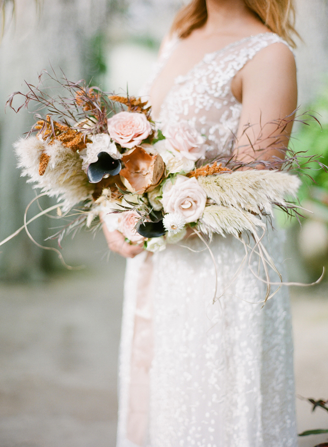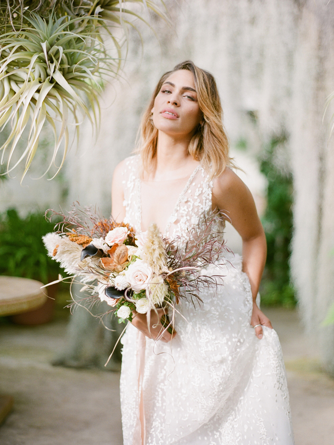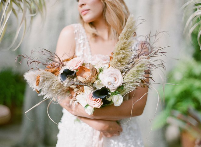If you love #BohoBrideDetails as much as we do, you’re going to absolutely die over this #StyledShootSunday …it has all the feels: the boho vibe, bespoke bridal gowns, gorgeous hair and makeup, dreamy details and a late-summer color palette with burnt oranges and blushes…and wait until you see the ceremony pantsuit. #dying And the creative team tops it off with a fab getaway car to boot! Enjoy!