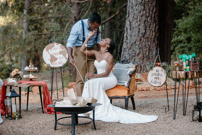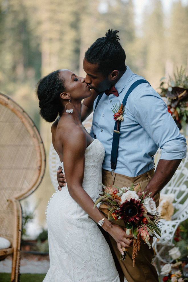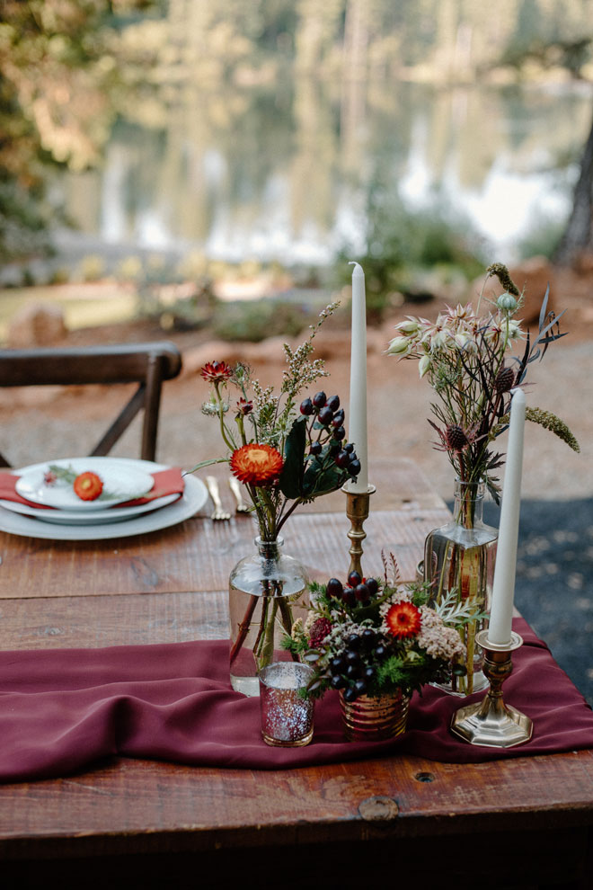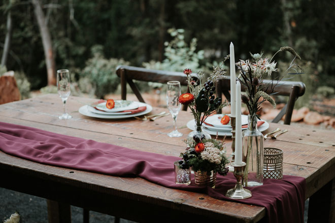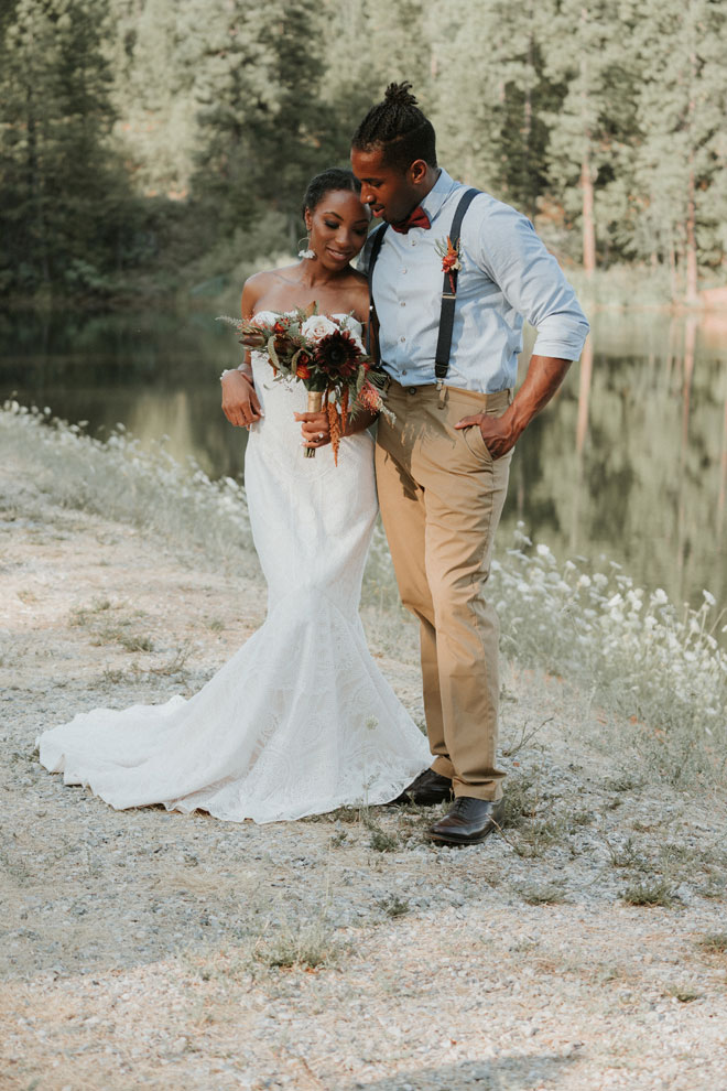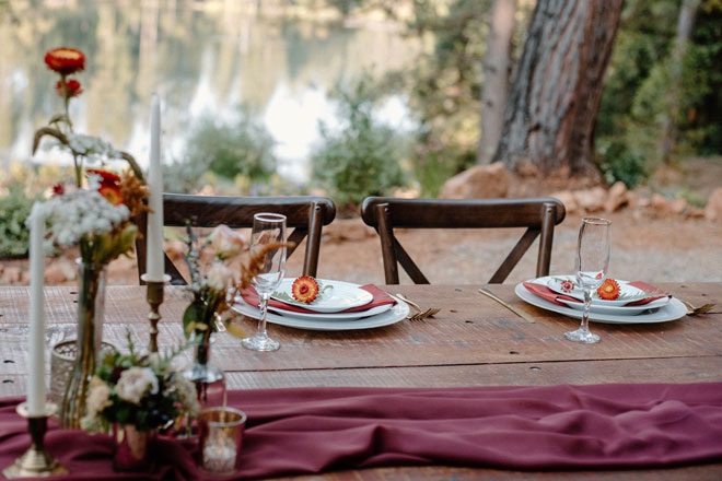 Grab your scarf and boots because we’re going to Apple Hill! Okay, it may not feel like fall but this elopement style inspiration has got us feeling the crisp autumn breeze we all (im)patiently wait for. Plus, we have to admire a couple that jumps in the water at the end of a shoot and looks Hot (yes, with a capital h!) while doing it! Scroll for perfect fall micro-wedding inspiration.