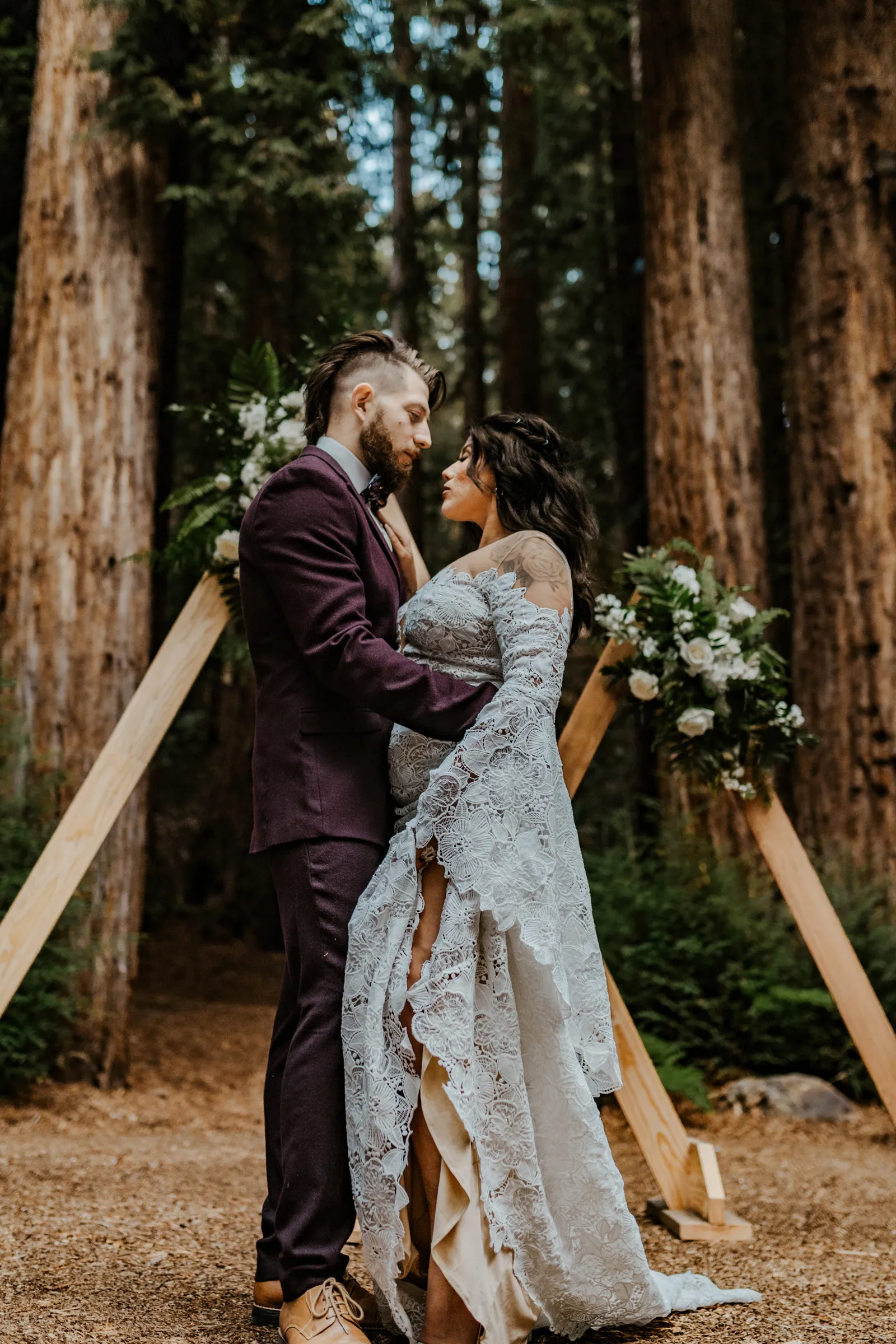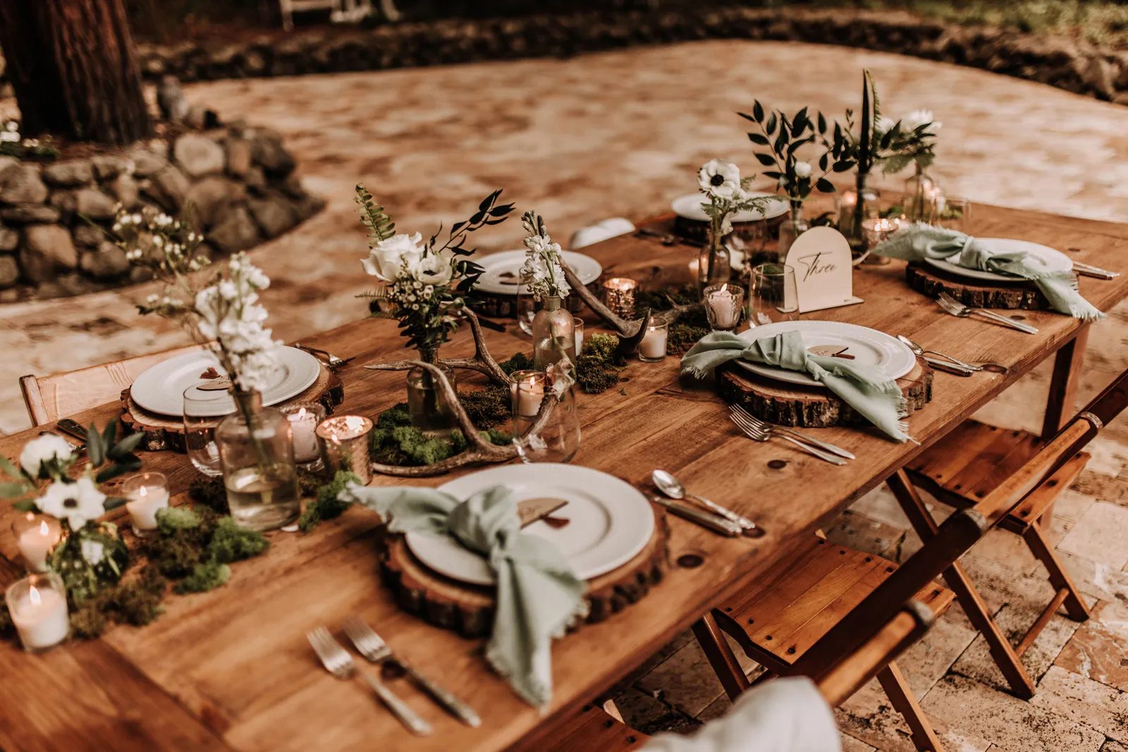 Happy Sunday! If you’re in need of some wedding inspo — don’t worry, we’ve got you covered with this beautiful shoot; photographed and hosted by Kaybebe Photography and Jordan Marie Photography, with more photography from Jackie Rangel Photography. We hope you take the time to enjoy this amazing Submitted Styled Shoot, complete with Bohemian touches, dance floors surrounded by the pines, absolutely divine charcuterie, and much, much more!