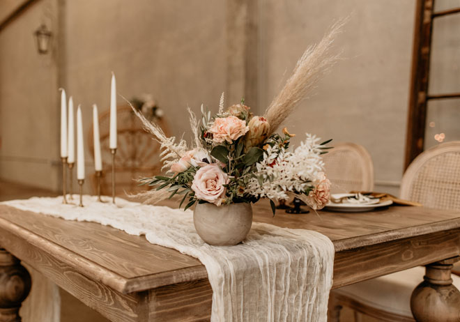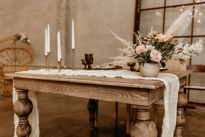 Natural elements combining earthy tones and different textures make for an artistic display like this wedding inspiration styled shoot by Geejers Photo at The Willow Ballroom and Event Center. Scroll for the perfect bohemian wedding inspiration!