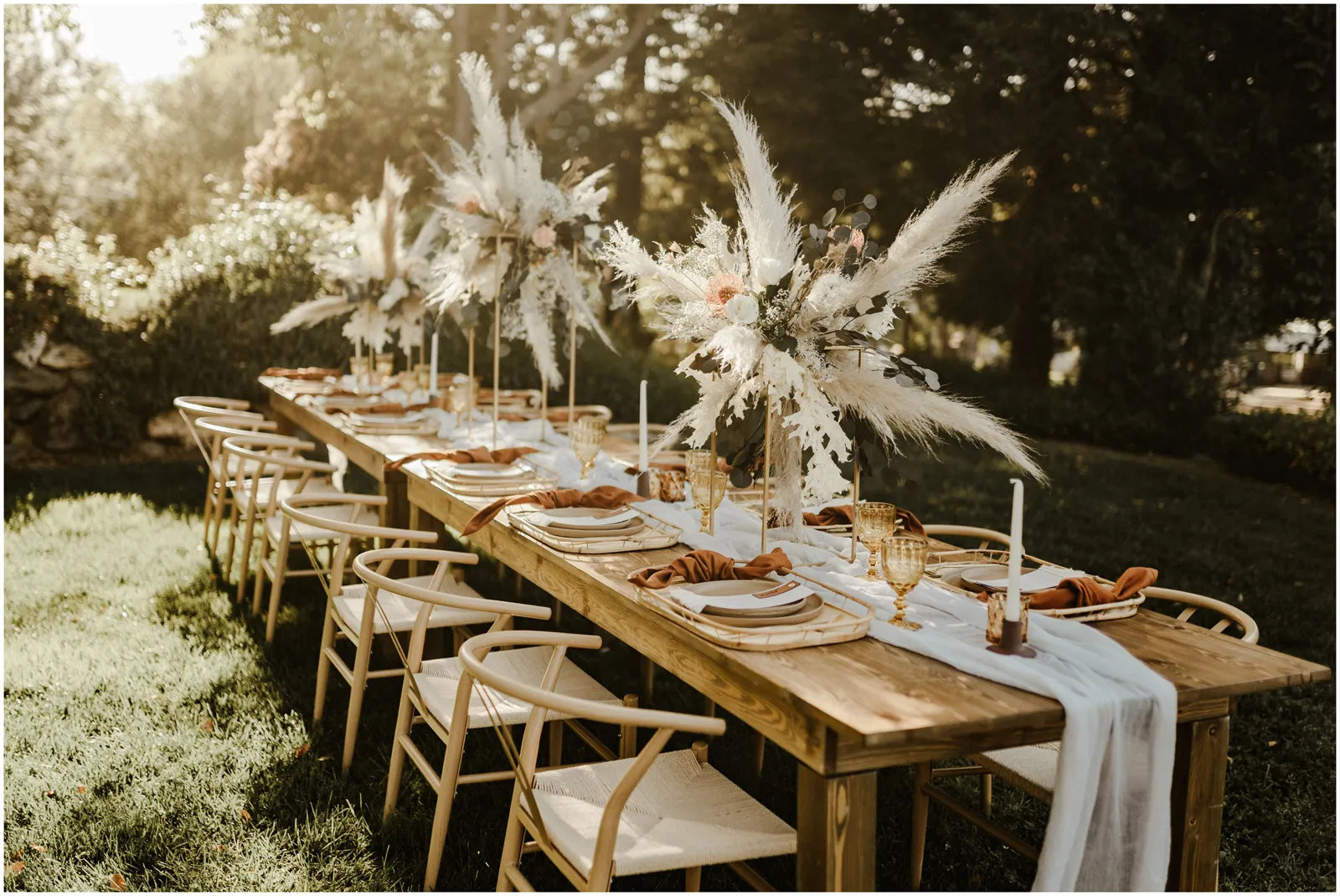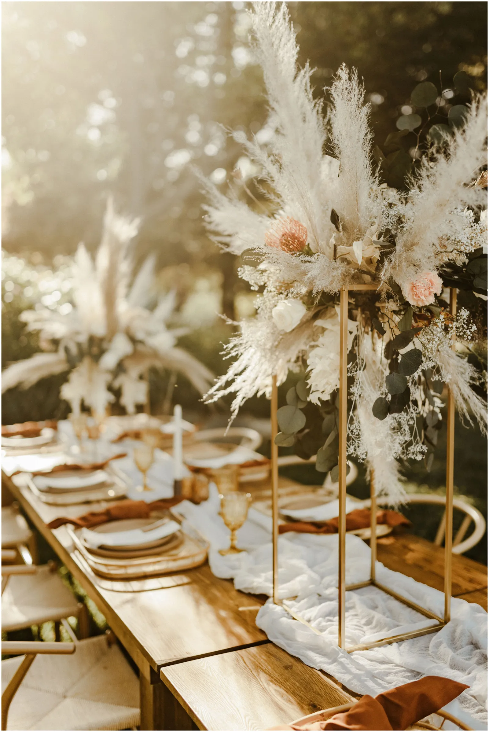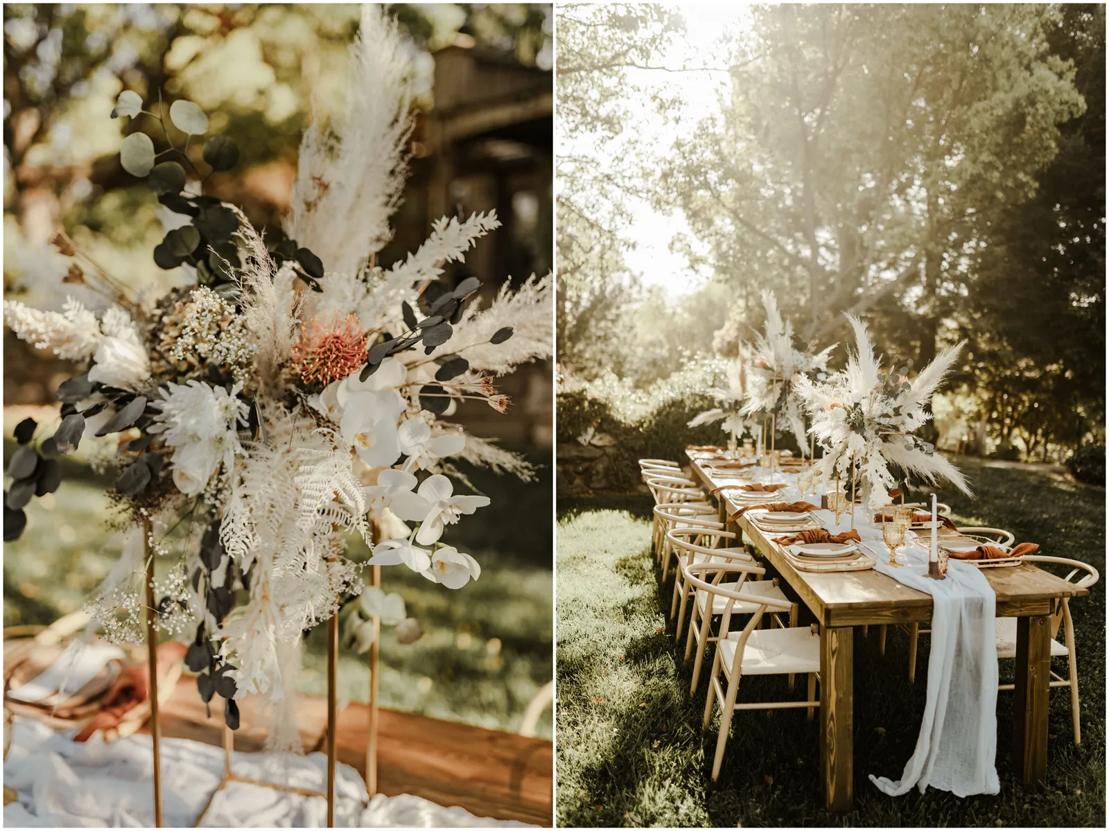 For this styled shoot, we really wanted to focus on an attainable and trendy vibe. We wanted it to be natural, rustic and chic. The mixture of dried florals, rattan elements, macrame and gold accents really made our vision come to life.