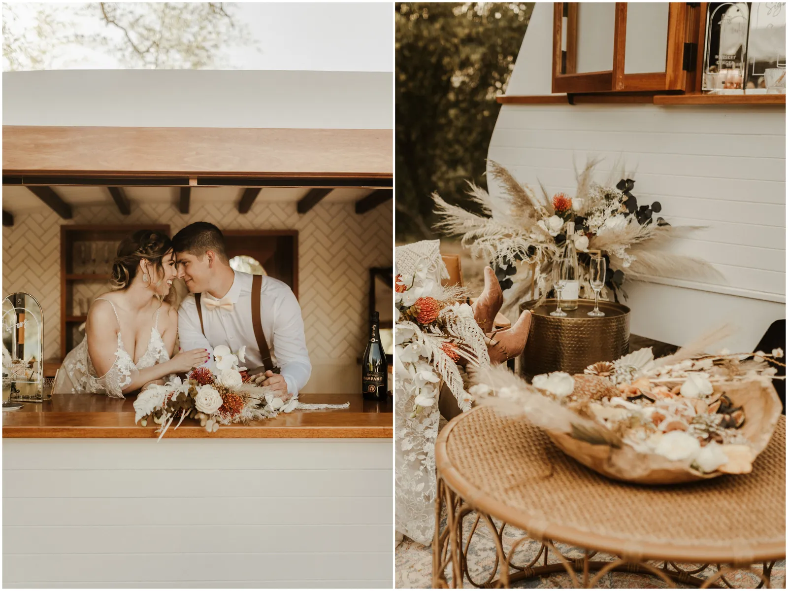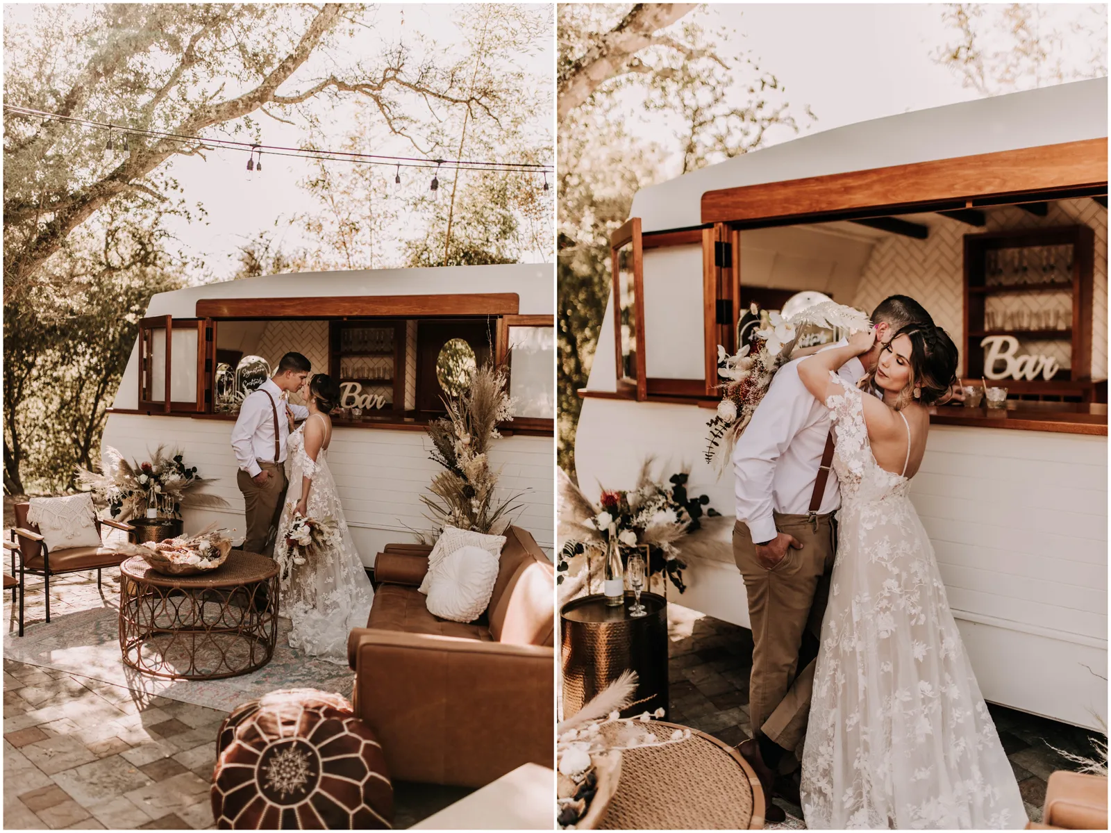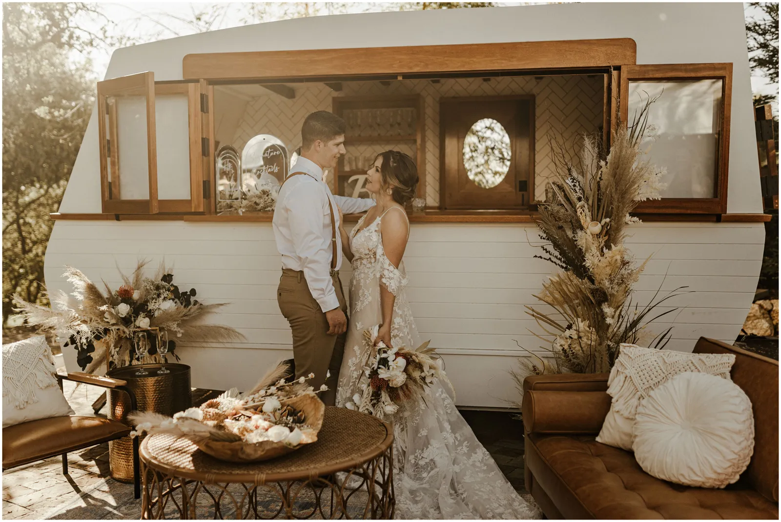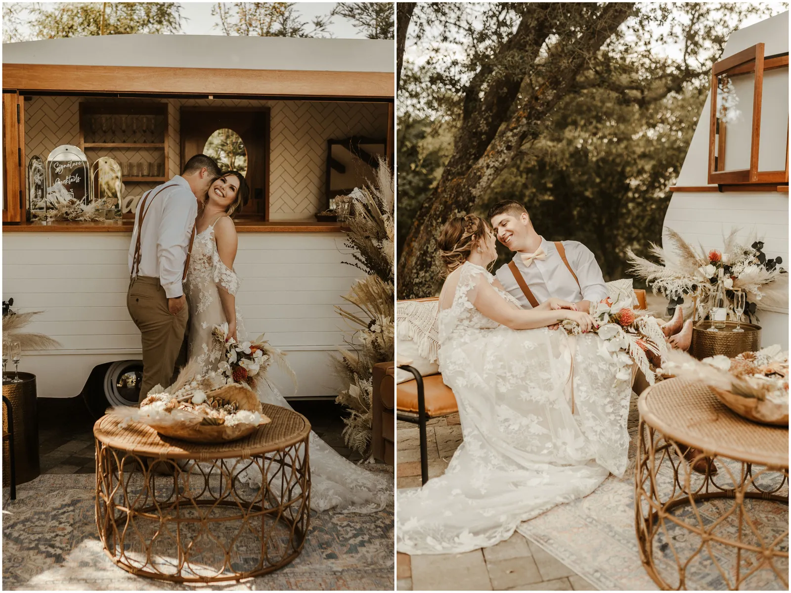 This included a gorgeous and natural ceremony set up, a lounge set up including a mobile bar and some delicious charcuterie and the reception with beautiful details and of course, a dessert bar. boho, rustic and romantic.