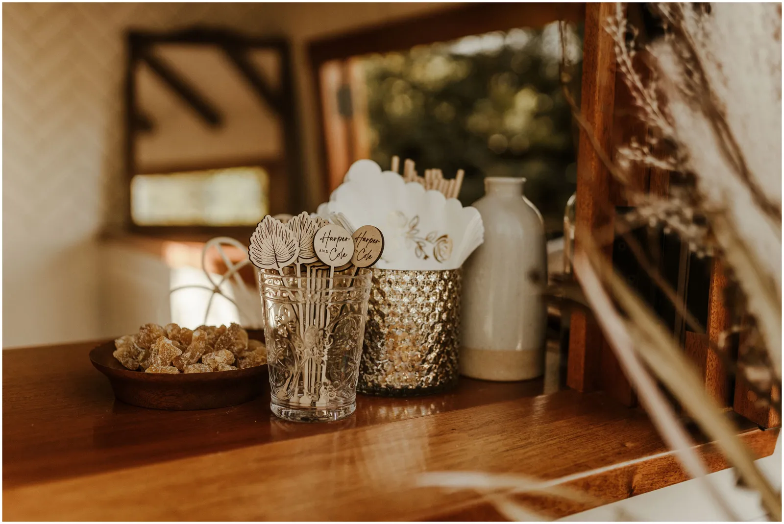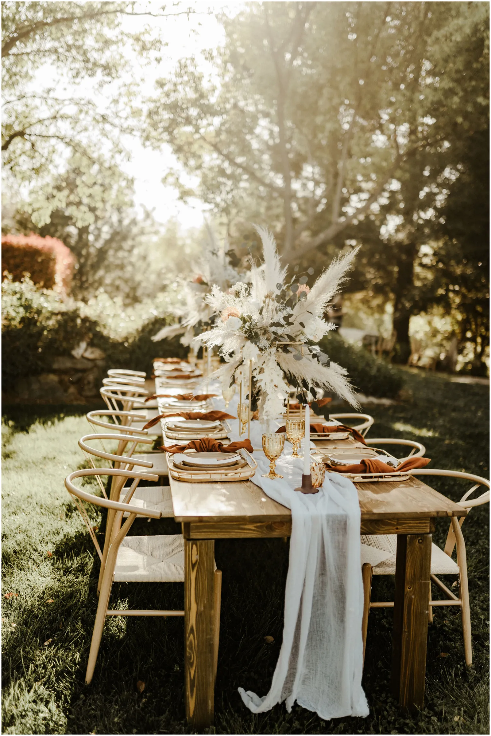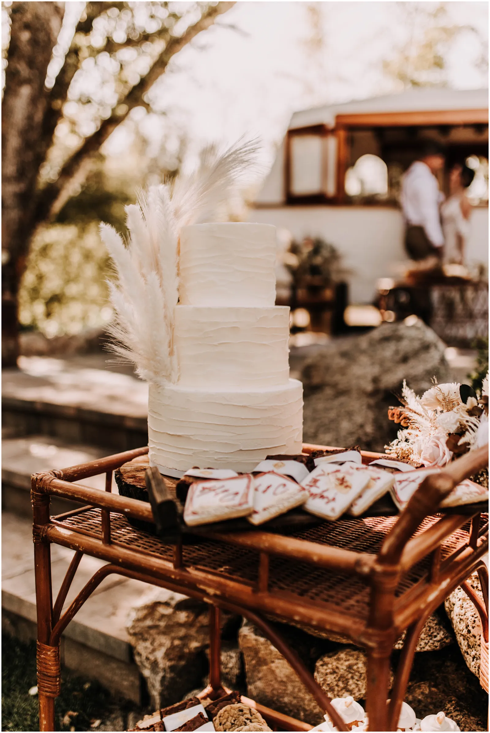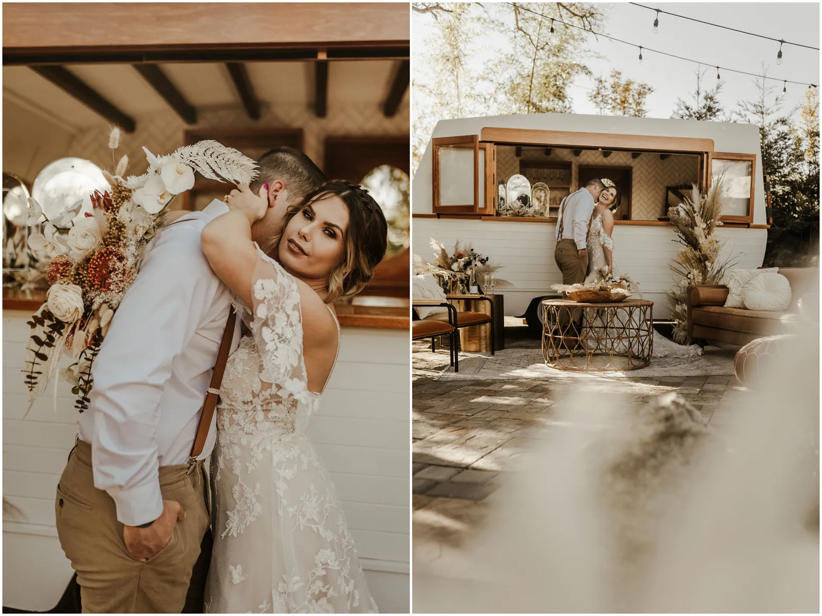 This included a gorgeous and natural ceremony set up, a lounge set up including a mobile bar and some delicious charcuterie and the reception with beautiful details and of course, a dessert bar. boho, rustic and romantic.