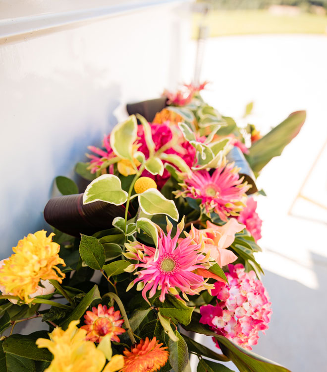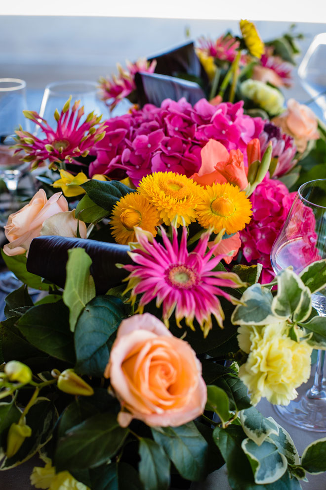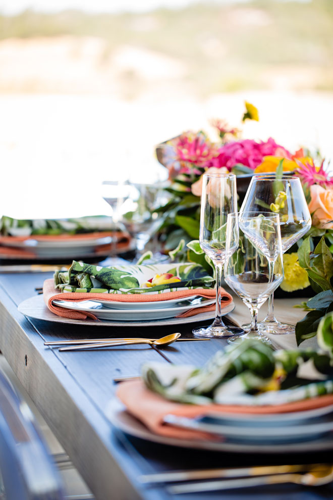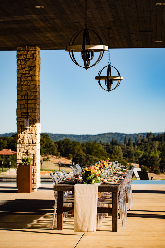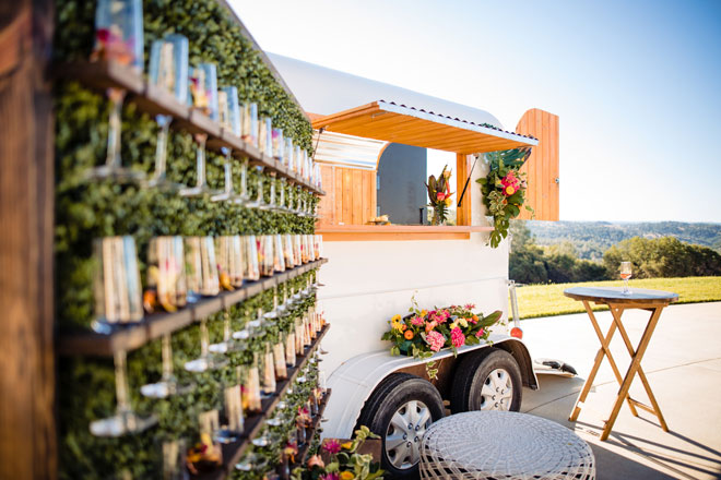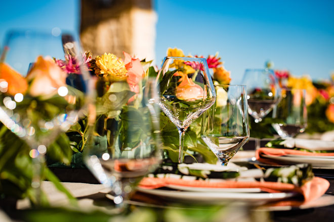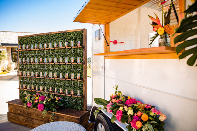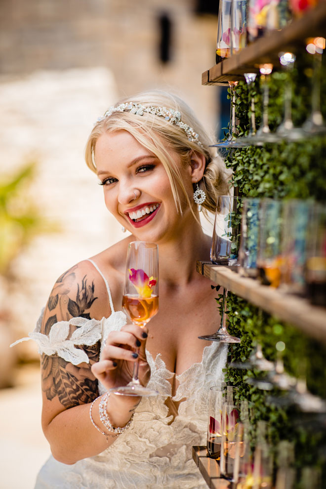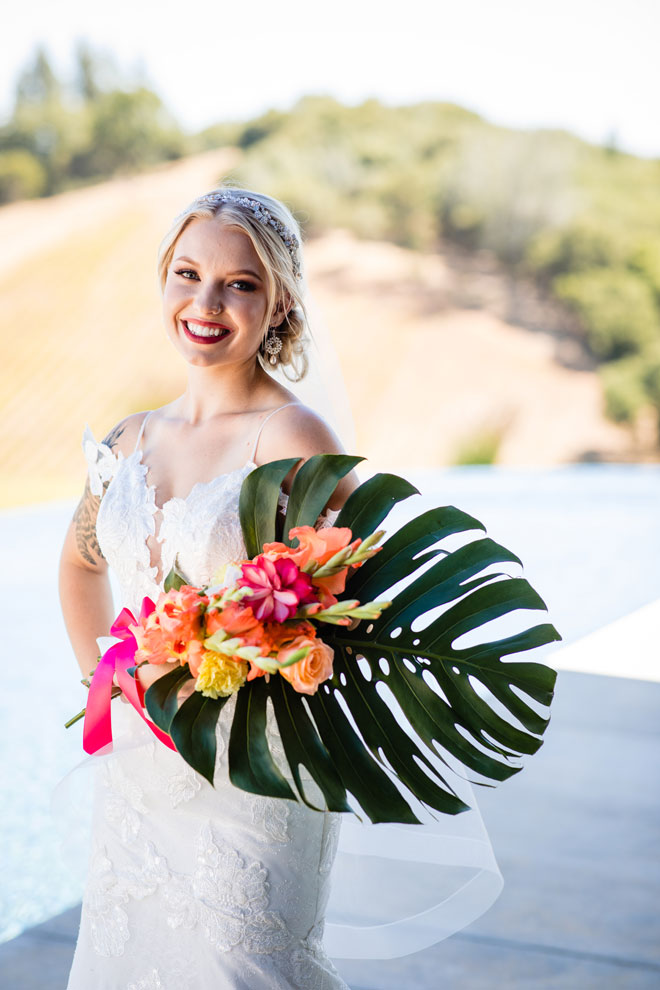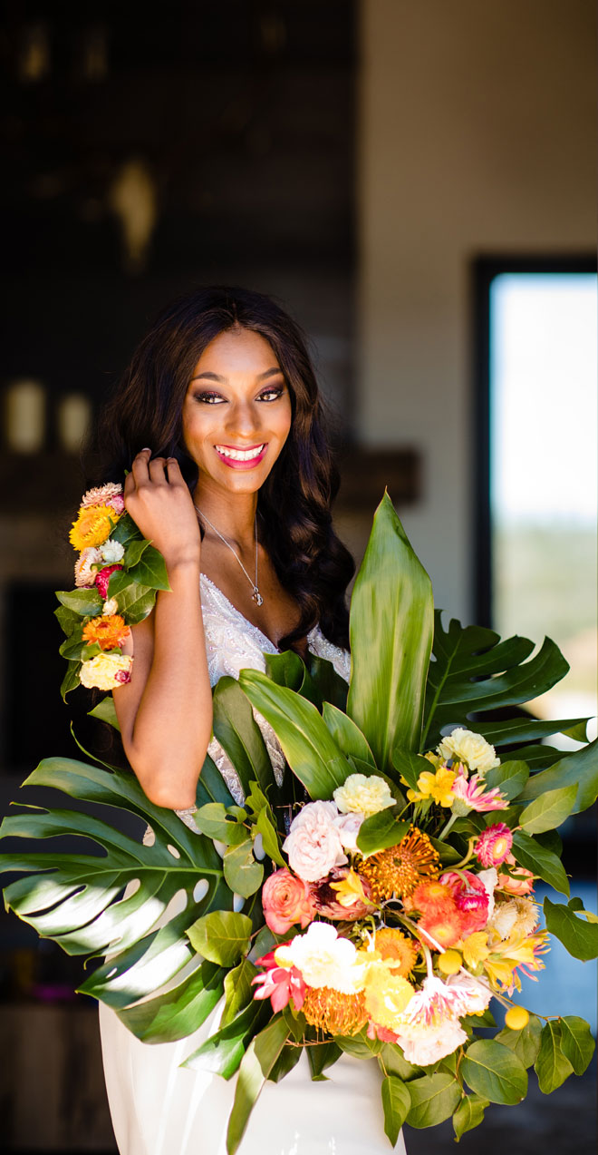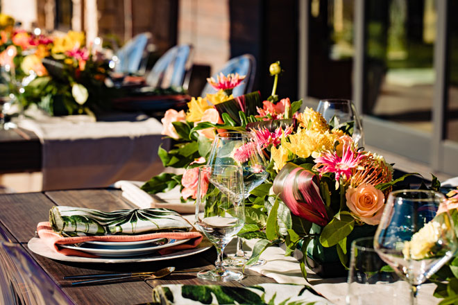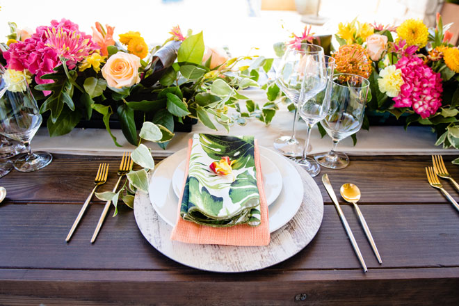 As we say goodbye to summer we’ll gladly leave you with a bit of tropical inspiration from this bright and beautiful styled shoot. The fun colors with plenty of tropical greens, stunning views and a sparkling wine wall (yes, please!) will have you planning your next event with a tropical dream theme in mind!