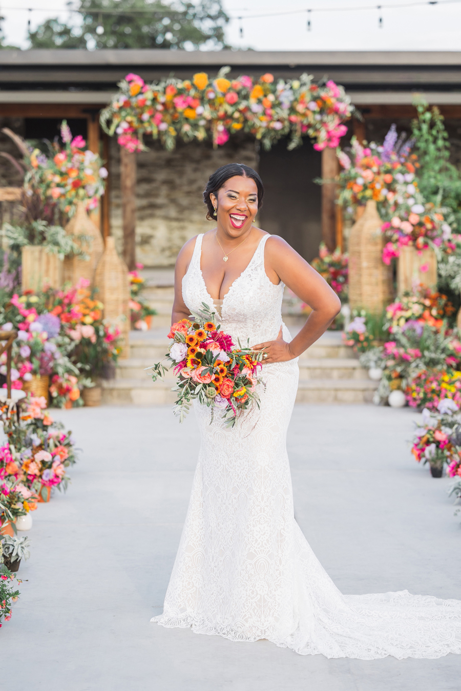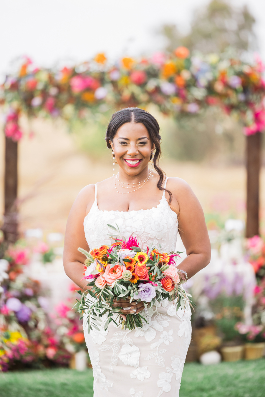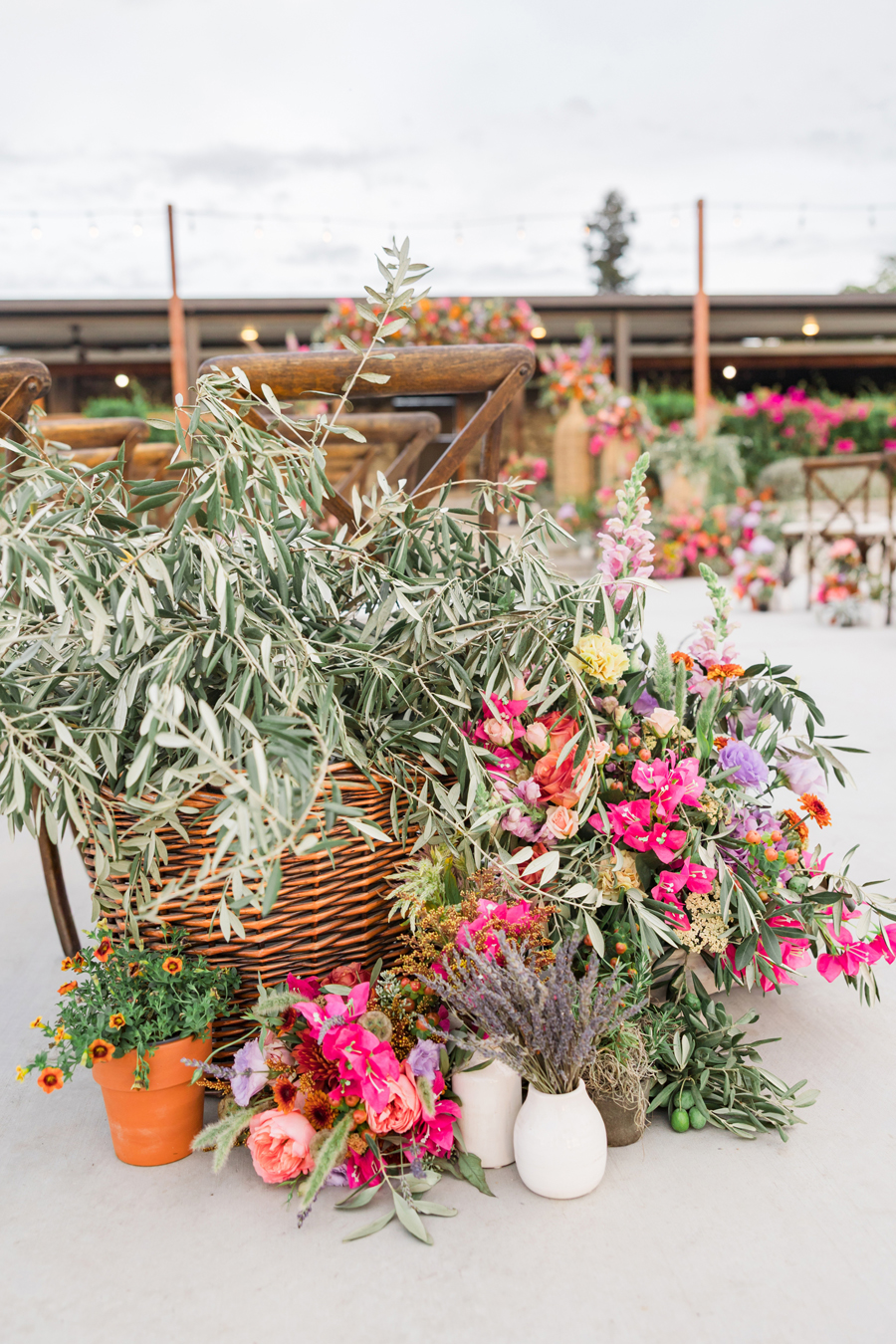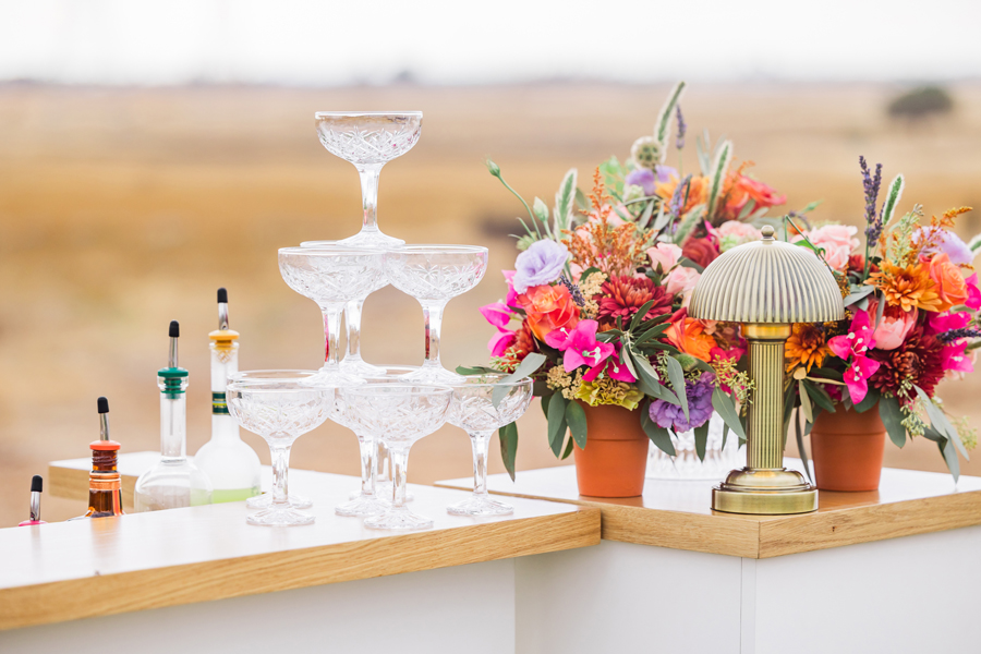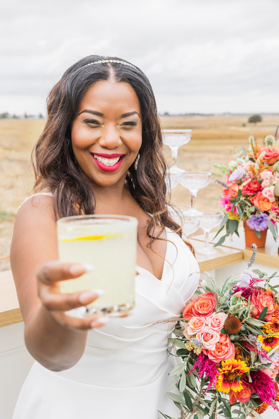 Led by Sara from Rainbow Weddings & Events, the talented creative team made up of amazing local wedding professionals curated each moment with purpose—from the lush ceremony aisle and abundant floral installations to the playful lounge vignettes, citrus-inspired cocktails, and artfully styled tablescapes. A rich palette of coral, pink, orange, and golden yellow blooms infused the space with warmth and movement, while soft neutrals and natural materials grounded the look, allowing the florals to truly shine. Designed as a celebration of love, individuality, and unapologetic color, this shoot is proof that weddings can feel refined and editorial while still embracing joy, personality, and a little bit of fun. Scroll on for endless inspiration—and a reminder that when it comes to love, more is definitely more.