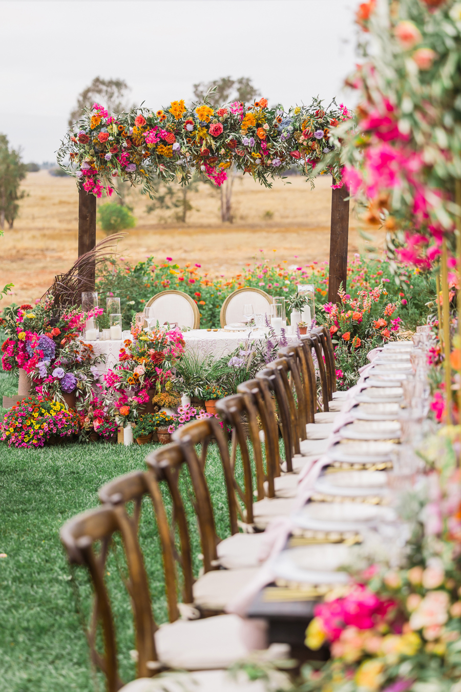 Bursting with color, texture, and joyful romance, we’re thrilled to share our “A Love Affair in Full Bloom” styled shoot. This wedding inspo collab celebrates bold florals, thoughtful design, and modern garden elegance. Set against the scenic backdrop of Estate Farms in Sacramento, this styled shoot was envisioned to showcase how vibrant hues, layered textures, and intentional styling can come together to create a wedding day that feels both elevated and full of life.