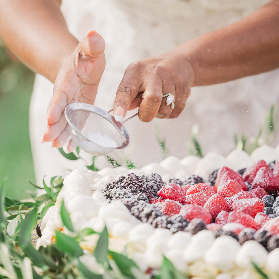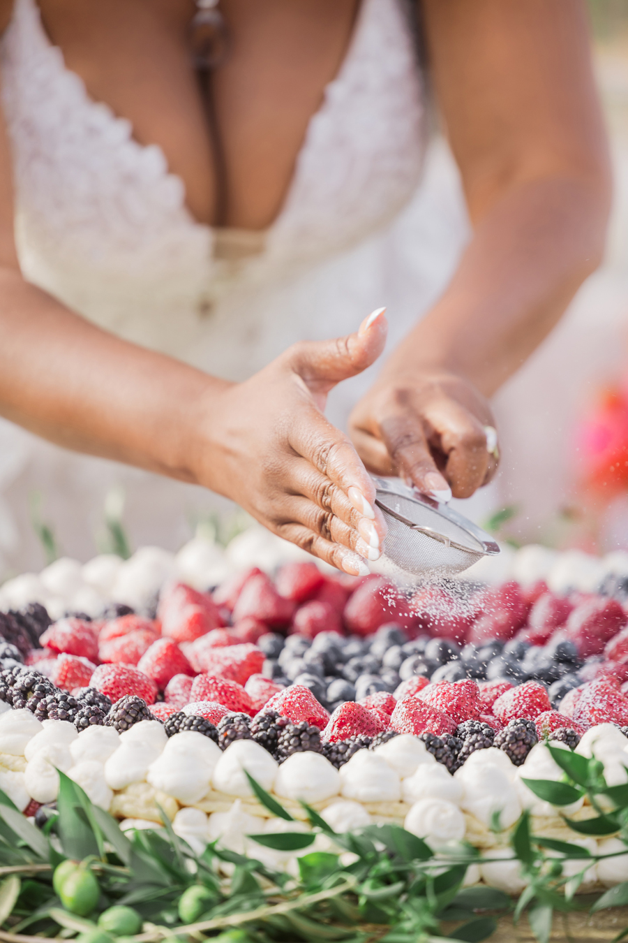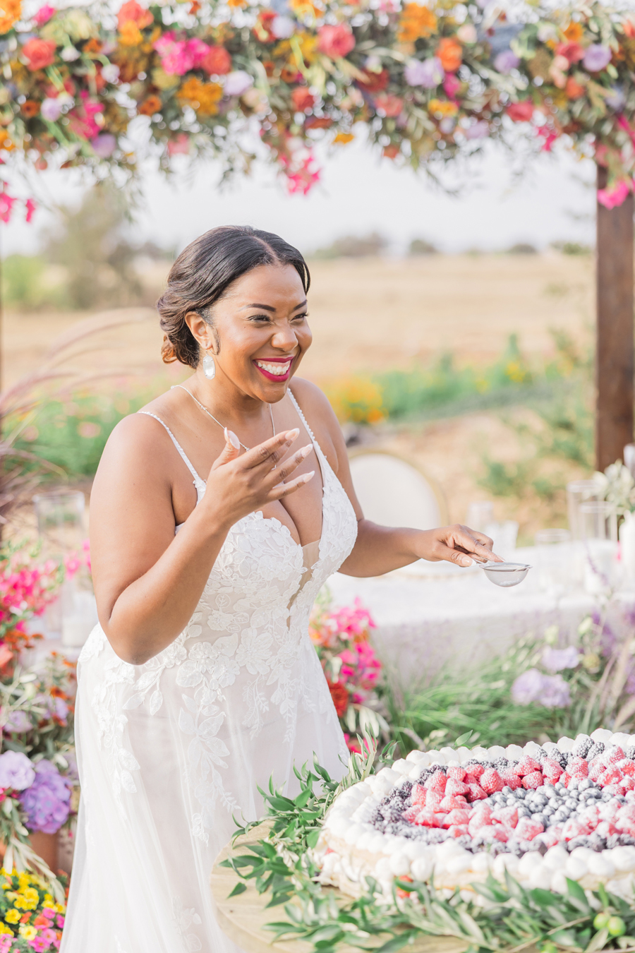 Elements like long banquet tables, the gorgeous berry and fig Italian wedding cake, creatively-crafted cocktails, and citrus accents were inspired by Mediterranean hospitality and the idea of sharing food, stories, and time together. At the end of the day, I wanted the whole scene to feel welcoming, romantic, and lived-in—effortless, joyful, and deeply human.” Feast your eyes on this beauty, dear readers!