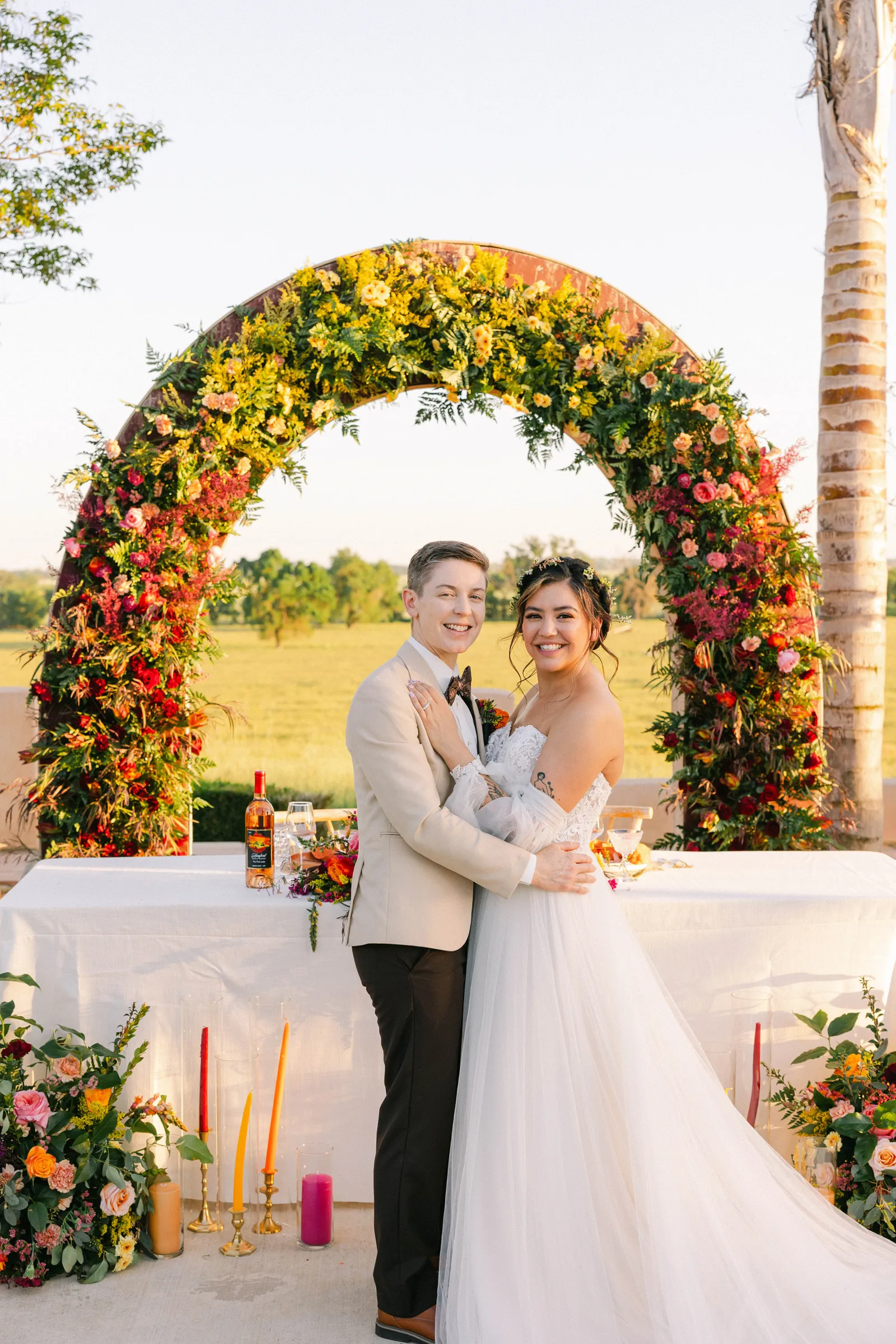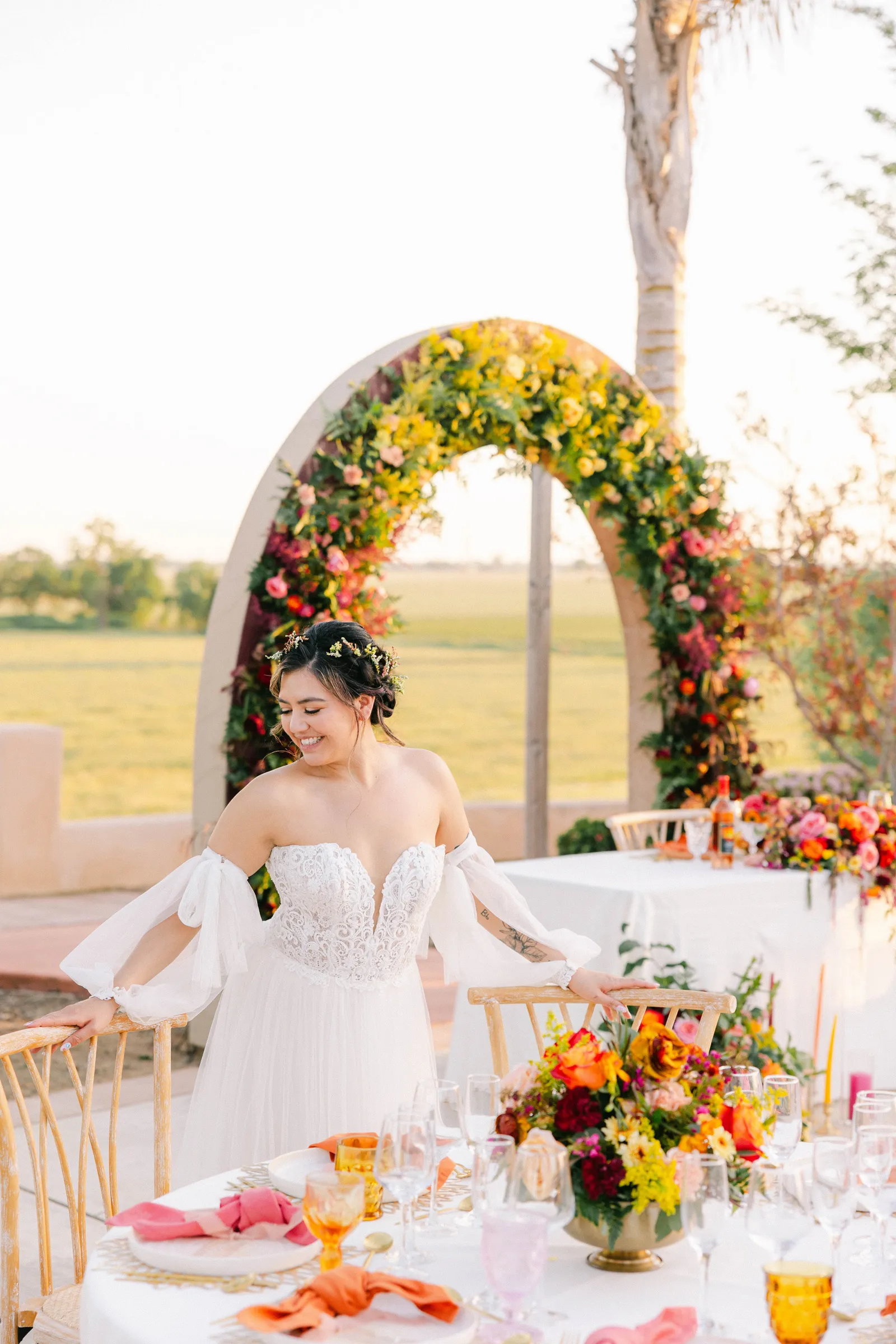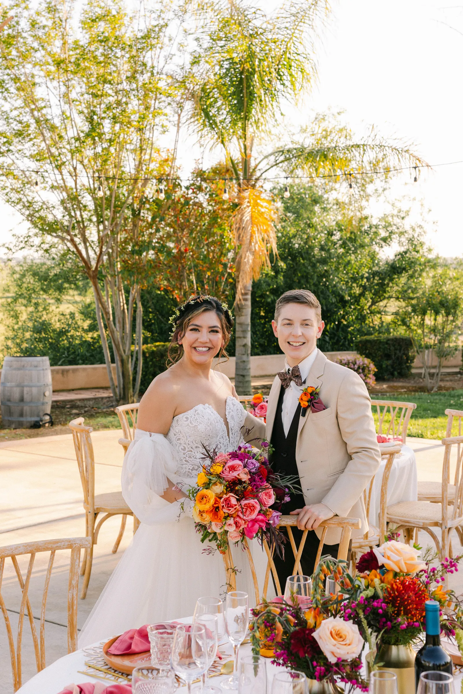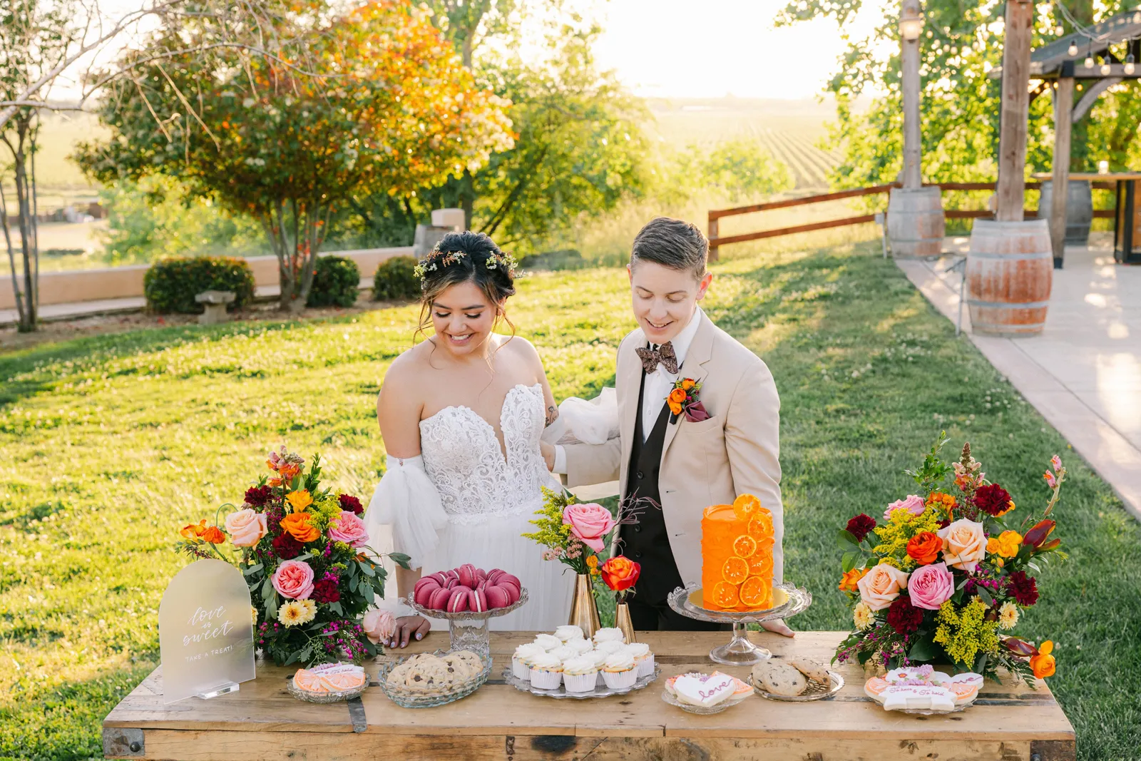We are so very excited to present this gorgeous Submitted Styled Shoot, captured by the talented Bloom Photography, and coordinated by Rainbow Weddings & Events. With tons of orange, pink and white florals (thanks Strelitzia Flower Company!), amazing rentals from Celebrations!, there is so much fun to be found in this shoot. From citrus-themed decor and stunning couples to amazing desserts and cocktails, we’re confident you’ll find inspiration today. Keep scrolling for more photos. Plus! Keep your eyes peeled (see what we did there?), for next week, where we may have a part 2 in store!