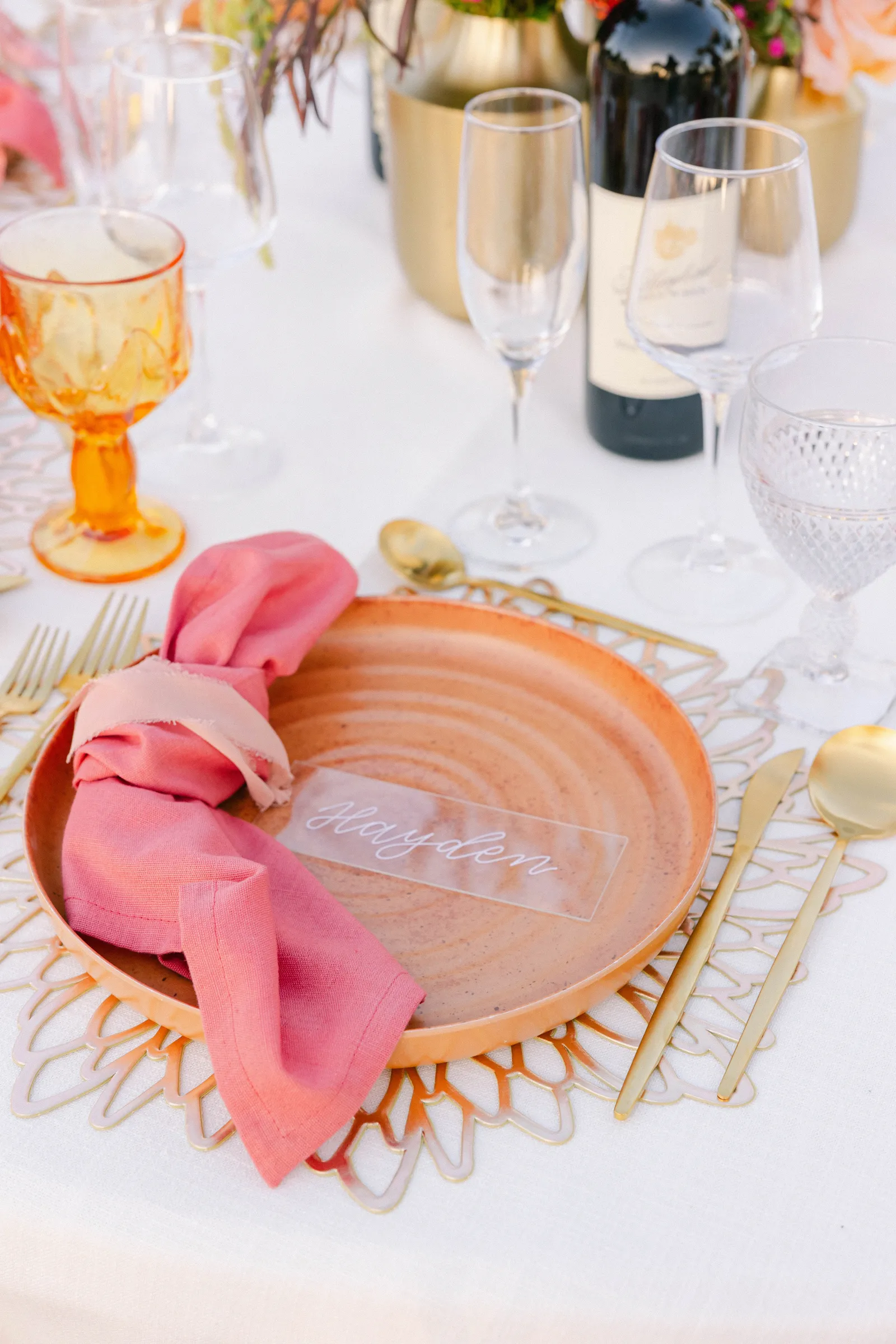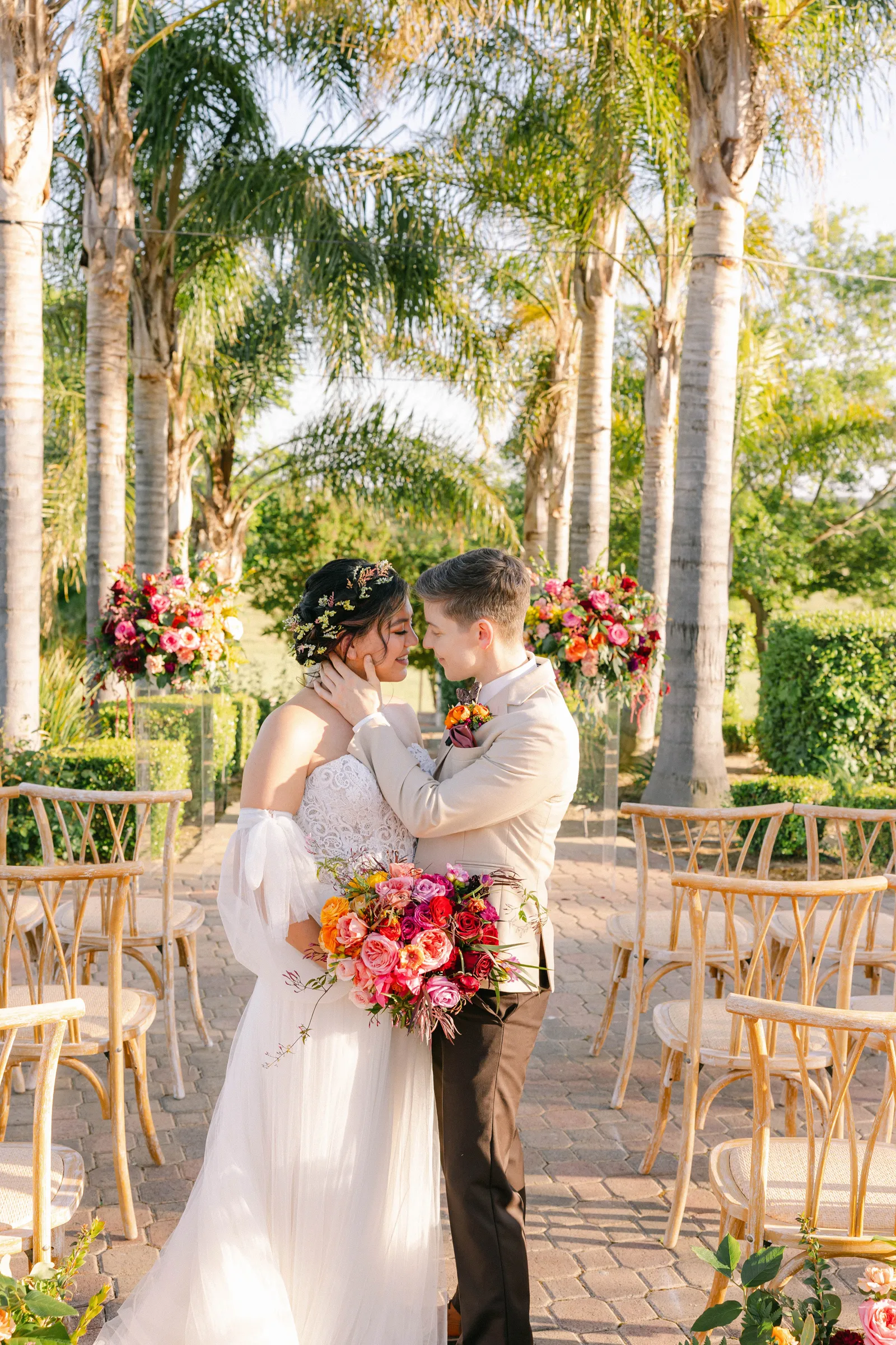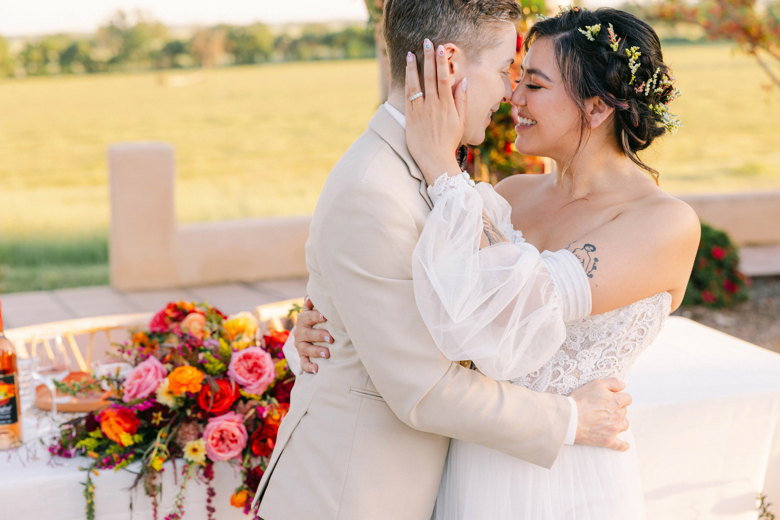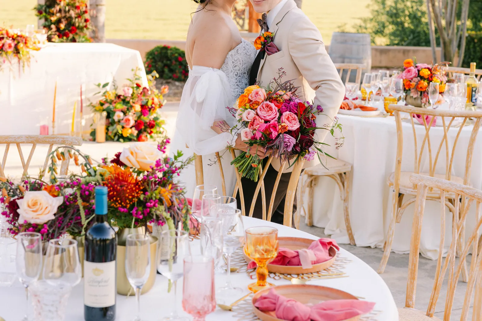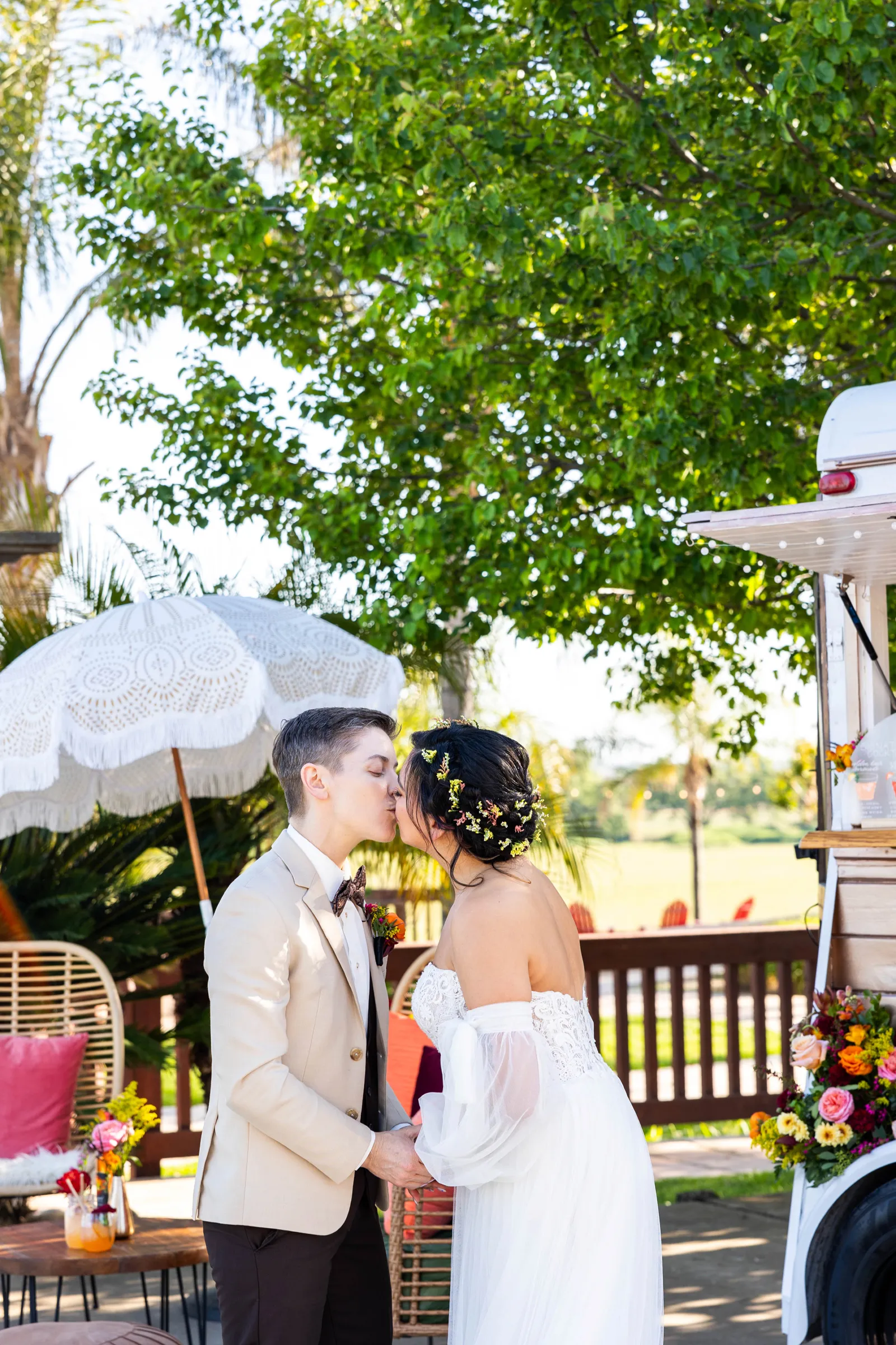 We are so very excited to present this gorgeous Submitted Styled Shoot, captured by the talented Bloom Photography, and coordinated by Rainbow Weddings & Events. With tons of orange, pink and white florals (thanks Strelitzia Flower Company!), amazing rentals from Celebrations!, there is so much fun to be found in this shoot. From citrus-themed decor and stunning couples to amazing desserts and cocktails, we’re confident you’ll find inspiration today. Keep scrolling for more photos. Plus! Keep your eyes peeled (see what we did there?), for next week, where we may have a part 2 in store!