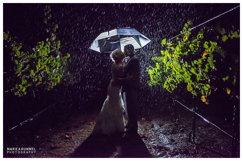What was the most amazing part of your day? The week leading up to the wedding it was pouring rain, a bride’s worst fears. The whole venue was outdoors, so the ceremony and reception were to be held outside. There was not an inside alternate, so Kyle’s parents came to the rescue with renting a tent for the reception, but Kyle and I were crushed at the thought we couldn’t get married outdoors with the beautiful venue backdrop. The night of the rehearsal, we rehearsed in the tent, as it was still pouring. At this point we decided getting married by their beautiful oak tree wasn’t going to happen, but we prayed that the rain would let up so that we could be married on their lawn area. When we woke up the morning of the wedding, there were the most beautiful clouds in the sky, and the rain had stopped. We checked the weather, and it looked like we were getting a break in the storm, with just enough time to be married and then move everything into the reception under the tent. And, that is just what happened. The rain held out all day until about 20 min after the reception started. Then we had the most fun dancing in the rain, and Mariea captured the most amazing rain photos that most brides don’t get the opportunity to have. Something that started stressful turned out amazing.