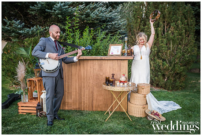 Tony and I are both musicians with our band The Tin Dears (yes, we met on Tinder), so the bohemian vibe was right up our alley. We are both hippies at heart, so the set almost felt like home. Elevated Events provided a gorgeous set.