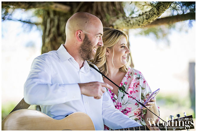 Everyone on set stopped what they were doing to witness this beautiful exchange of love, followed by a short and sweet reception complete with cake from Frank Vilt’s Cakes, bubbly from Helwig Winery and a mini-concert by our real couple models and real-life musicians, Tony and Kat (check out their band, The Tin Dears). Truly, the most beautiful and emotional wedding we’ve seen.