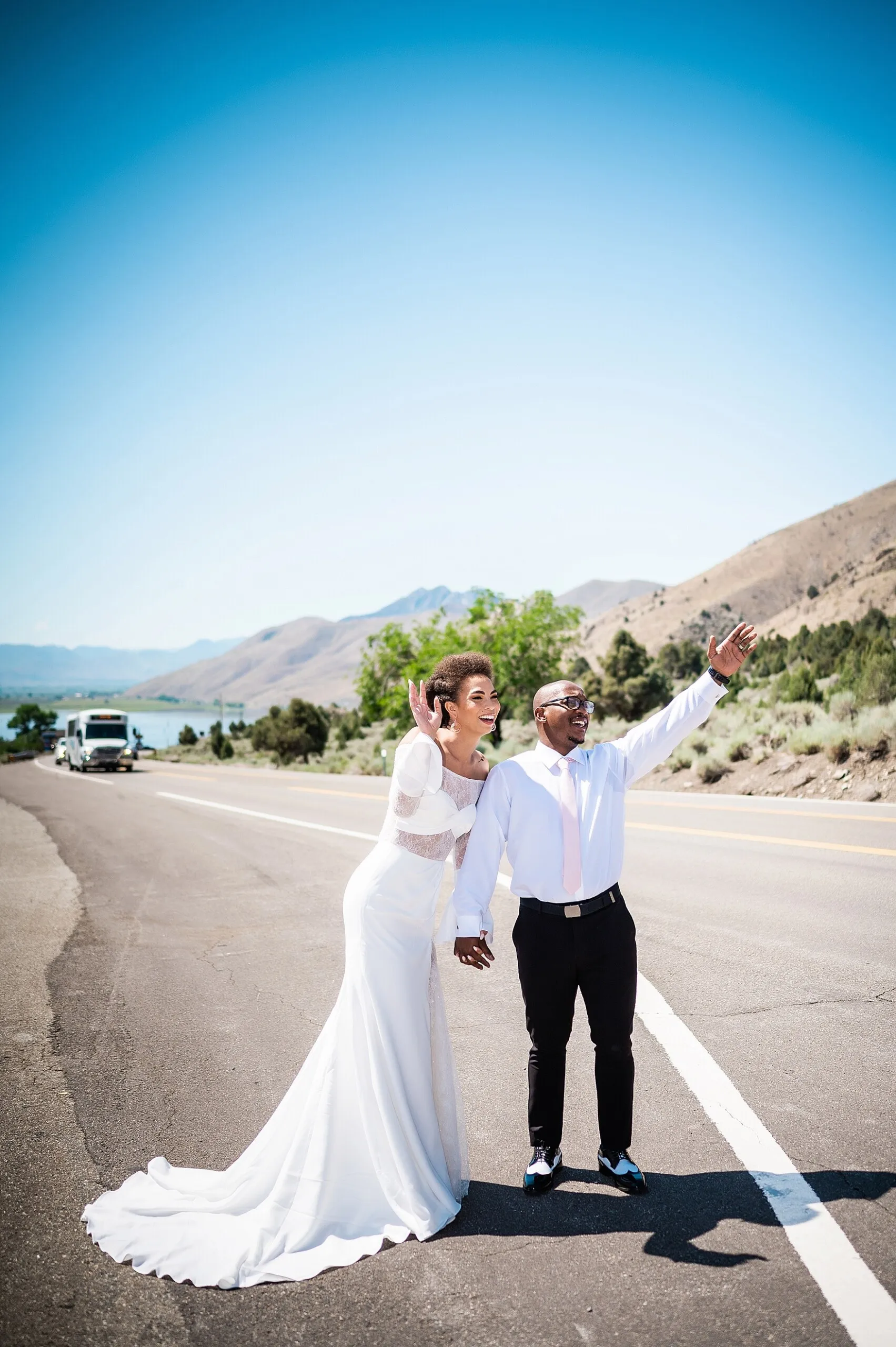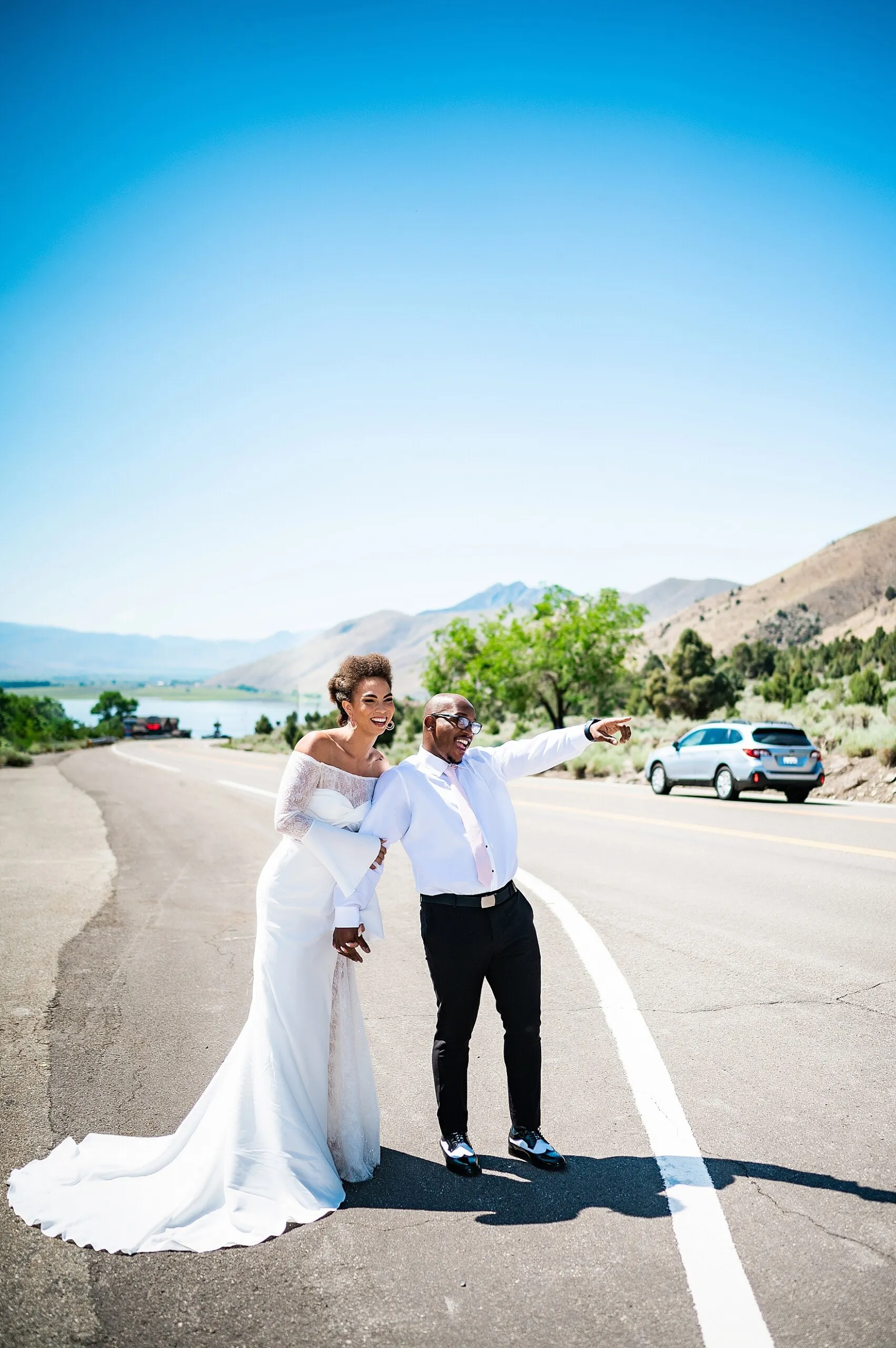 J: I’ve done a few styled shoots before, but this was the first one where my hair was actually styled, so as soon as the day started and I sat down in Arrvada’s chair I was super excited! It was also the first time I got to model multiple dresses in one shoot and I loved it! My favorite part of the day though, was modeling with Troy. He’s a photographer so he’s seen me model before but modeling together was so different. All the smiles were genuine, and we couldn’t stop complimenting each other and saying, “I love you.” Neither of us imagined this shoot was going to make us act so lovey dovey and spark so many butterflies; we felt so wonderfully silly! We can’t forget to mention how beautiful the drive from Folsom to Gardnerville was; those green meadows framed by the mountains were surreal looking.