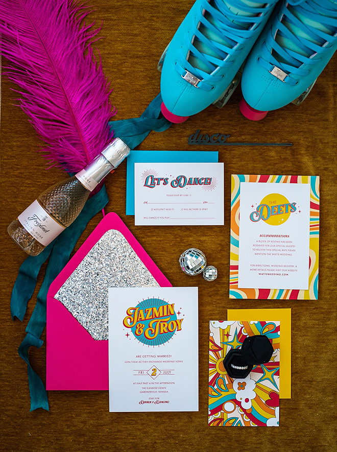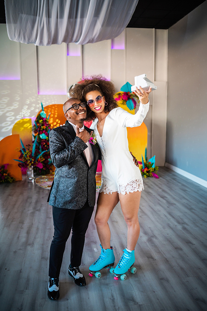 Hop on the love train because we are going back to to the ’70s with our “Skating into Love” styled shoot! Partnering with Carson Valley, Nevada vendors, and along with real couple models Jazmin and Troy, we combined color, sweets and skates for this insanely fun photo shoot. Take a look and the layout below and be on the lookout for even more funky photos!