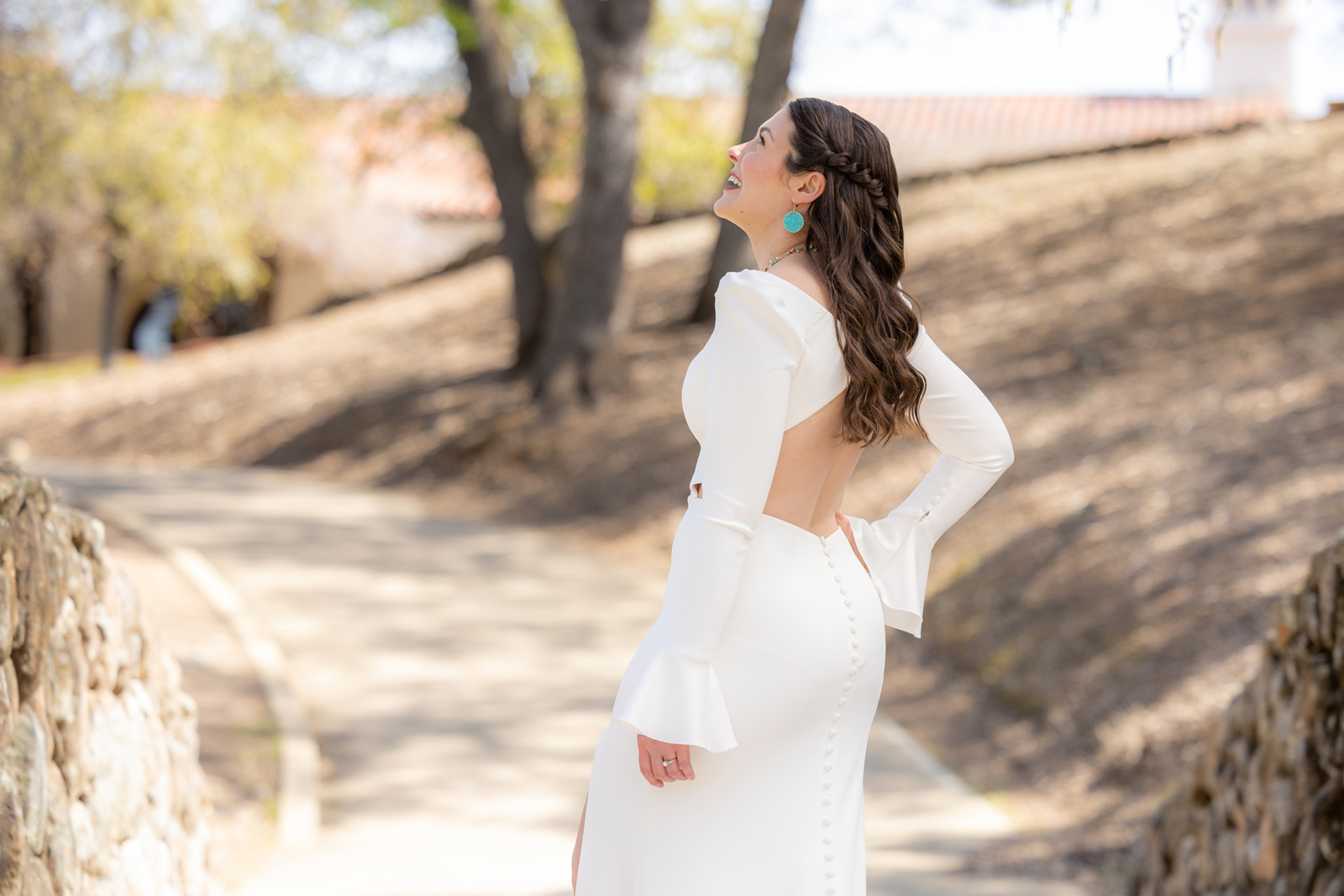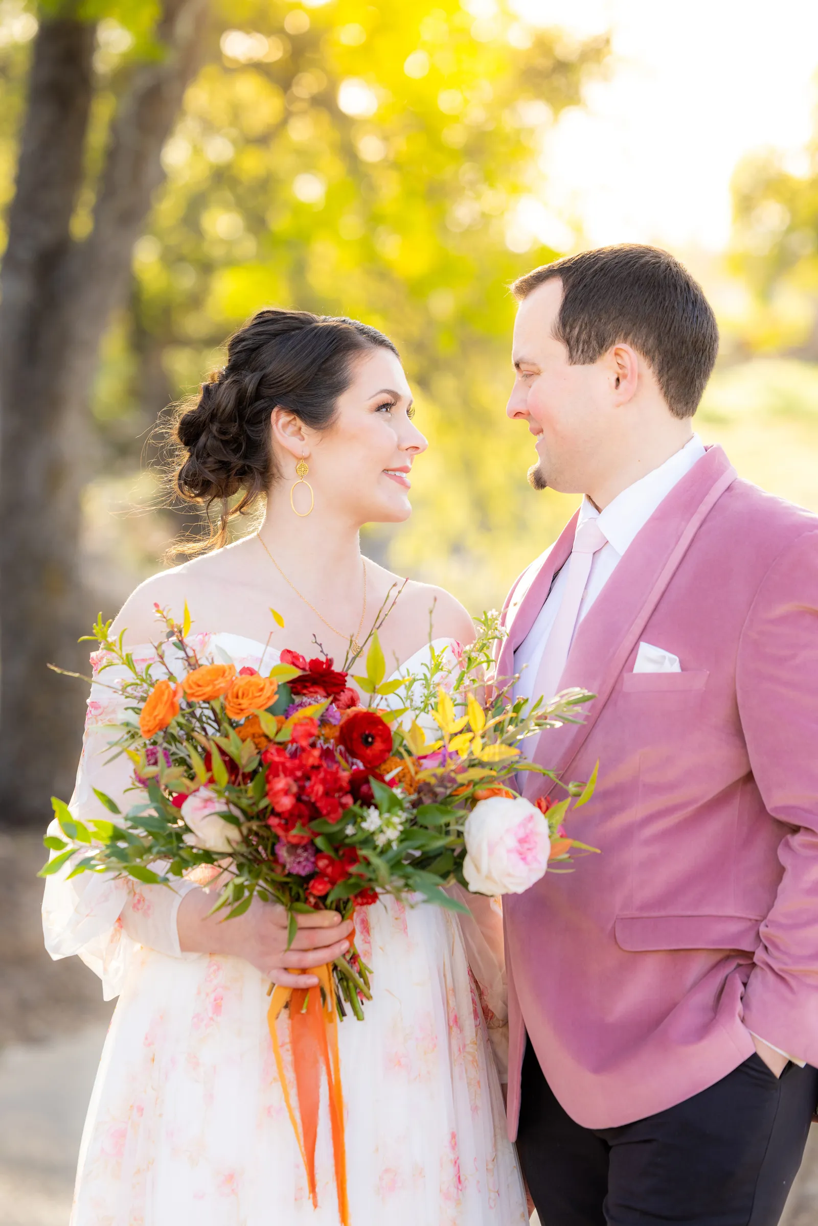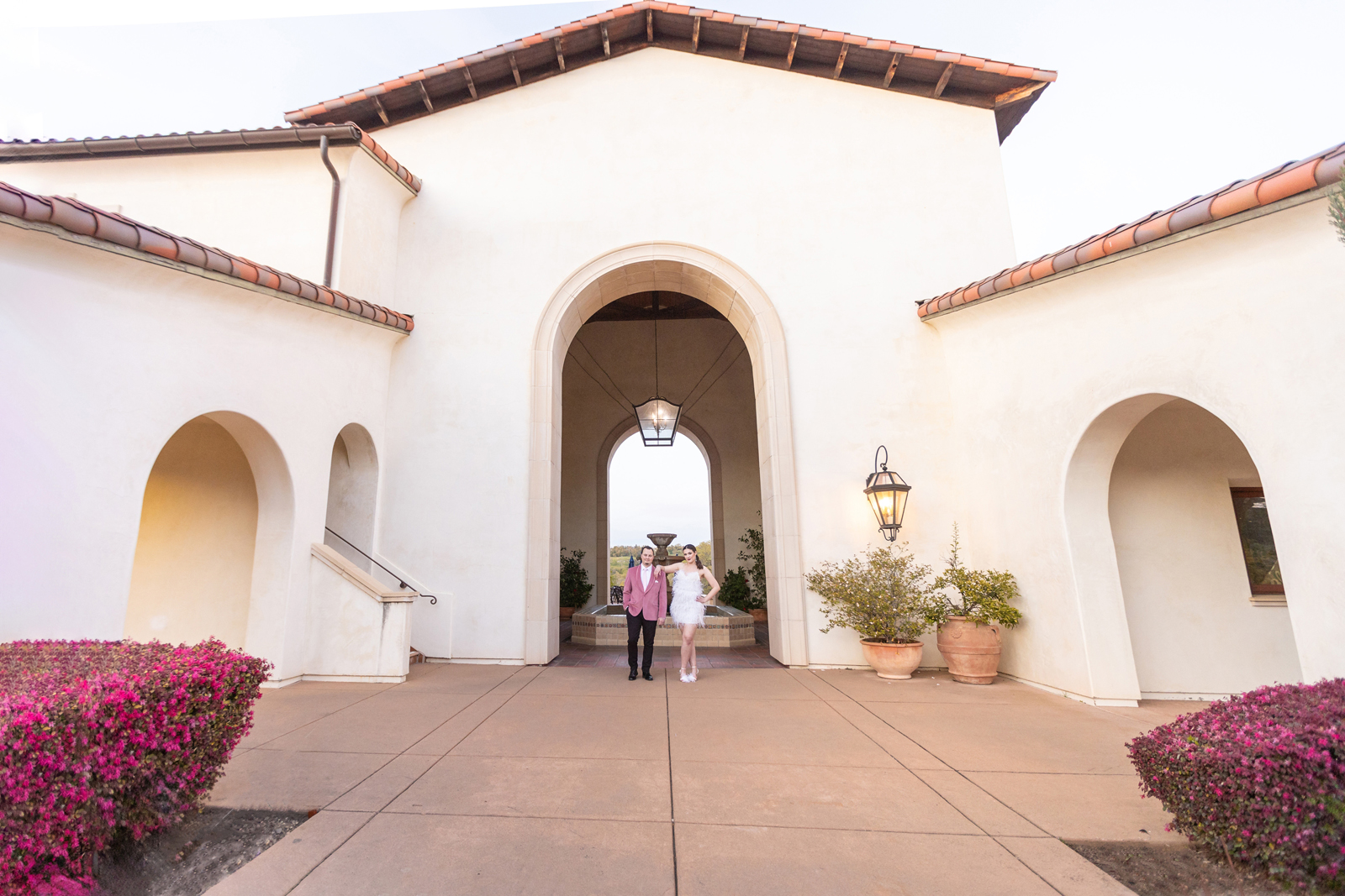 Jack: Having visited family in Santa Barbara all of my life, I’ve always had a soft spot for mission architecture. The warm colors and smooth curves of the buildings always translated well to a beautiful event in my mind, but even more so seeing it in person as a wedding venue. The aesthetic of the décor matched the venue perfectly. The warm colors of the bouquet perfectly matched the setting as well as the sun-soaked hues of golden hour.