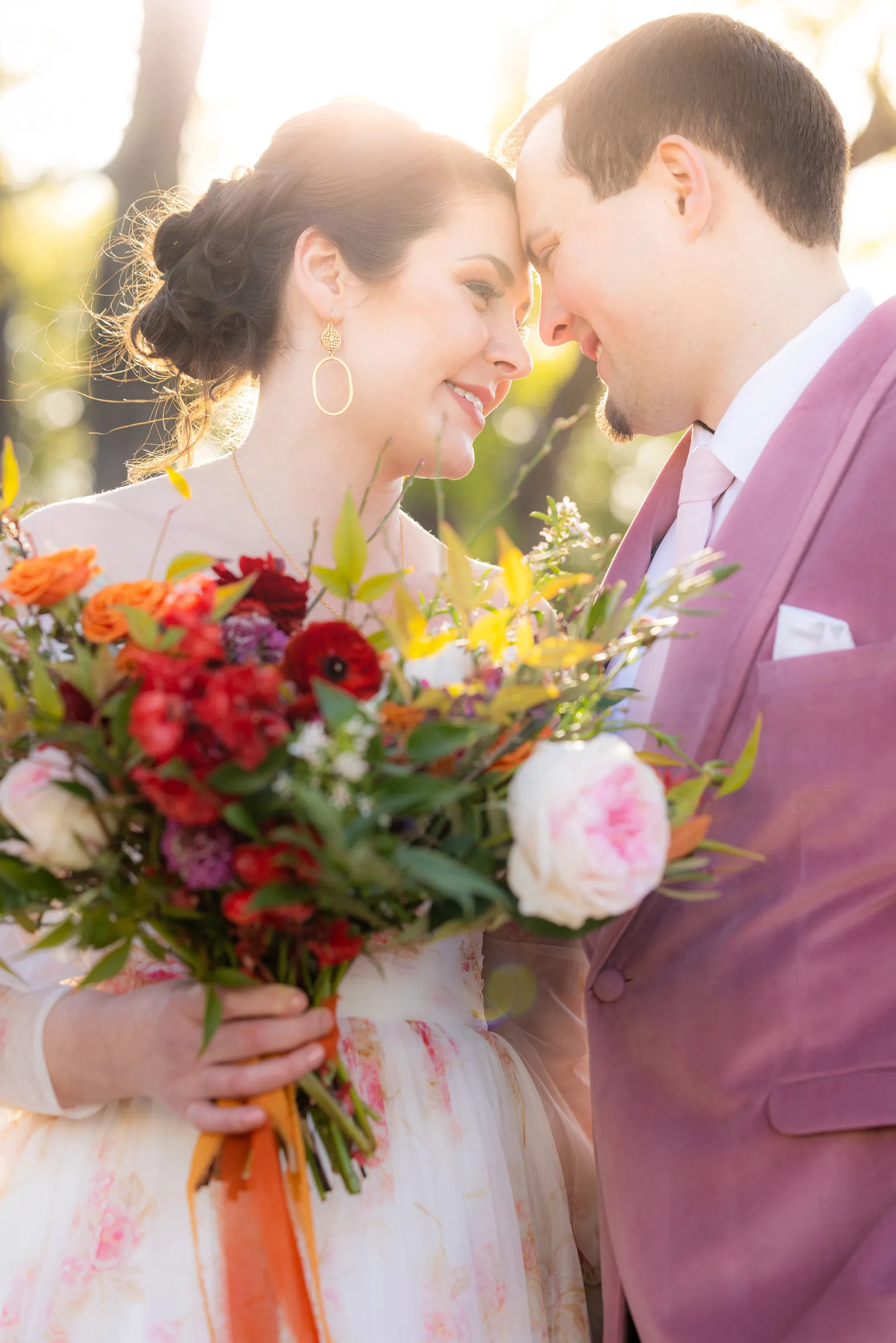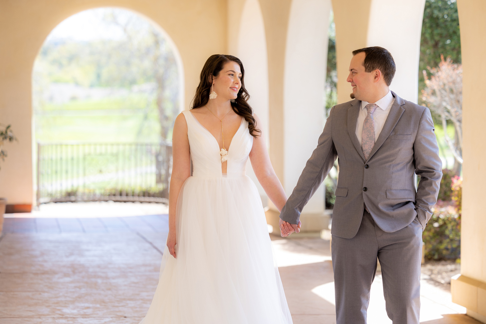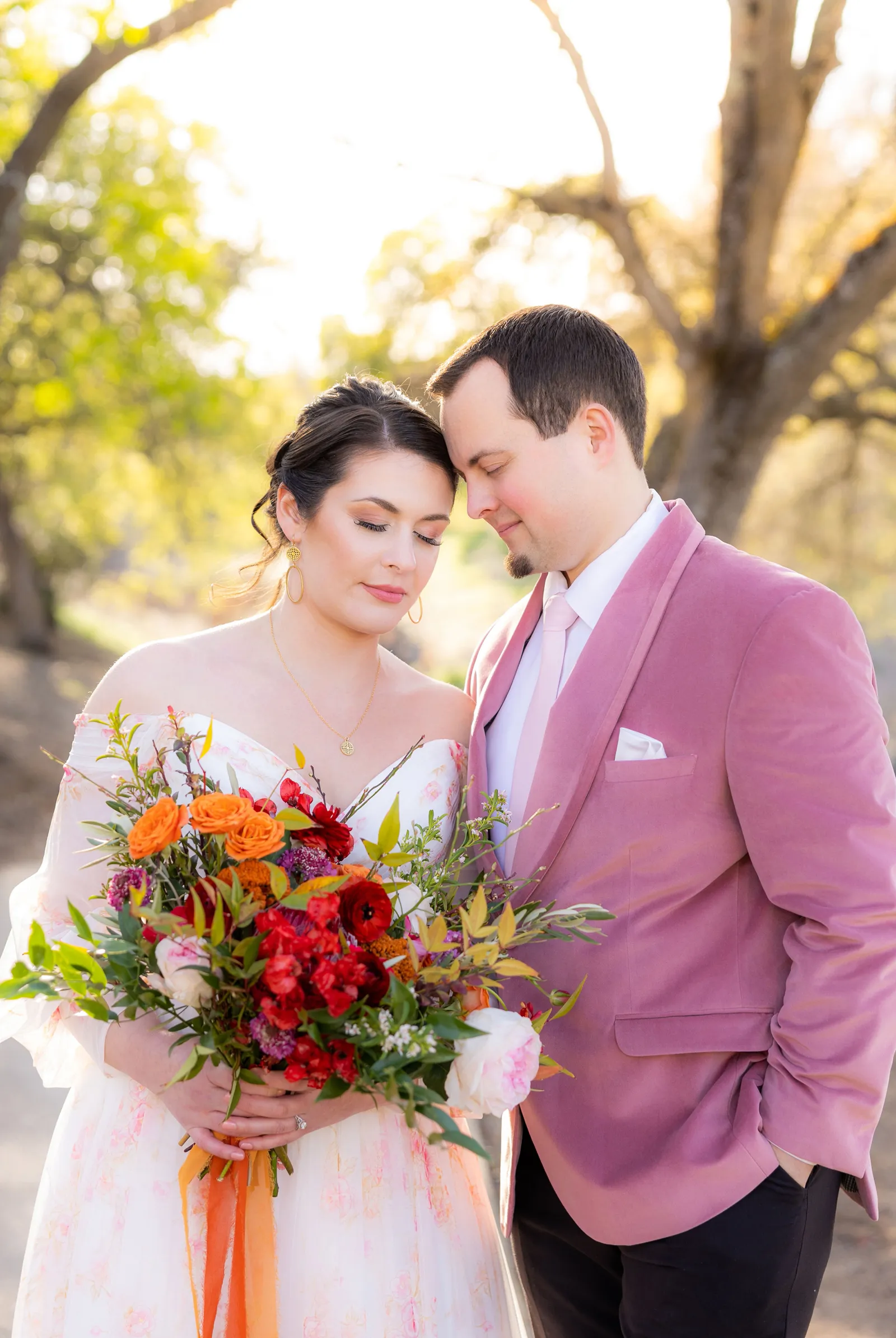 Jack: Having visited family in Santa Barbara all of my life, I’ve always had a soft spot for mission architecture. The warm colors and smooth curves of the buildings always translated well to a beautiful event in my mind, but even more so seeing it in person as a wedding venue. The aesthetic of the décor matched the venue perfectly. The warm colors of the bouquet perfectly matched the setting as well as the sun-soaked hues of golden hour.