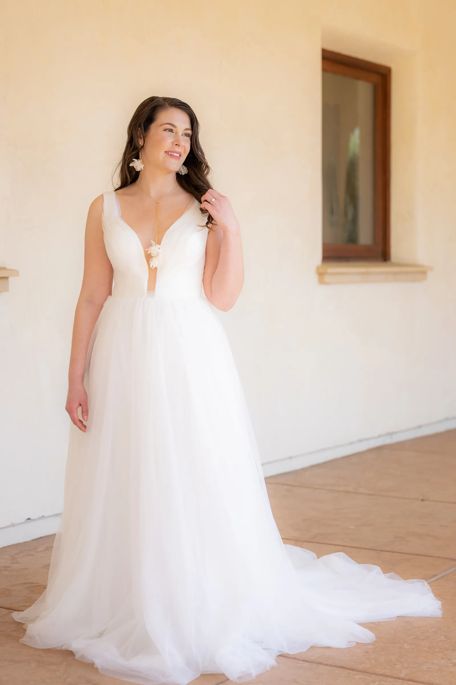 Lainy + Jack: It was even better than we expected! Wendy deftly balanced running a tight ship while also keeping things light and very fun. The photographers were true professionals and were lovely to work with. The hair and makeup team worked wonders in very short amounts of time while also being personable and making the experience as pleasant as possible. The venue was gorgeous, and it felt like such a dream being able to model different wedding-day looks.