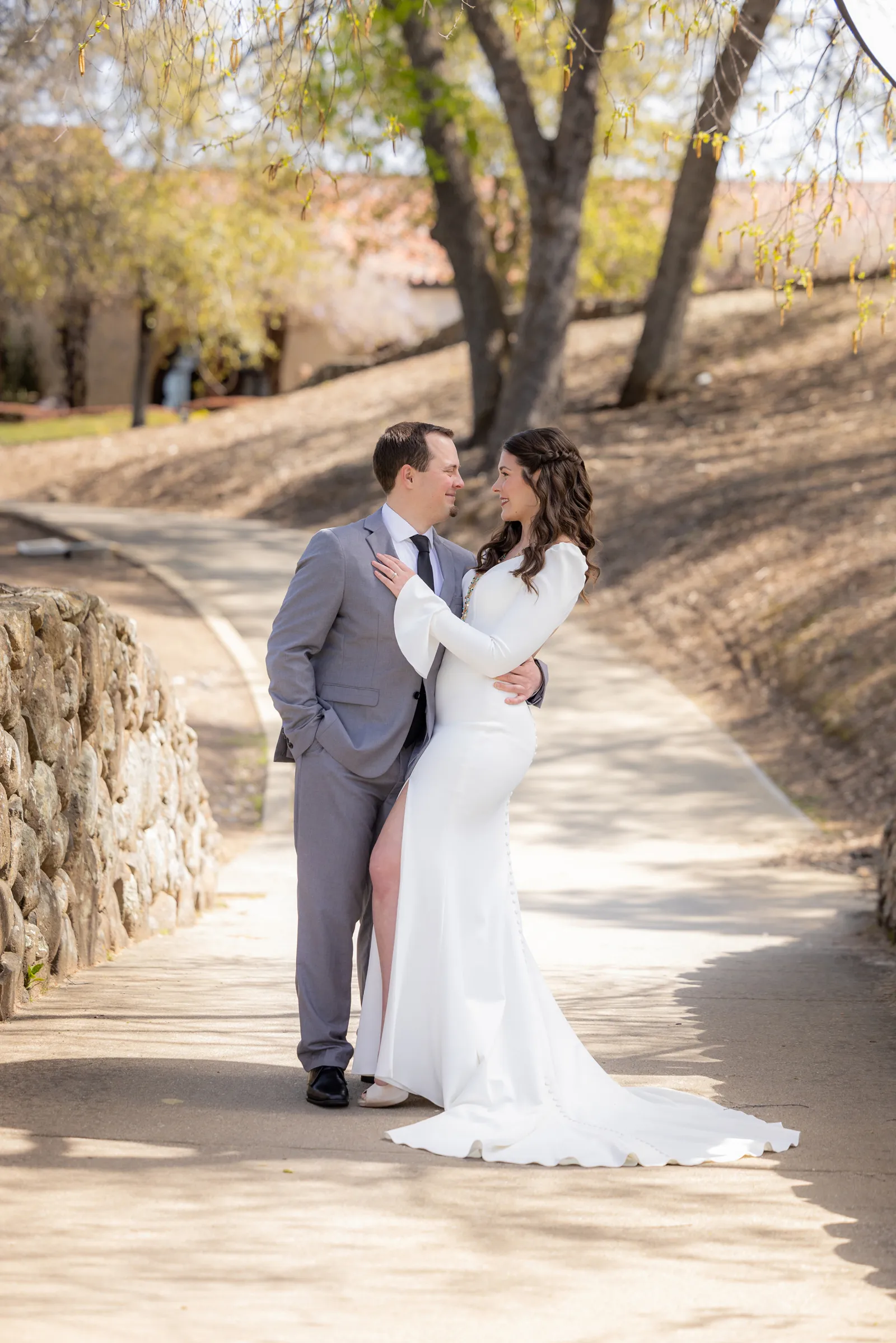 On Lainy: Jewelry by Renewable Jewels; Gown from Always Elegant Bridal & Tuxedo; Shoes from DSW // On Jack: Suit, Shirt, and Shoes from Tuxedo Den; Tie from Macy’s