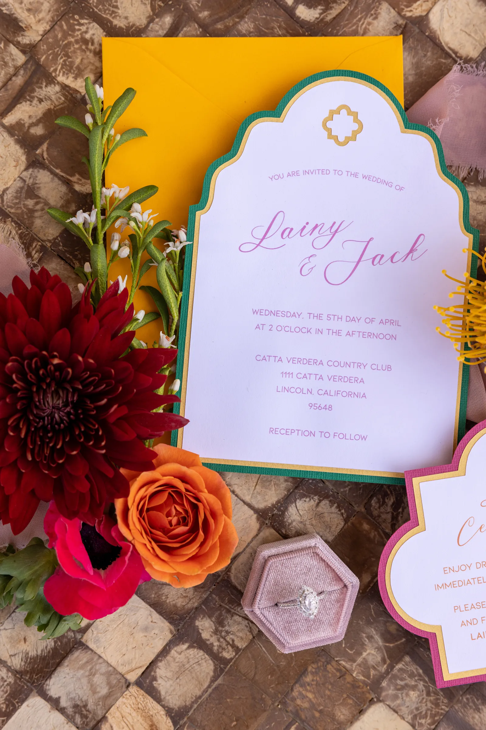 Details, details, details! We never tire of scrolling through photos of our gorgeous styled shoots and seeing all the big and small details that make them unique. It’s also a time to appreciate the hours of hard work all the professionals put into the shoot. The details from Love at First Blush are filled with colorful florals and Italian countryside vibes (all at a local golf course!), plus a cotton candy cart. Yep, it doesn’t get sweeter than that!