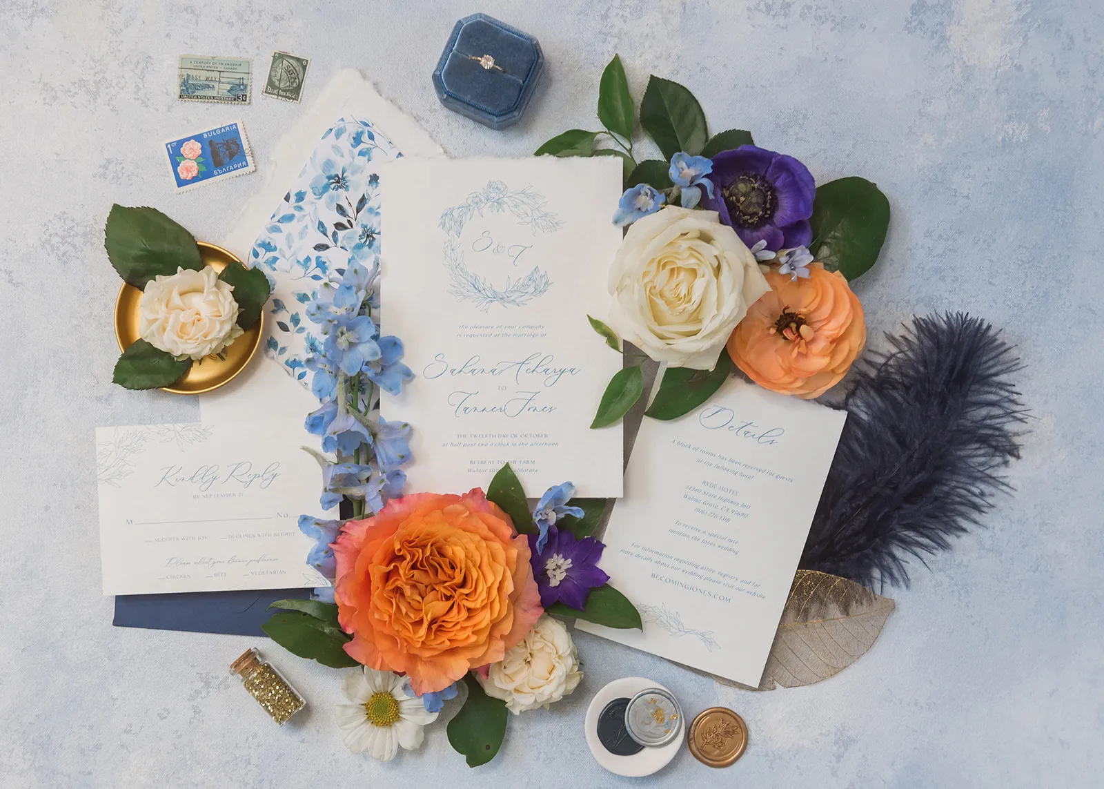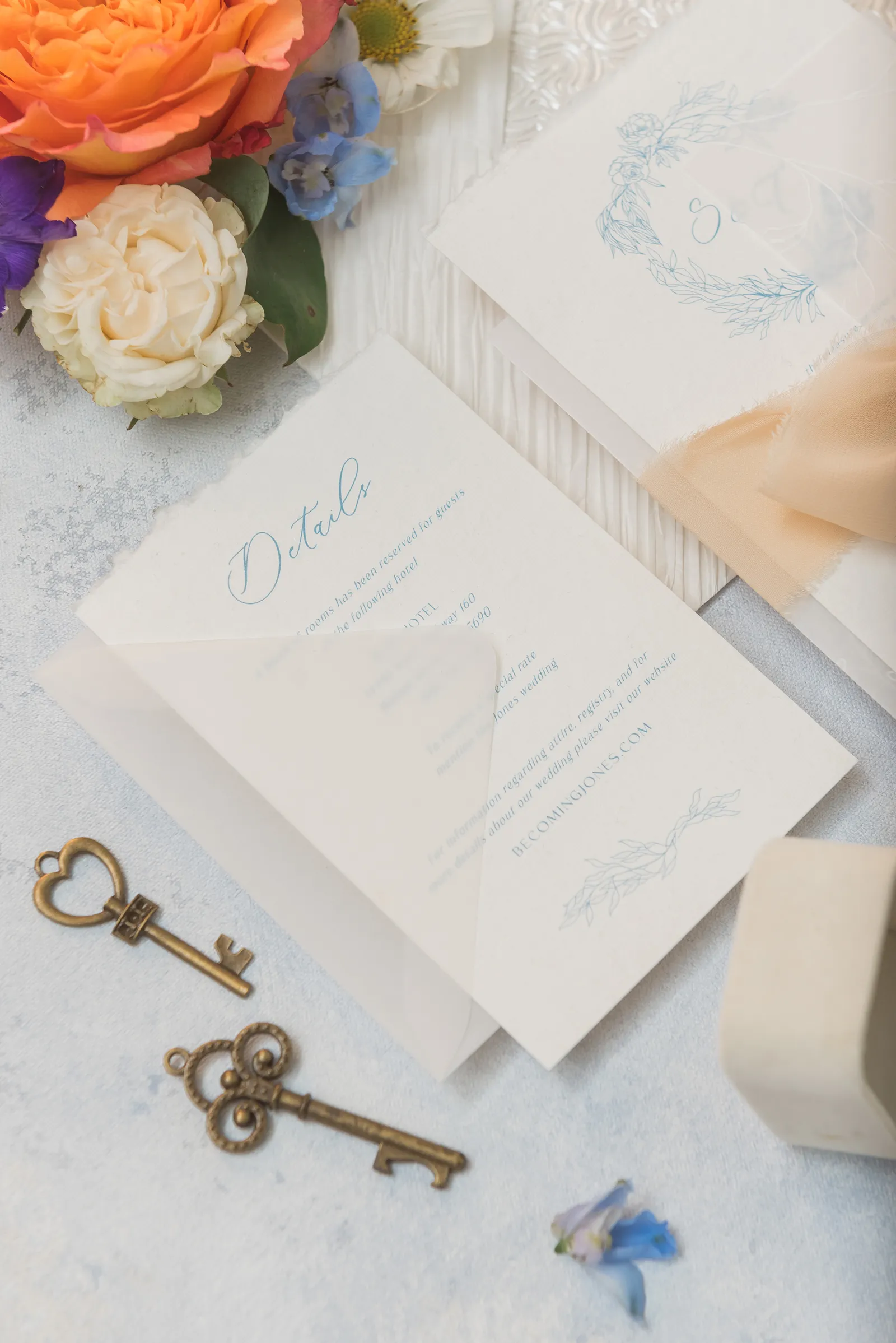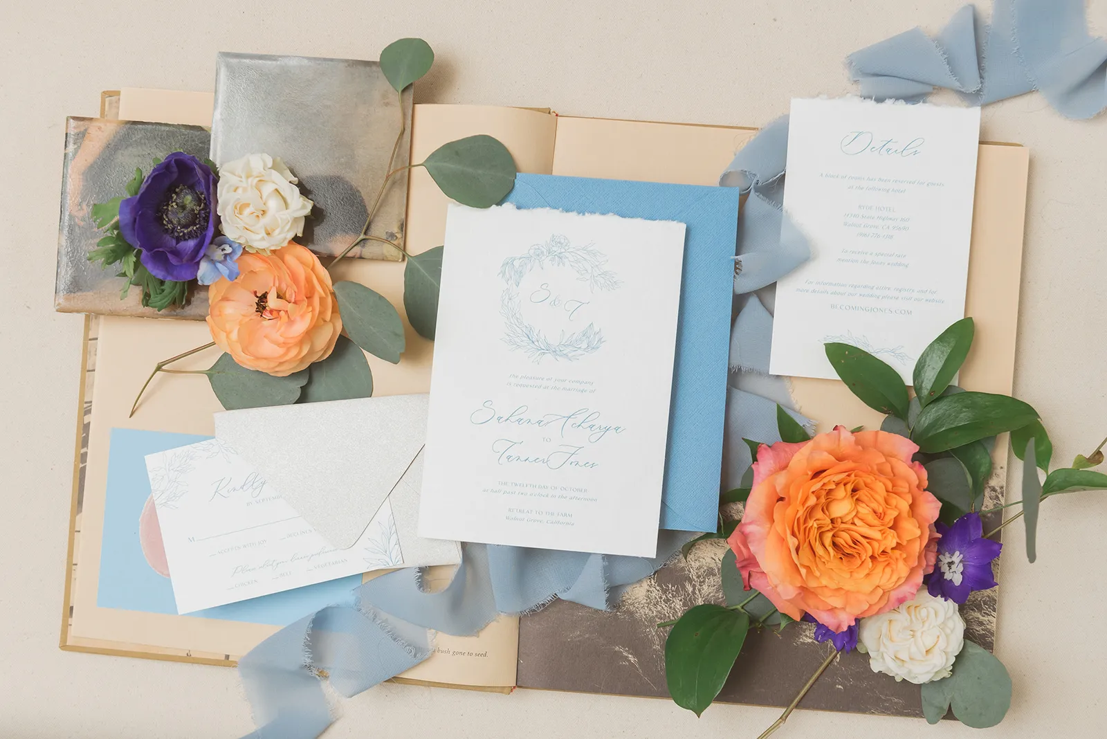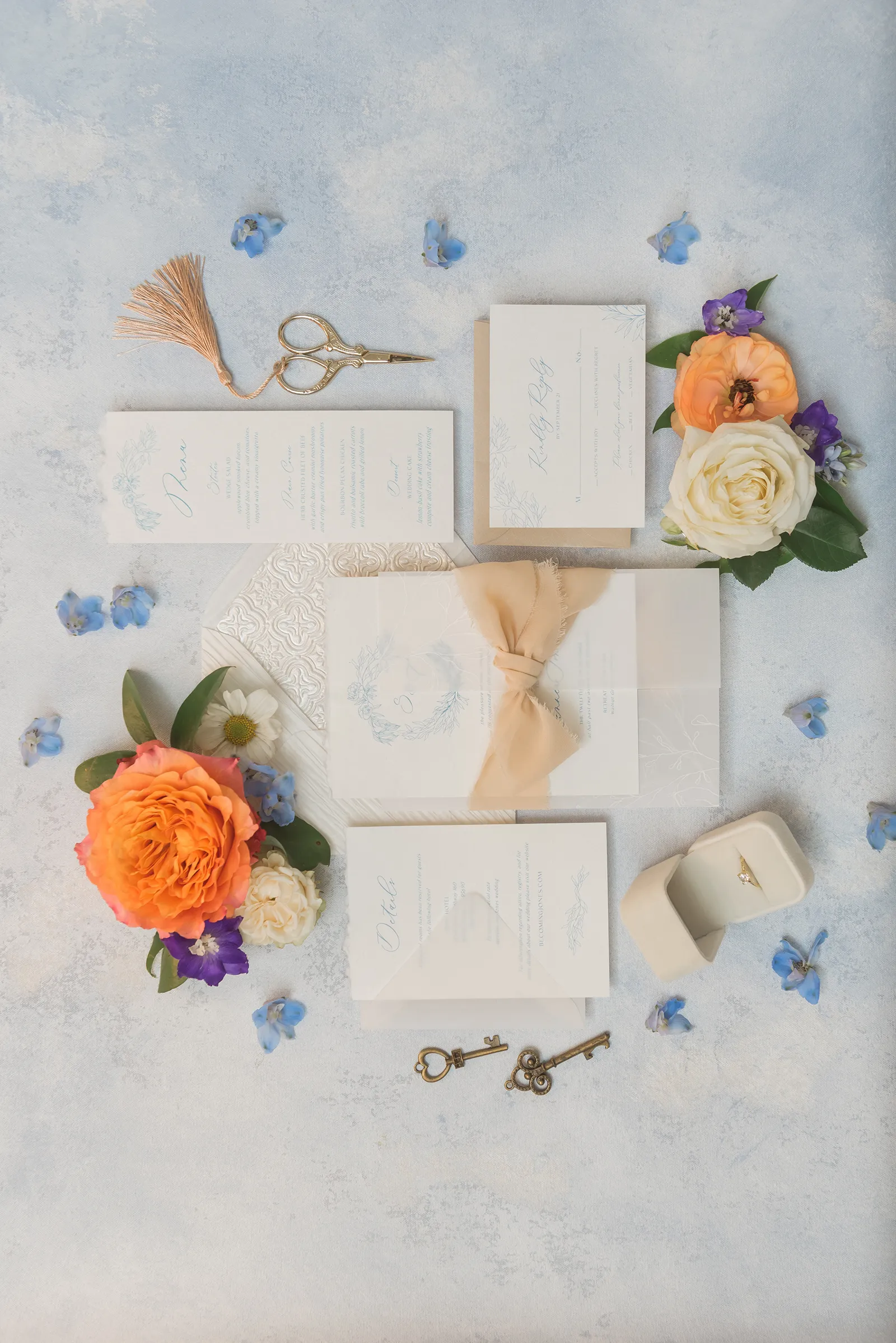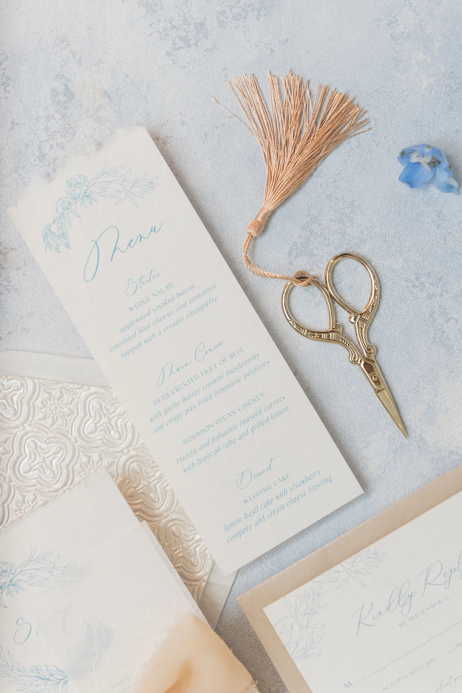 Details, details, details…we can never get enough. In our French Connection styled shoot in the new Winter/Spring 2024 issue, the details include shades of blue, a blend of antique curves and fine lines, gold touches, and plenty of flowers that sing spring. Enjoy looking at all of these gorgeous details and when you see something you like, be sure to call the amazing vendors who created this styled shoot!