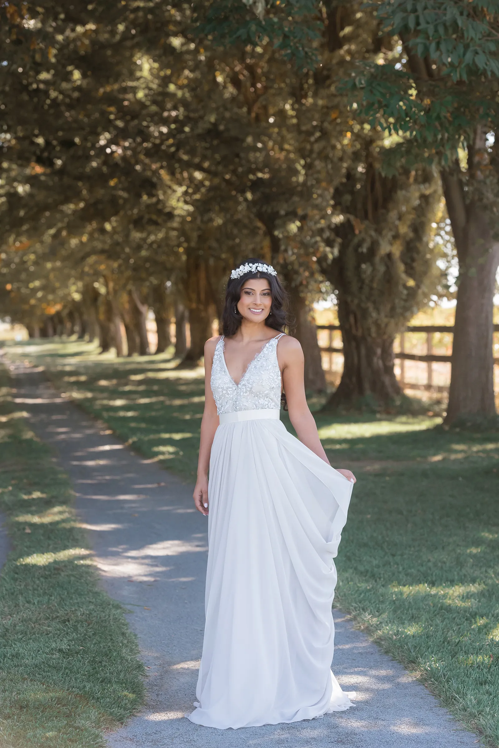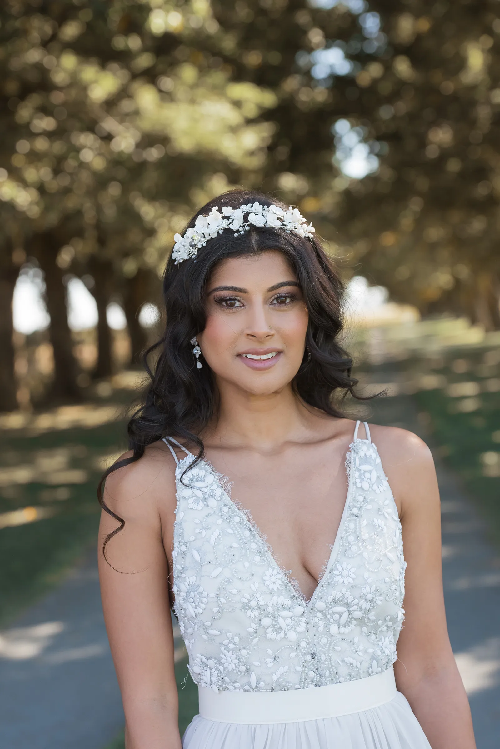 On Sahana: Headpiece by Adora by Simona; Gown from Brides for a Cause