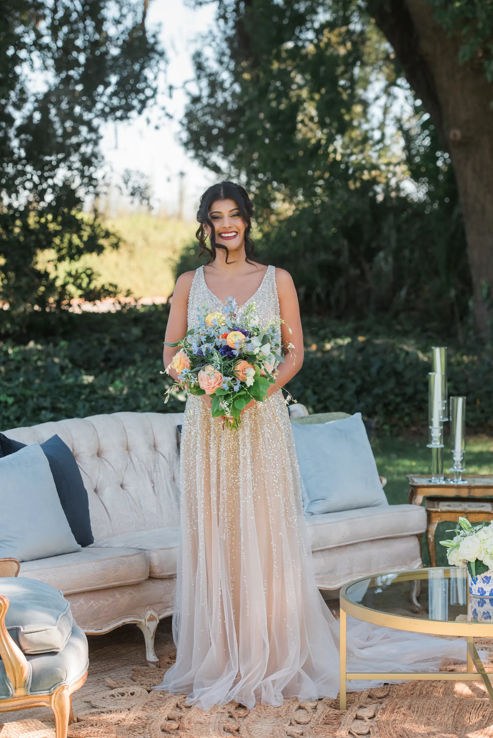 S: Our wedding festivities will span over the course of two days, each with its own distinct ceremony. We will be getting married at Wolfe Heights Winery and Estates in Sacramento. First, we hope to hold an Indian ceremony, honoring the rich traditions of my heritage. This special event will be a tribute to my roots, filled with vibrant colors and intricate religious rituals. The next day we envision an American ceremony and reception to honor the traditions close to Tanner and his family. Surrounded by the gardens and willows at Wolfe Heights, we hope to have a whimsical, romantic, garden party ambiance while we bring our two cultures together with our families and friends.