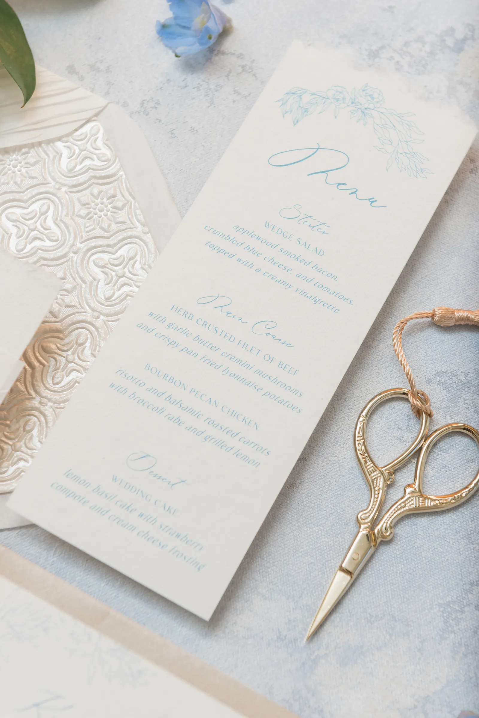 First up, our “French Connection” shoot comes to you with shades of blue and antique and European influence. Enjoy The Layout and stay tuned for more photos to come!