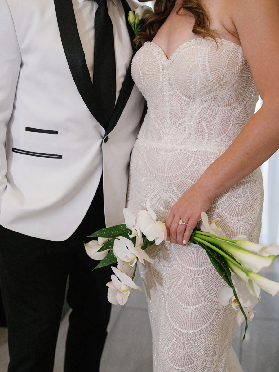 ABOVE LOOK ON ALLY & RICH: On Ally: Earrings by Mary K. Kendig // Gown from De La Rosa’s Bridal & Tuxedo
