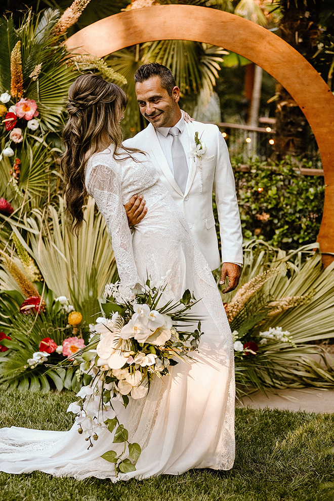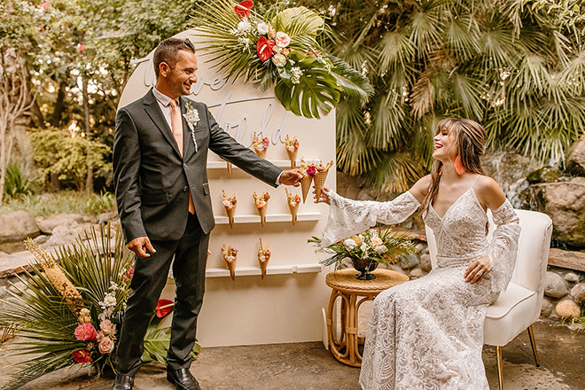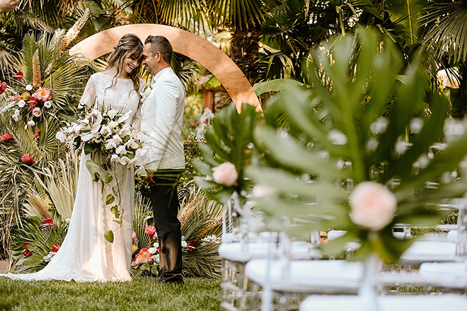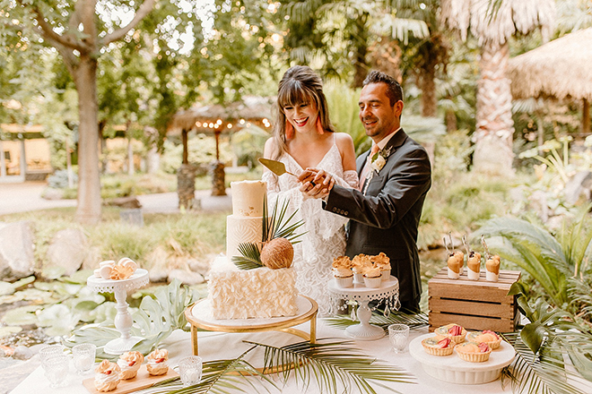 Visit paradise with us in our “To Have and To Hold” photo shoot featuring lots of greenery, palms and tropical vibes! This tropical boho wedding inspiration is perfectly on trend and even has cheese bouquets (scroll down to see what those are!) among a relaxing venue right here in Northern California. Check out the layout of “To Have and To Hold” and stay tuned for more photos!