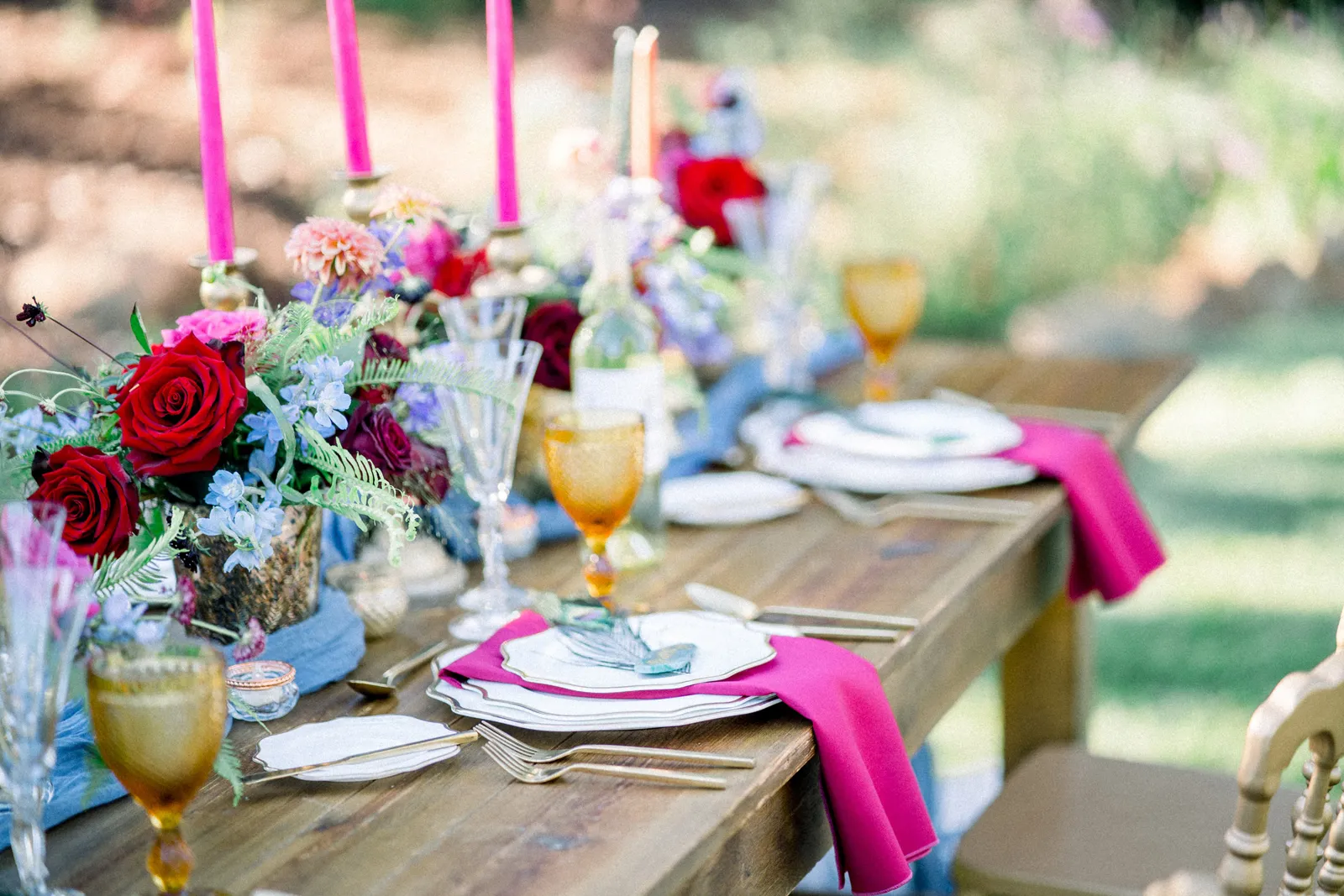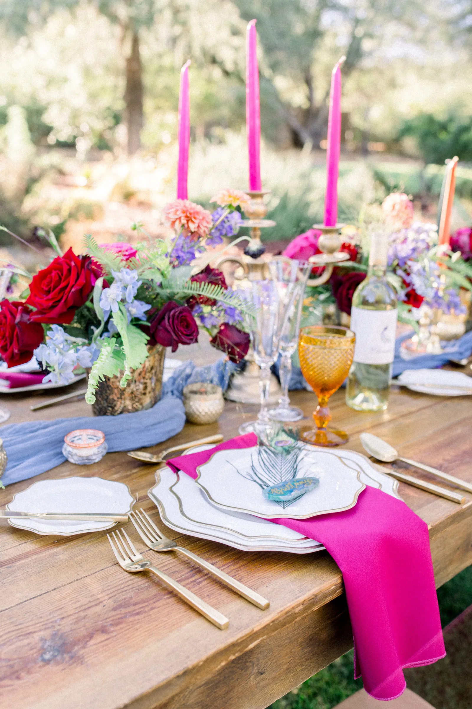 Happy Sunday, everyone! We have a unique and colorful Submitted Styled Shoot boasting pops of color (think fuschia and peacock!) along with plenty of romantic touches to be found in the rentals! For inspiration aplenty, keep scrolling to see more amazing photos from the talented Tiffany Longeway Photography. Happy reading!
