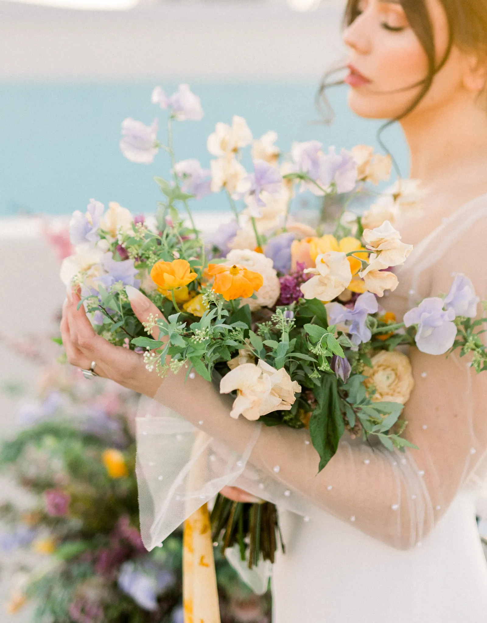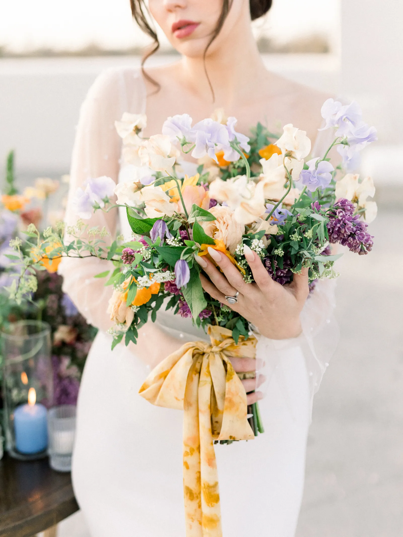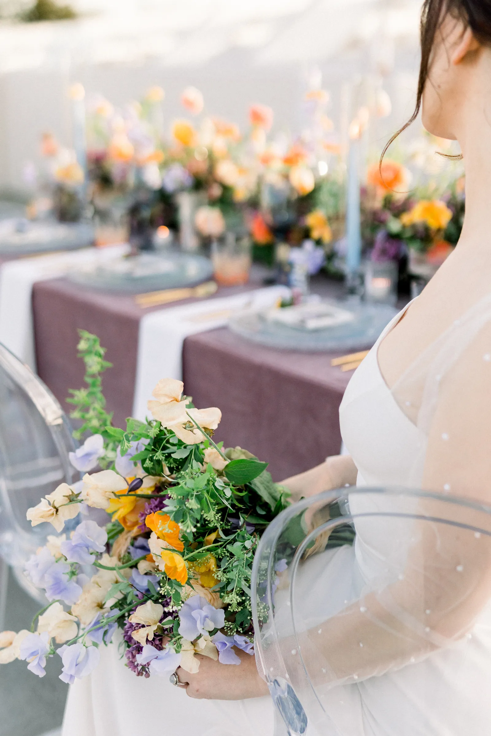 We admit it…when we first saw a preview of this styled shoot, we may have squealed in excitement: The pops of color + the whimsical details + that golden hour light! We knew we had to feature it in Real Weddings, so we teased it in the current issue and have been not-so-patiently waiting to share more of the shoot in all its beauty! So finally, feast your eyes on this submitted styled shoot! Enjoy!