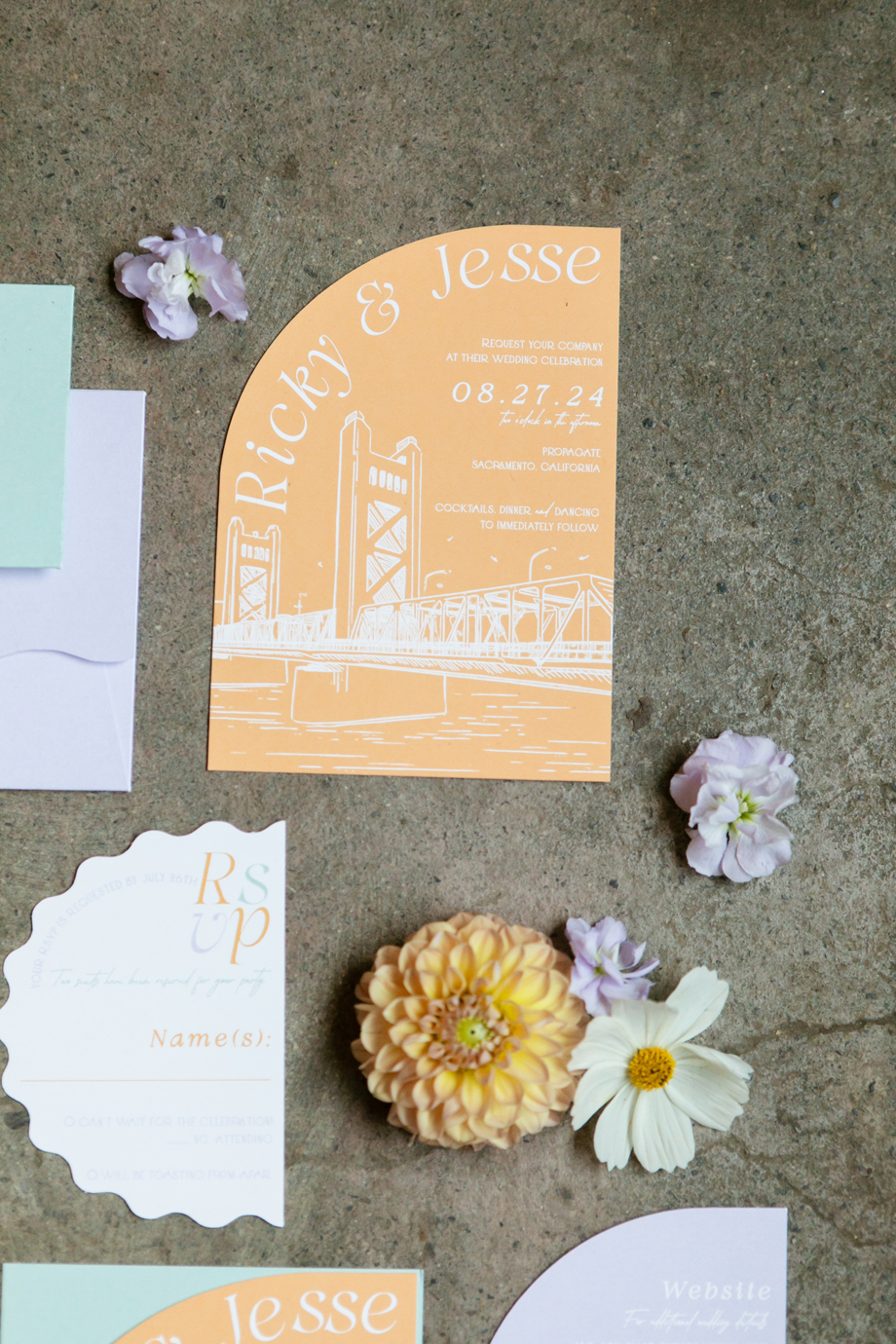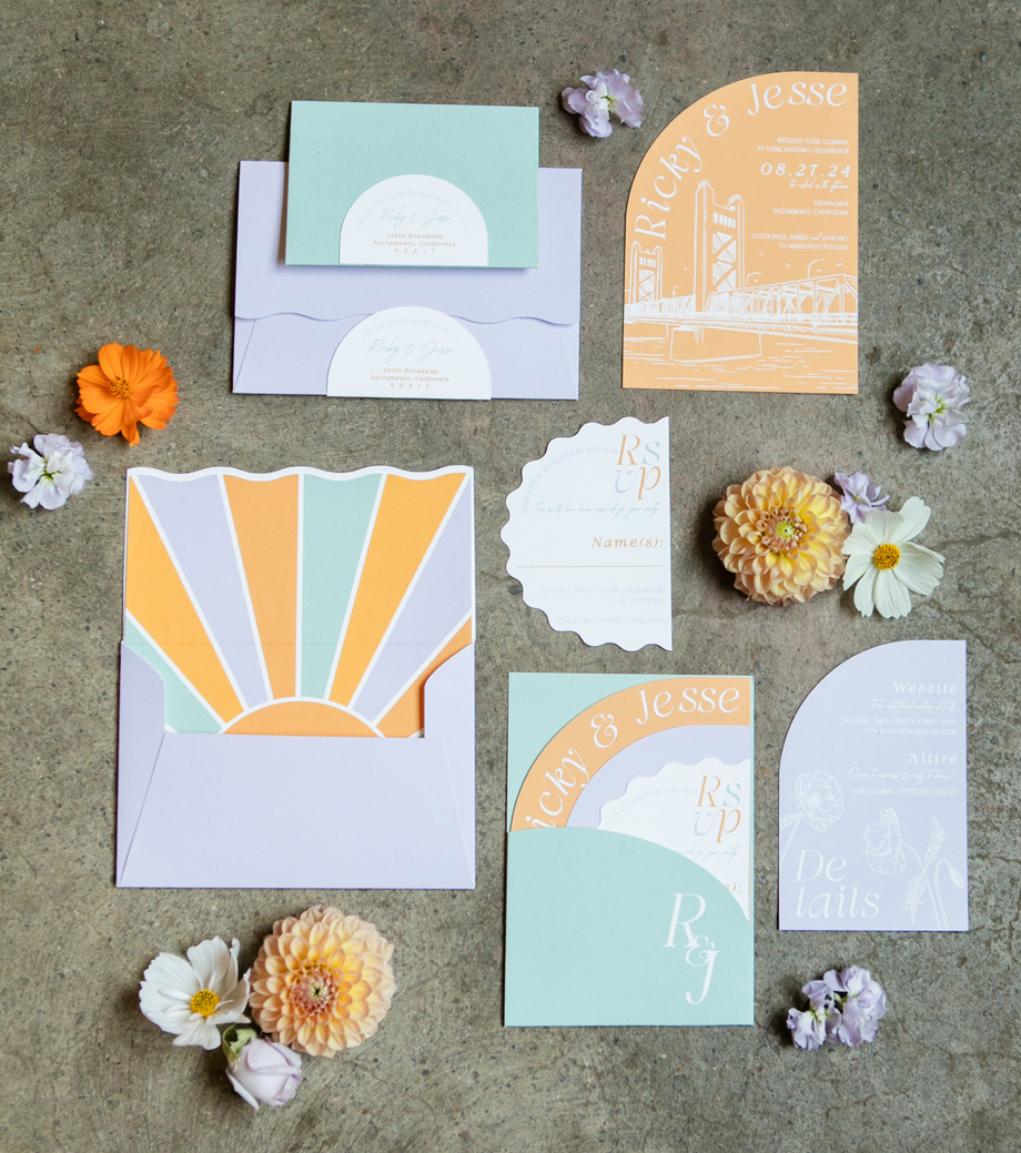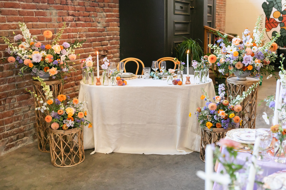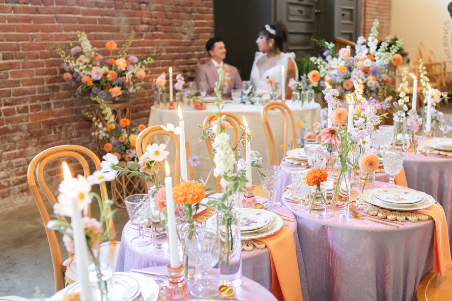 The minute we saw this submitted styled shoot, we had to call dibs to feature it! Infused with a healthy dose of whimsy and paired with colors that remind us of sherbet and California sunsets in the summertime, we’re delighted to share this delicious shoot for today’s #StyledShootSunday post—we teased the shoot in our just released Winter/Spring 2025 issue, and here we get to share even more of the gorgeousness created by this talented team of local wedding professionals. Enjoy dear readers, enjoy!