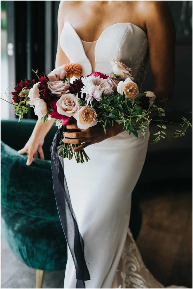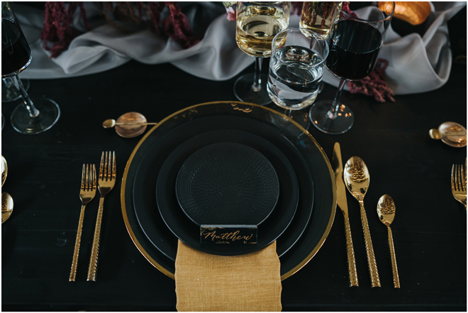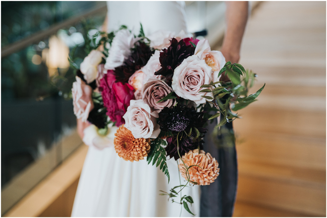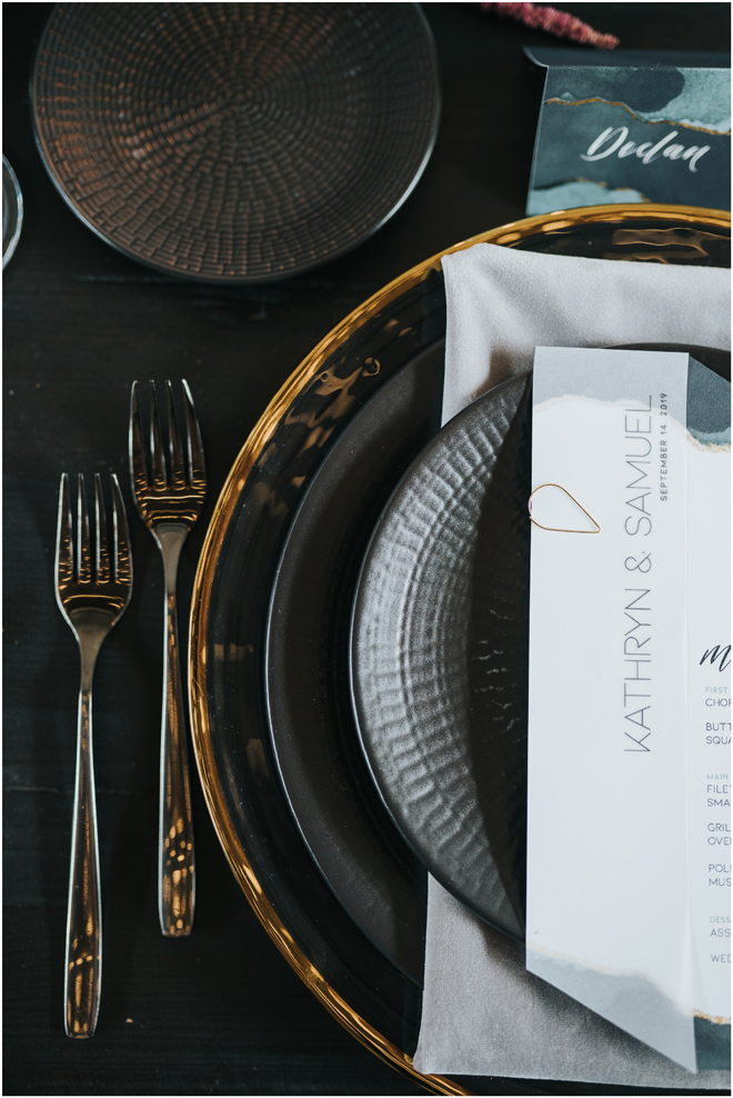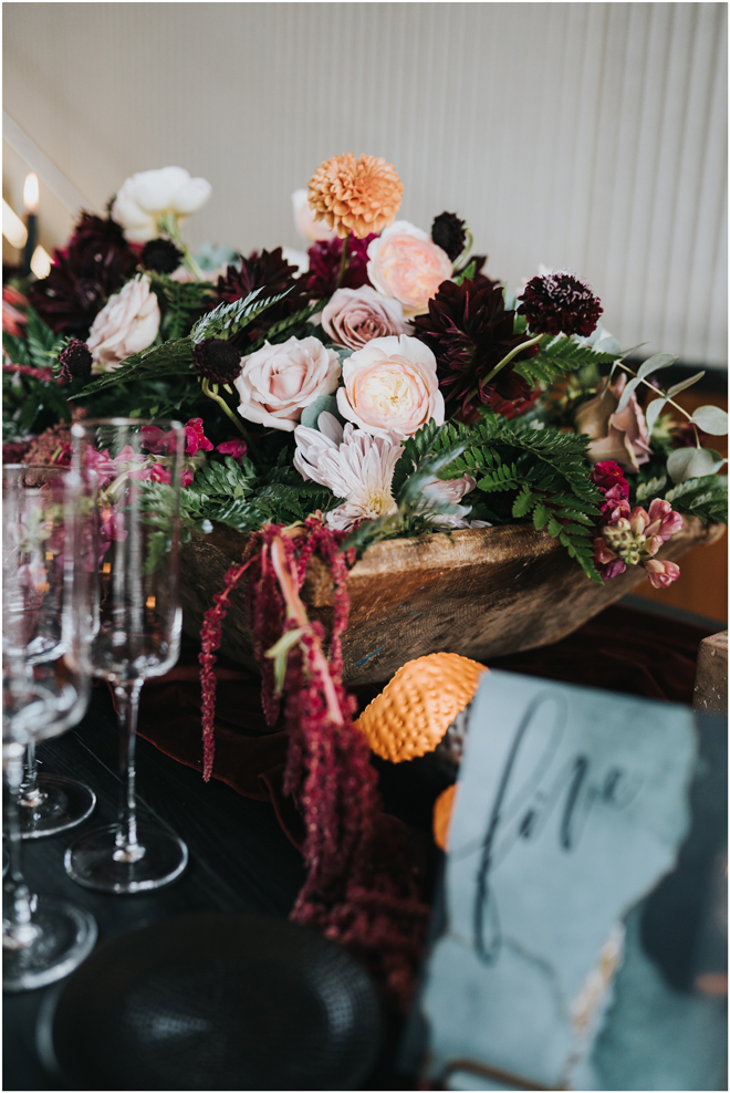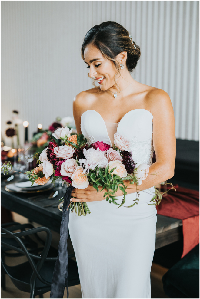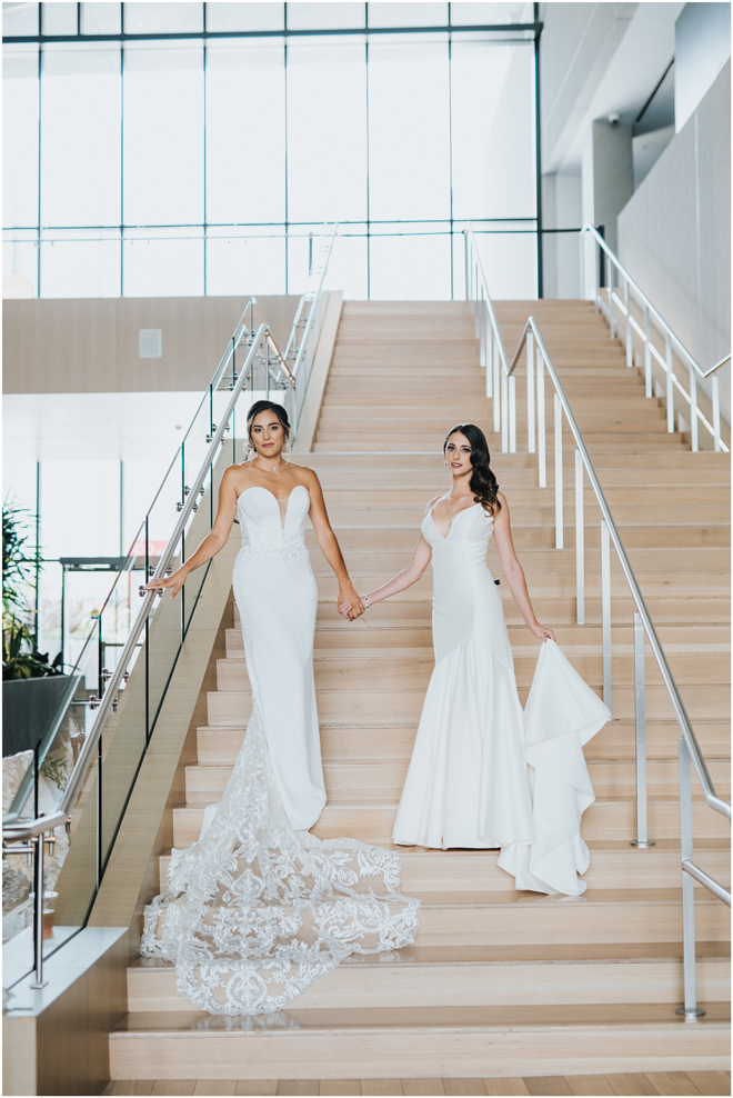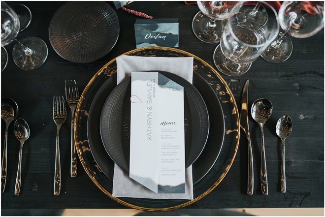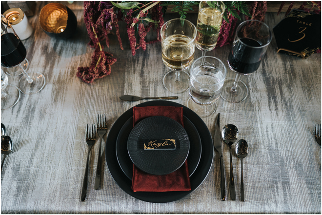 Do you love styled shoot wedding inspiration as much as we do? Well, you’re going to LOVE this #StyledShootSunday, with several variations on the table top and chairs, one killer bar, two beautiful brides and an epic staircase, this dark, edgy and drop-dead gorgeous contemporary styled shoot at the Kimpton Sawyer Hotel has it all! We especially love all of the textures and the incredible details, don’t you?!