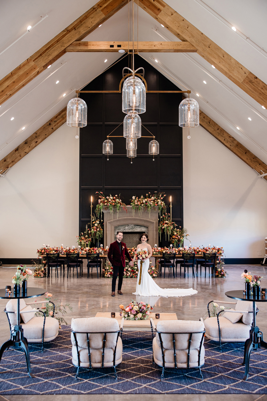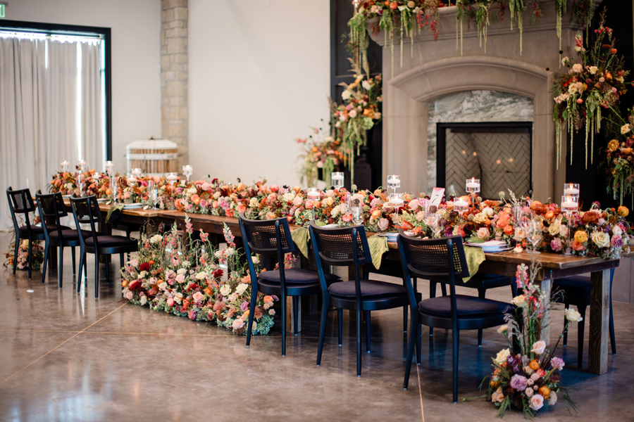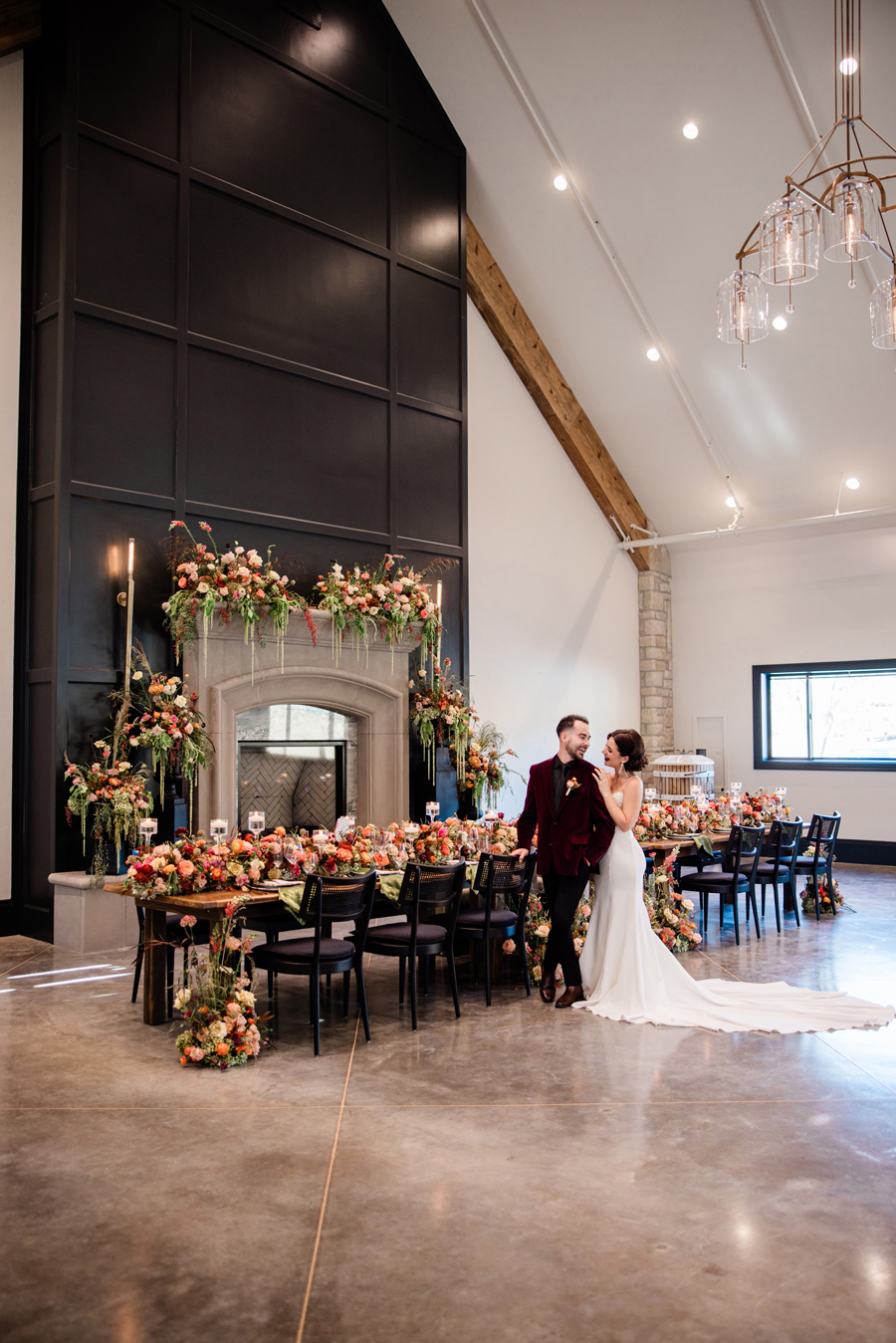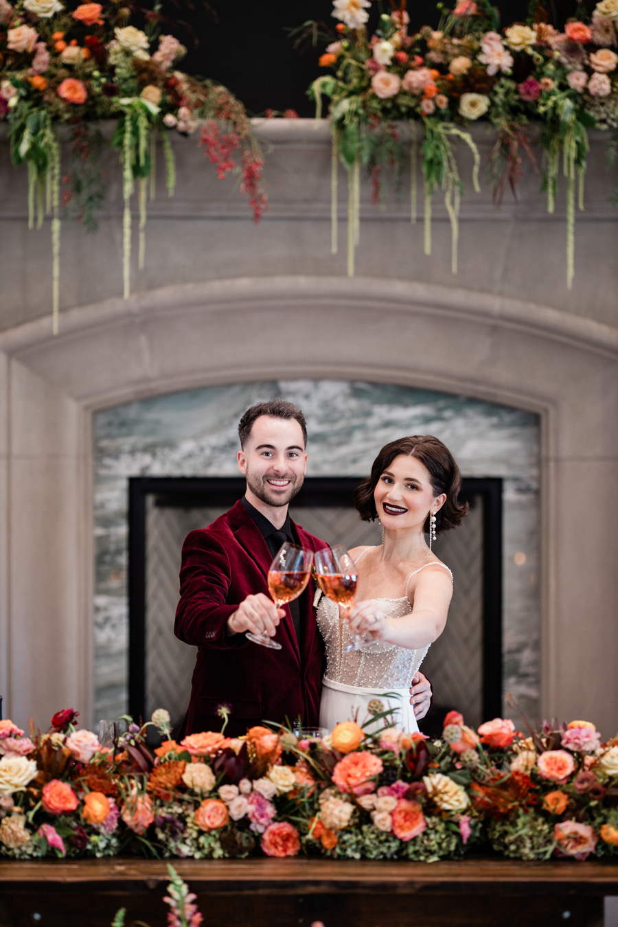 We’re delighted to present our fourth and final Real Weddings styled shoot that’s featured in the just released Winter/Spring 2025 issue! We have a rule during our shoots: no lip on lip kissing. Why, you ask? Because the lipstick will transfer and we’ll have to stop shooting to fix it. So throughout our shoots, we’ll see our couples go in for a little smooch and our editor Wendy will playfully holler, ” No kissing, no kissing!” So our couples have to get a little creative…kissing foreheads, kissing shoulders, kissing necks. Well, that’s EXACTLY what our real couple models Mina & Alex did during our “Crazy in Love” shoot (hence the title of our shoot!!!)! When we were at the end of the shoot, Wendy finally said that they could do a real kiss and it took Alex less than a nano-second to plant one on his beloved Mina! These two were so much fun to spend our shoot day with…and we’ve got the photos to prove it! We think you’ll agree that our creative team designed sets that were breathtaking, and our couple made them magical! Feast your eyes on this beautiful wedding inspiration styled shoot: