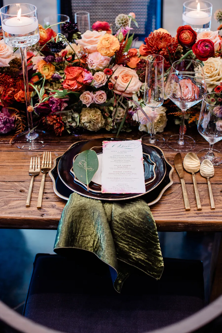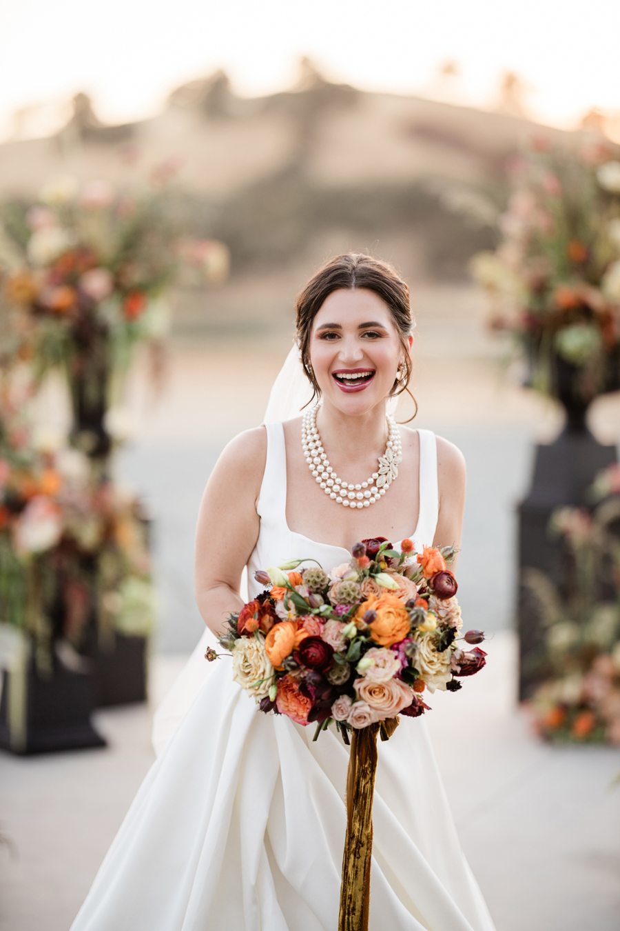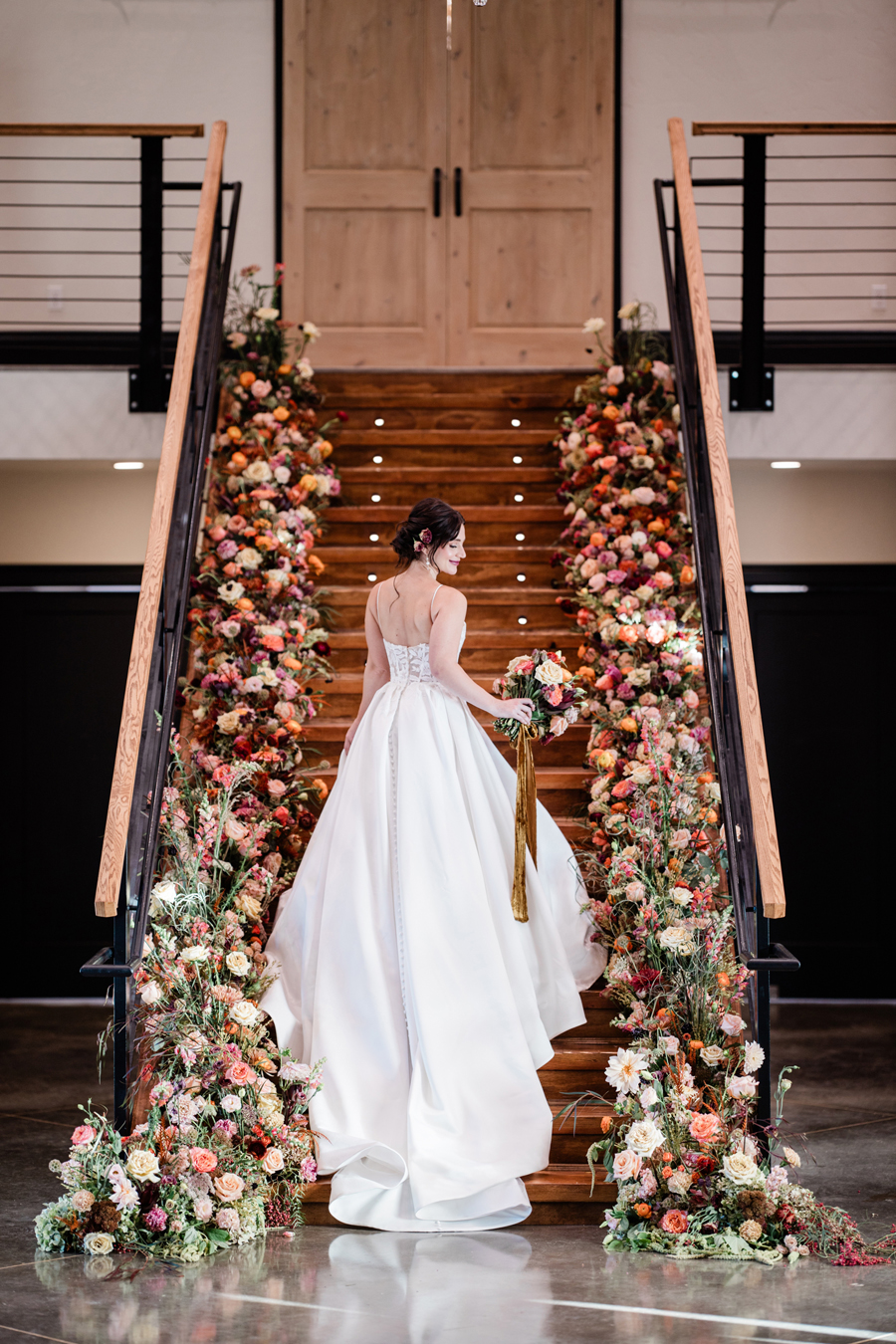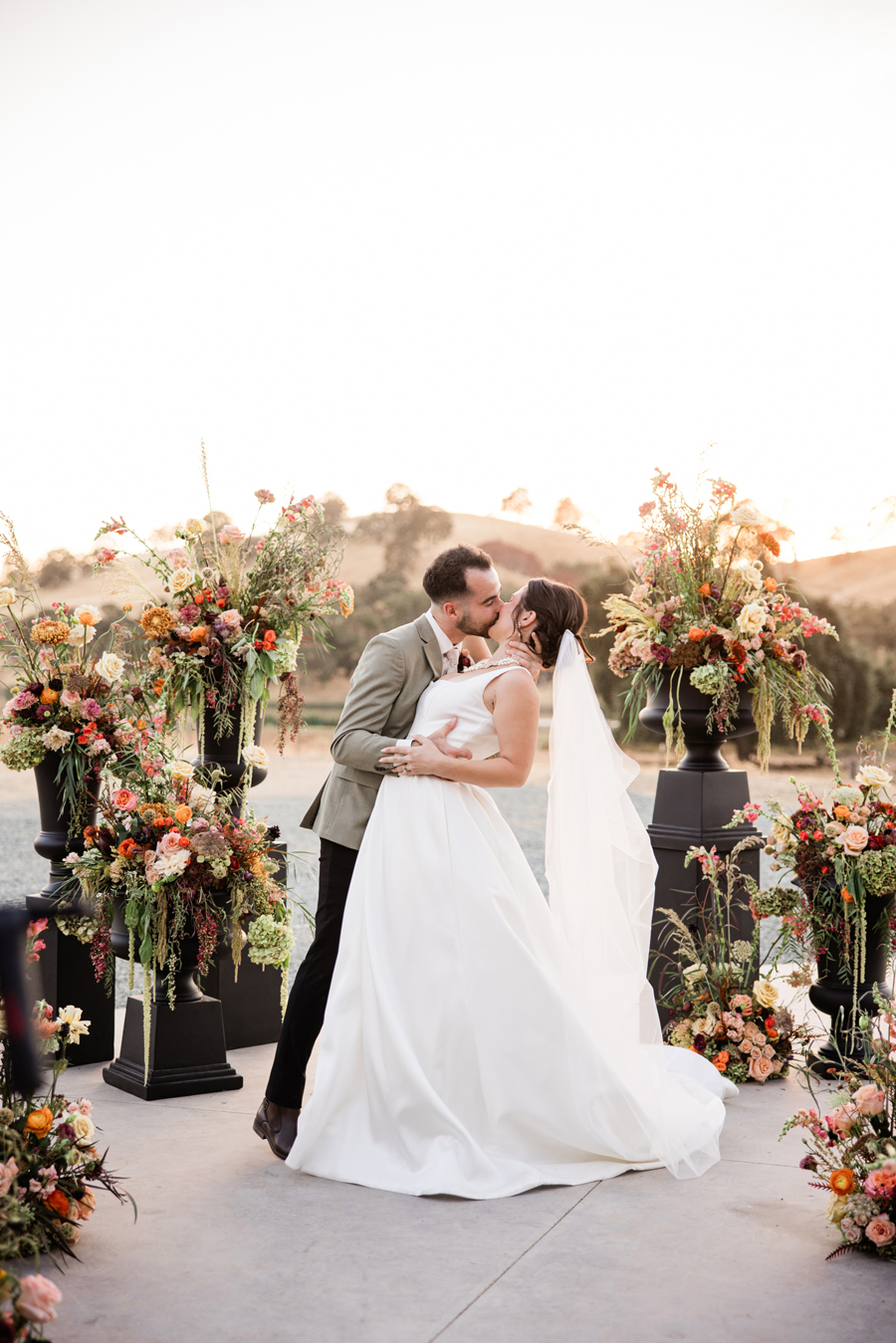 We’re delighted to present our fourth and final Real Weddings styled shoot that’s featured in the just released Winter/Spring 2025 issue! We have a rule during our shoots: no lip on lip kissing. Why, you ask? Because the lipstick will transfer and we’ll have to stop shooting to fix it. So throughout our shoots, we’ll see our couples go in for a little smooch and our editor Wendy will playfully holler, ” No kissing, no kissing!” So our couples have to get a little creative…kissing foreheads, kissing shoulders, kissing necks. Well, that’s EXACTLY what our real couple models Mina & Alex did during our “Crazy in Love” shoot (hence the title of our shoot!!!)! When we were at the end of the shoot, Wendy finally said that they could do a real kiss and it took Alex less than a nano-second to plant one on his beloved Mina! These two were so much fun to spend our shoot day with…and we’ve got the photos to prove it! We think you’ll agree that our creative team designed sets that were breathtaking, and our couple made them magical! Feast your eyes on this beautiful wedding inspiration styled shoot: