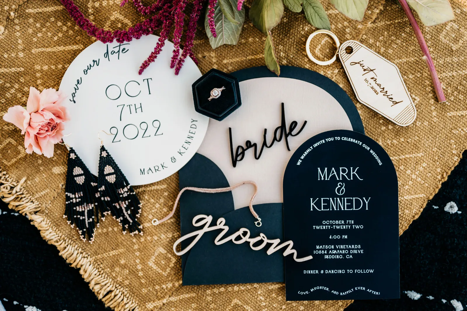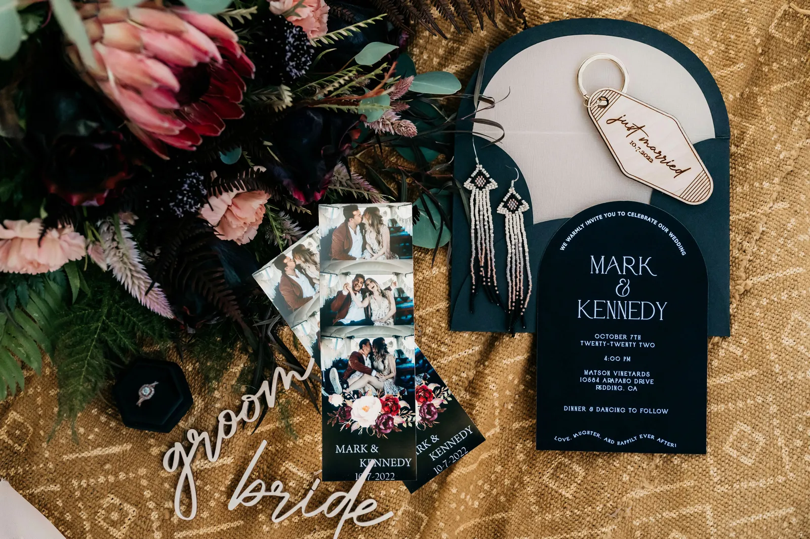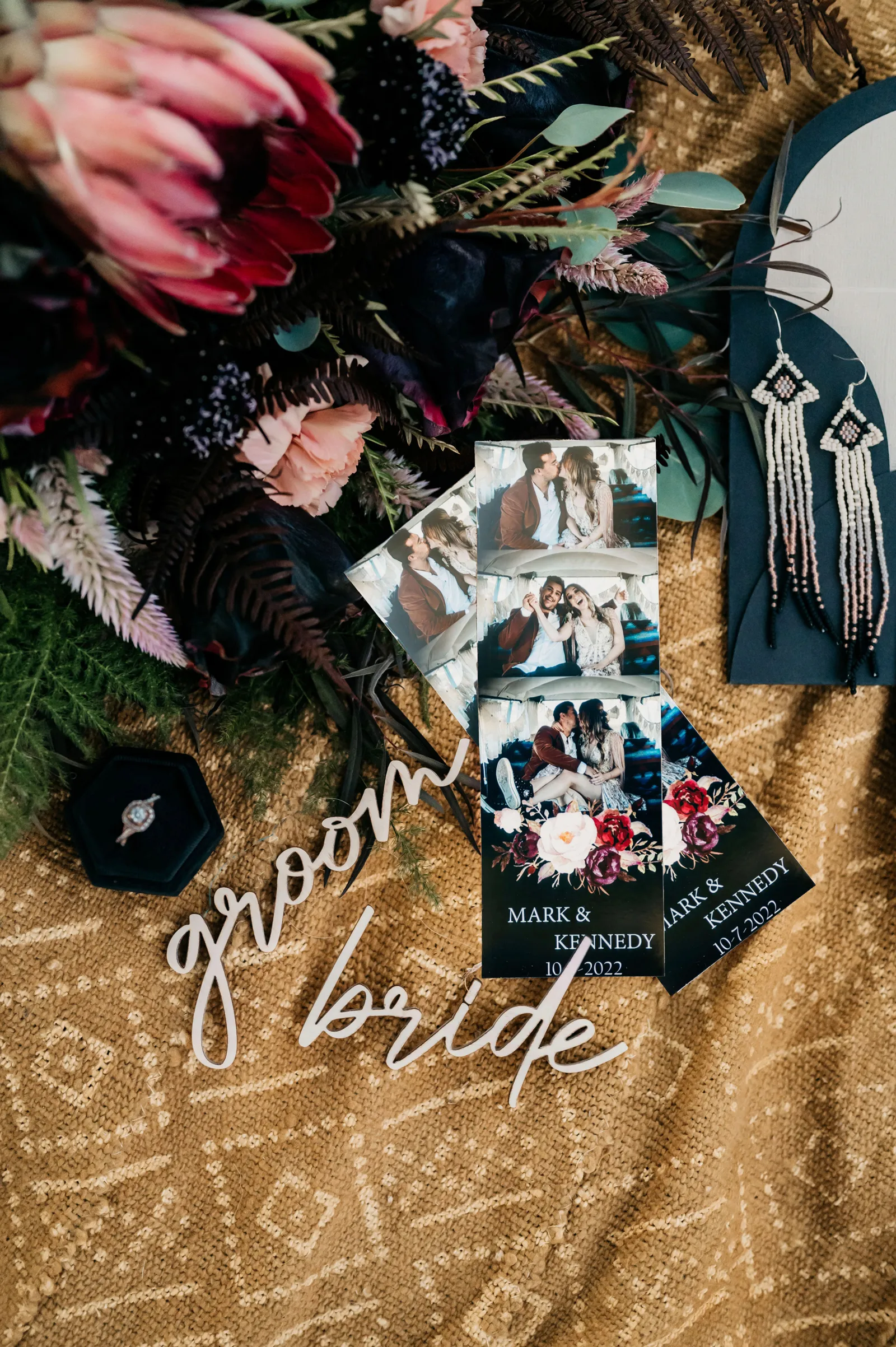 “The design and feel for this styled shoot was a moody, fun eclectic vibe. I wanted lots of velvet and a bit of a gypsy boho feel. It needed to be spunky, fun and not too perfect. I created a mood board full of rich warm fall colors, and the creating started. From the velvet studded Converse to the gorgeous invite suite, to the amazing colorful balloons. Every detail came together just perfectly. Our amazing real life couple was playful, carefree and a bit mischievous, which is exactly what we wanted for this shoot. The Photo Bus tied everything together with its stylish and playful aesthetic. We hope this can inspire you to go wild and have fun with colors and textures, and create a day that is unique to you!” -Chenoa Sedillo
