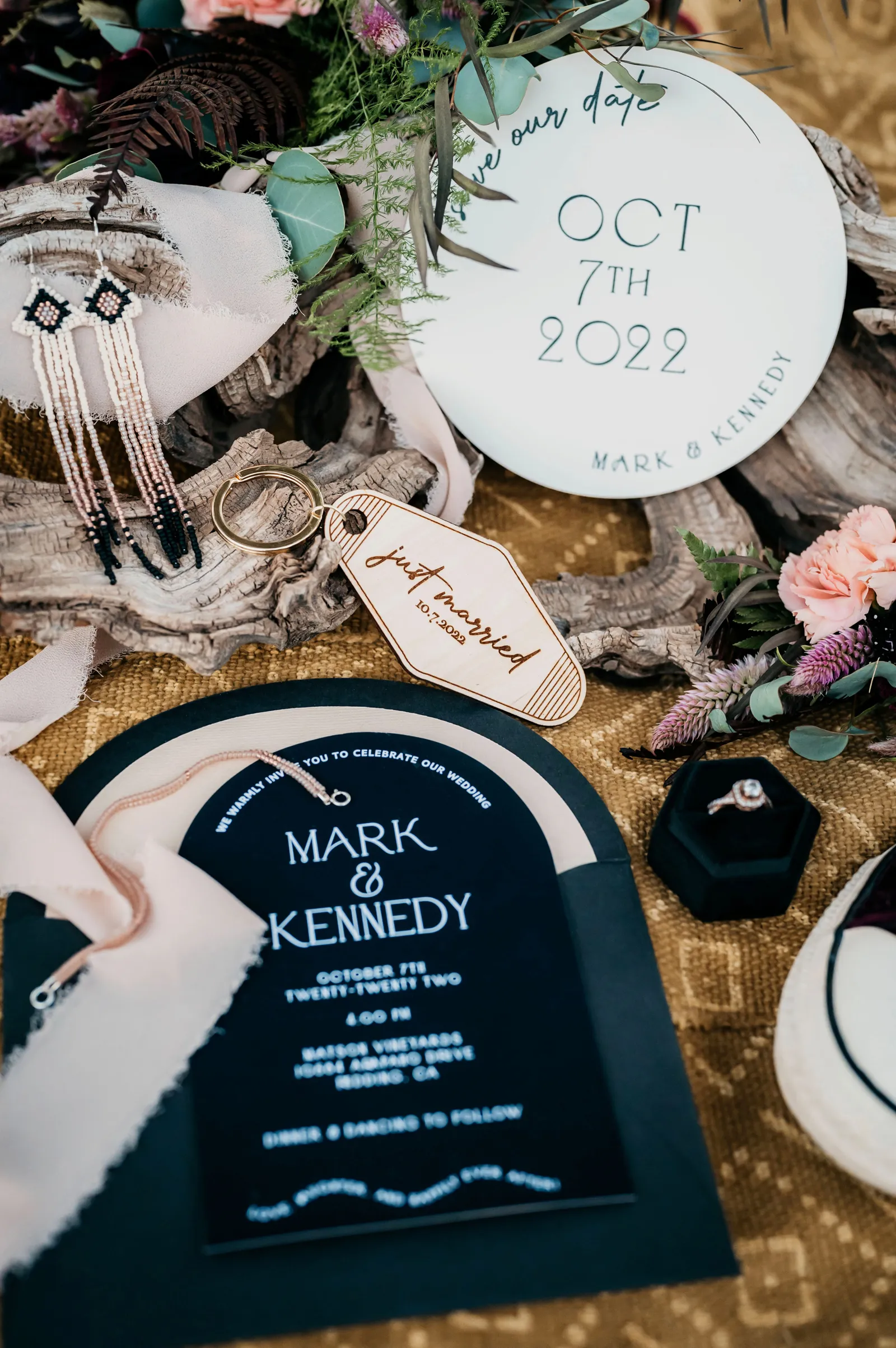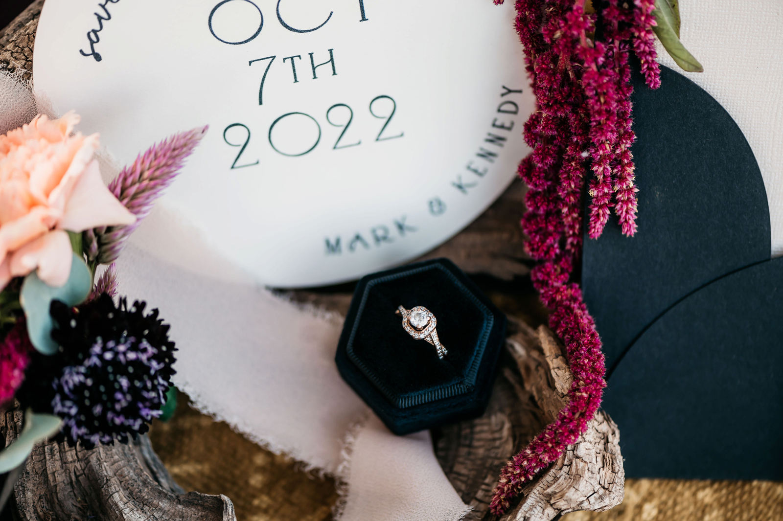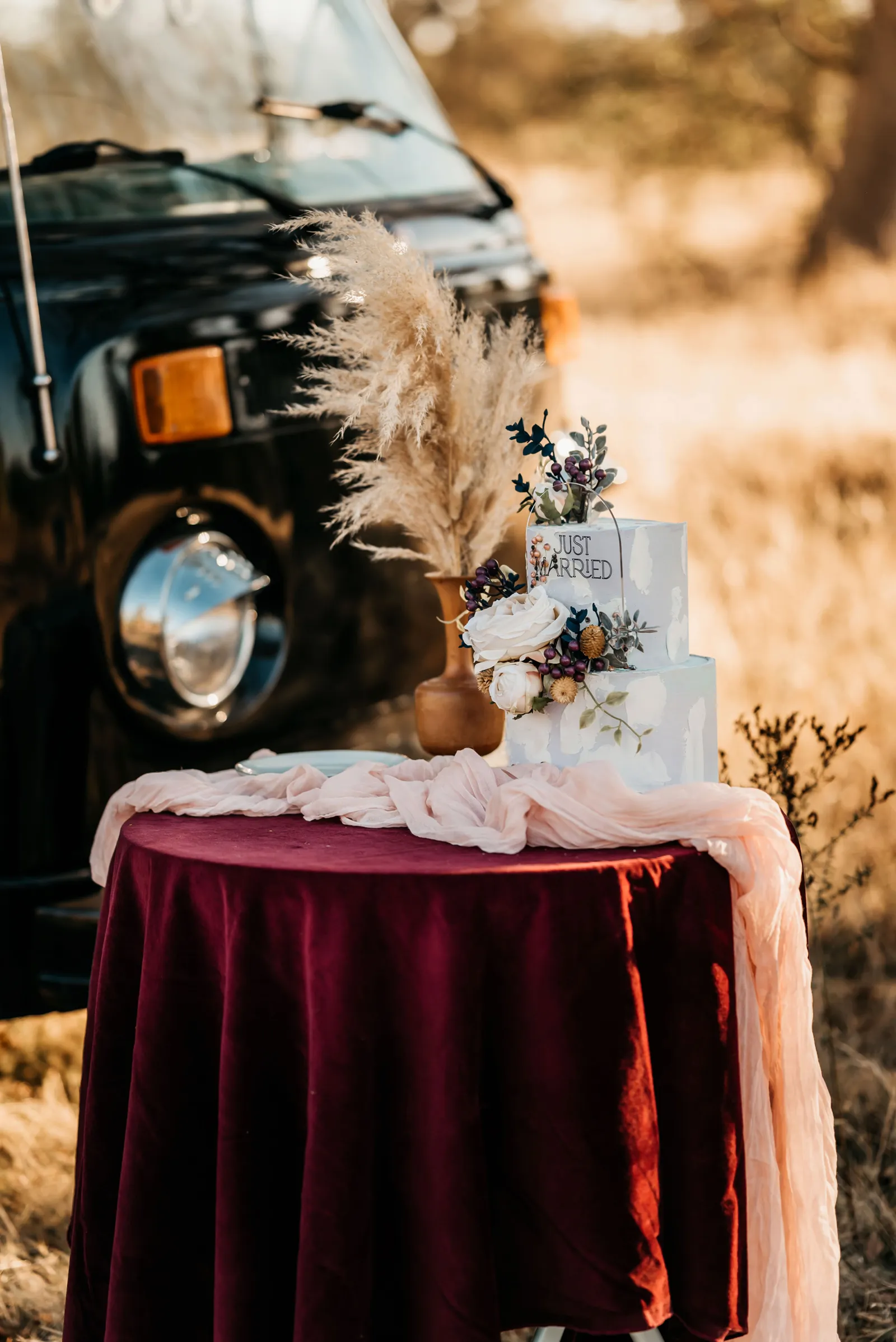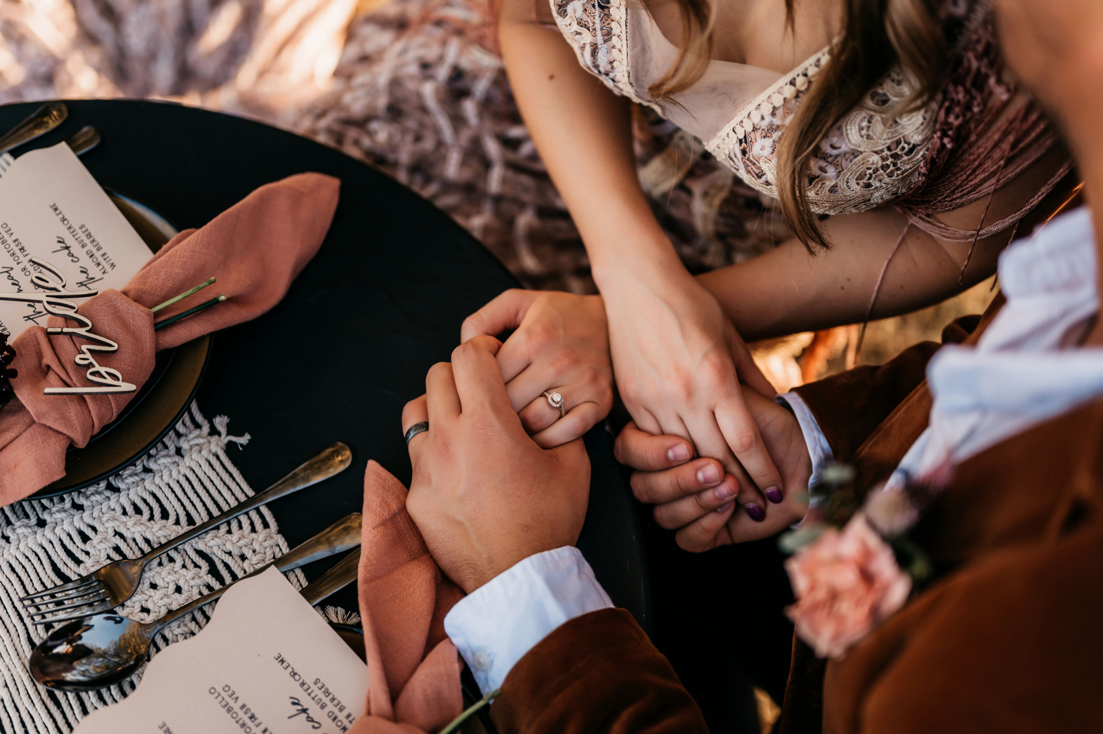 “The design and feel for this styled shoot was a moody, fun eclectic vibe. I wanted lots of velvet and a bit of a gypsy boho feel. It needed to be spunky, fun and not too perfect. I created a mood board full of rich warm fall colors, and the creating started. From the velvet studded Converse to the gorgeous invite suite, to the amazing colorful balloons. Every detail came together just perfectly. Our amazing real life couple was playful, carefree and a bit mischievous, which is exactly what we wanted for this shoot. The Photo Bus tied everything together with its stylish and playful aesthetic. We hope this can inspire you to go wild and have fun with colors and textures, and create a day that is unique to you!” -Chenoa Sedillo