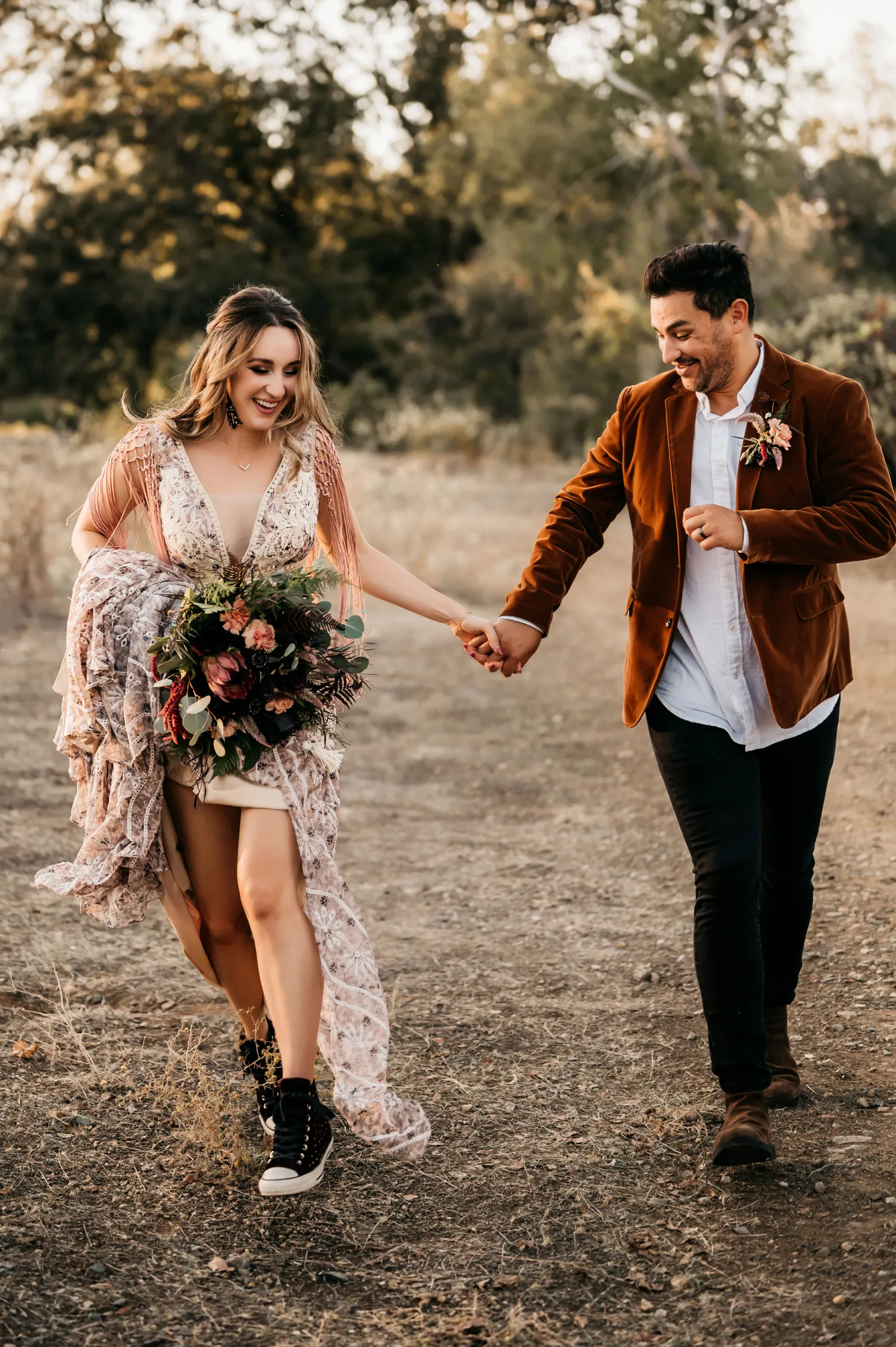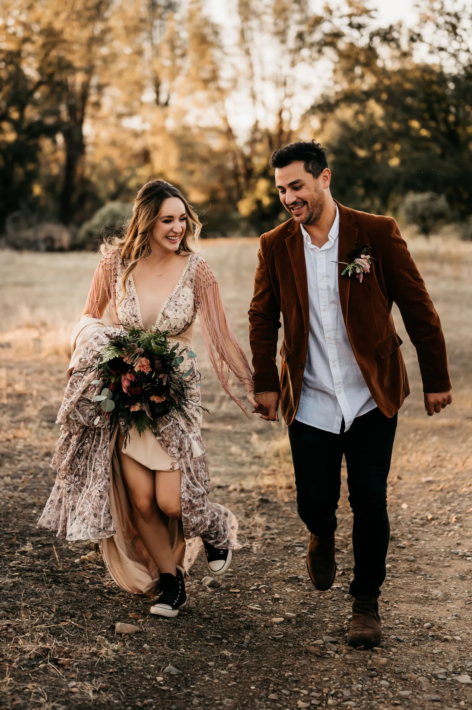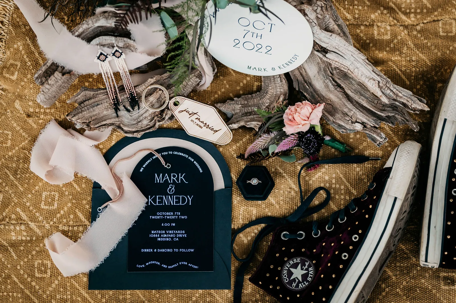 Happy Submitted Styled Shoot Sunday, folks! This shoot is so fun and colorful, we cannot wait for you to see all the amazing details! Rustic meets boho meets playful — thanks to wispy floral arrangements, rich colors, Converse paired with a detailed gown, and more. Don’t forget to read about the inspiration behind the shoot down below!