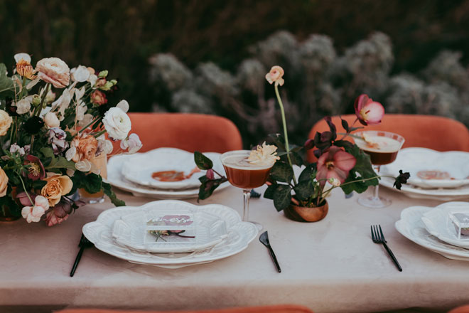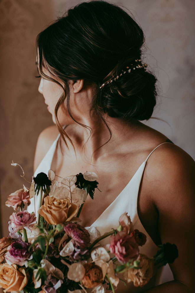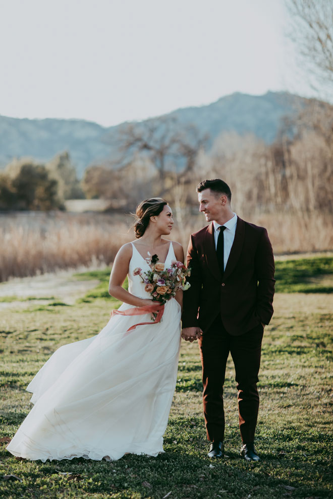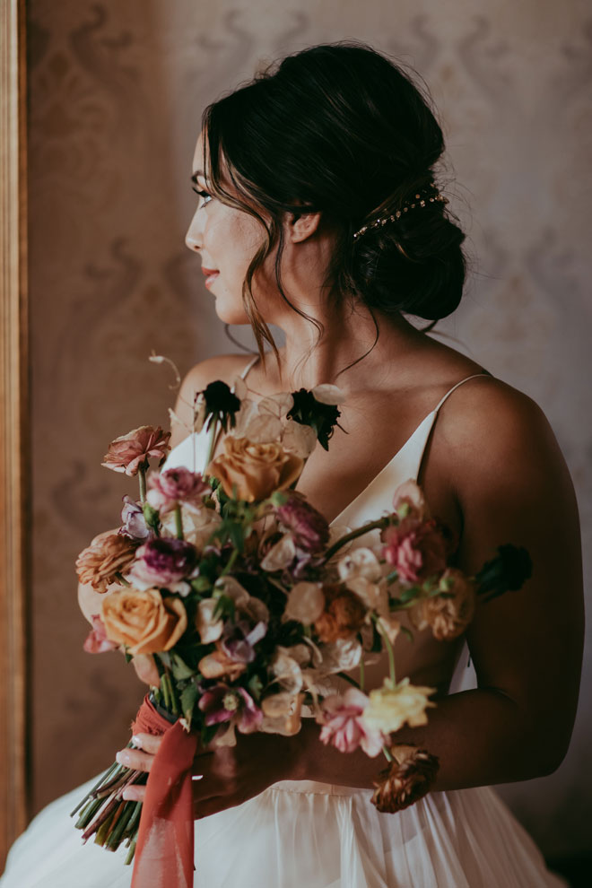 There’s so much beauty in simplicity and this styled shoot captures the essence of that. Soft autumn colors, a flowing white dress and oxblood suit, crafted cocktails, plus more, all on an expansive and versatile estate venue. We hope this styled shoot inspires your wedding dreams…and real dreams for that matter. We’d love to have those flowers in our dreams!