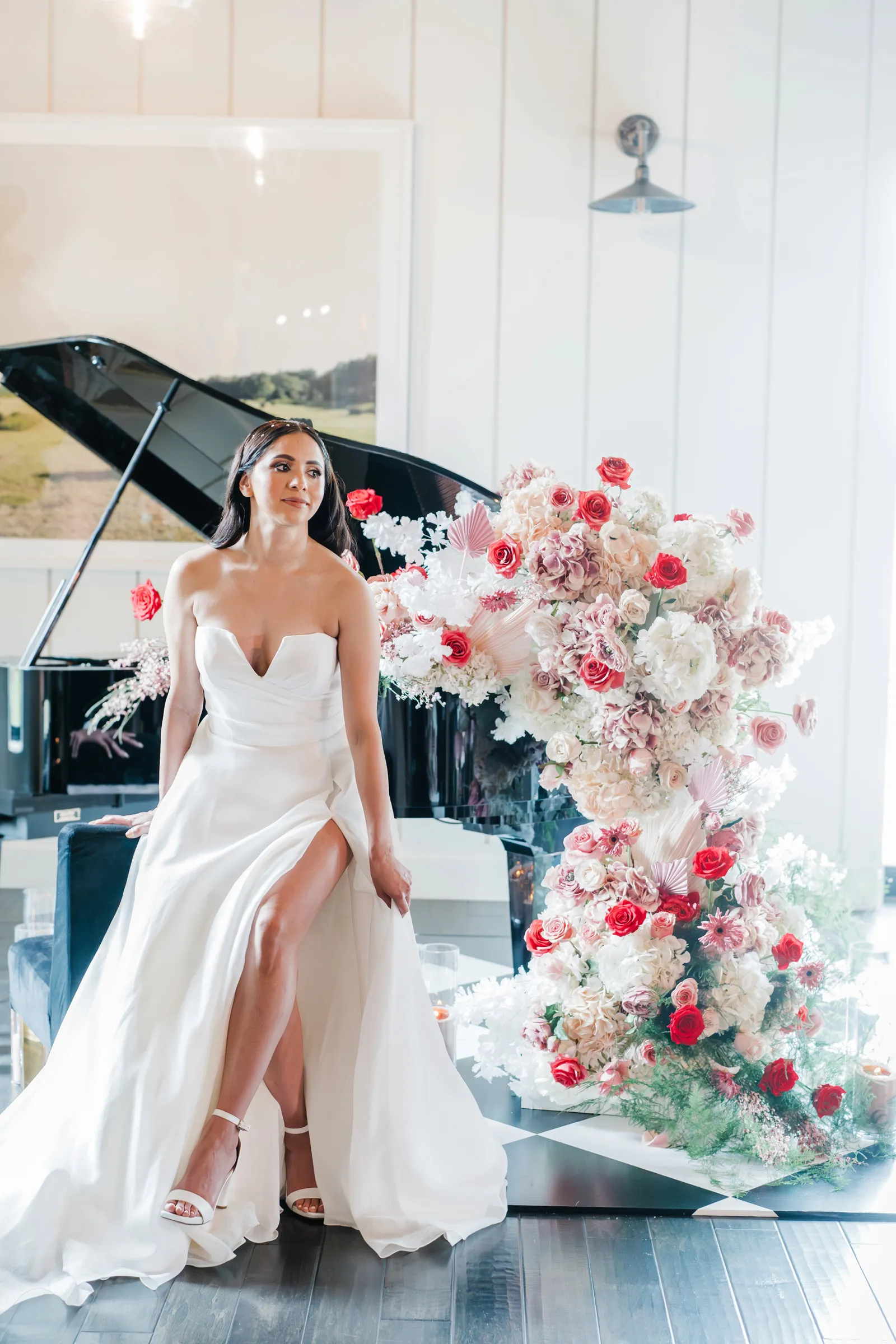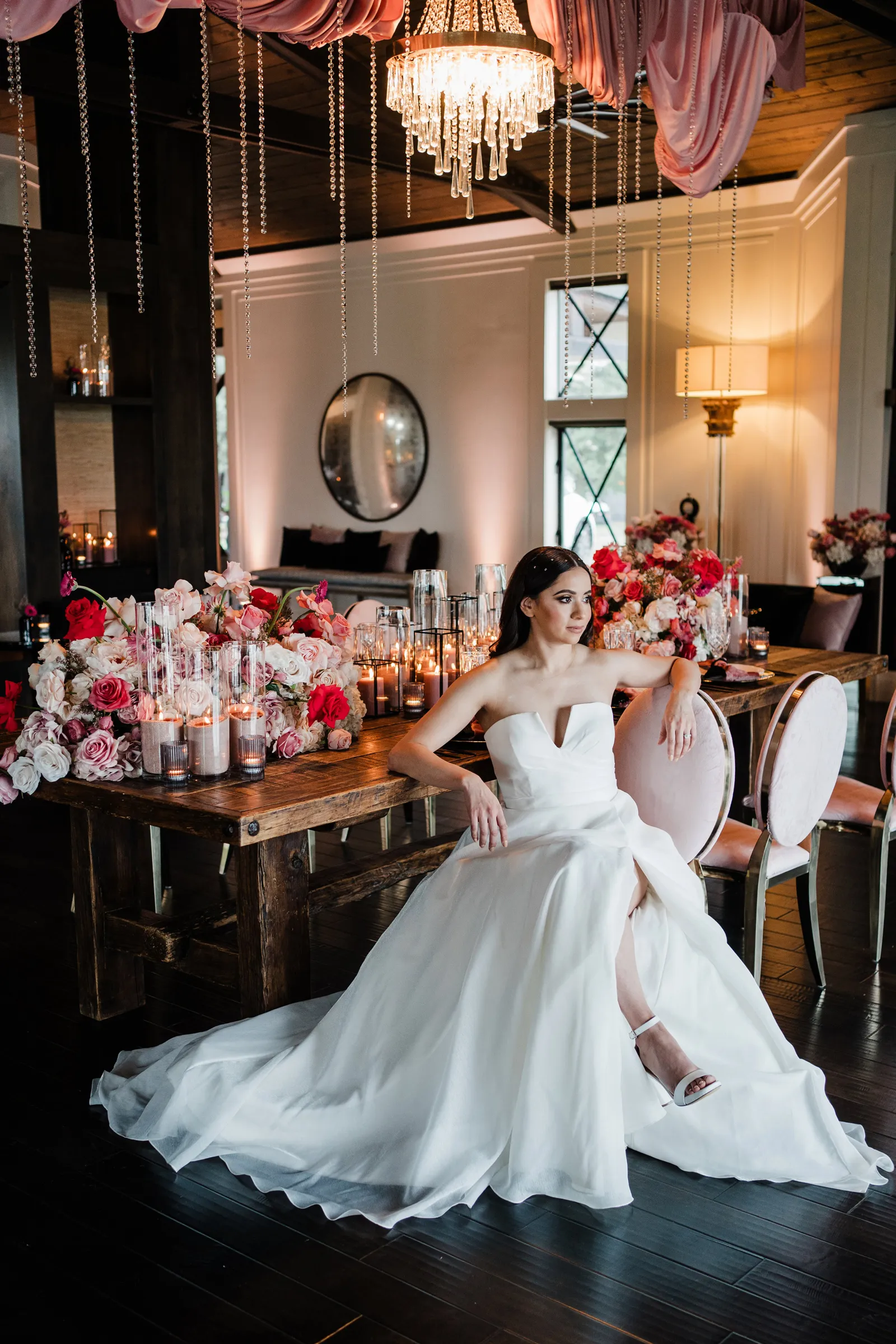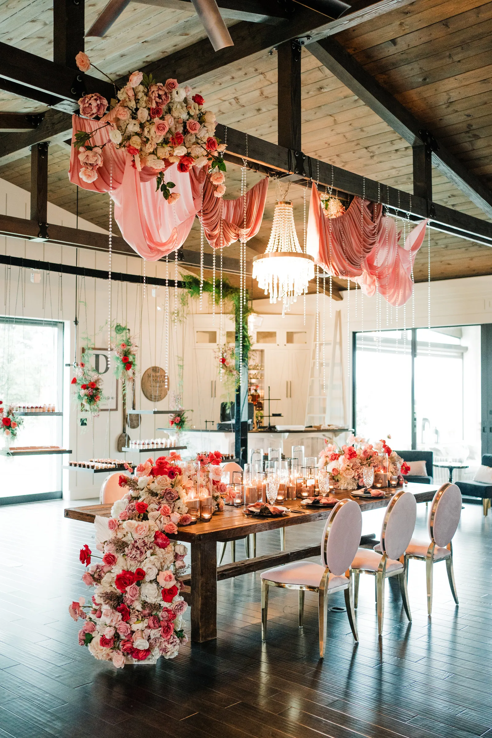 Hello everyone, and welcome back to another Submitted Styled Shoot Sunday! Today, we’re heading over to The Ranch at Lone Oak Longhorns and taking you on a rose-inspired journey! Expect tons of luxurious and elegant floral arrangements, stunning models, and plenty of too-pretty-to-eat desserts, all captured by Maiyan Studios! Make sure you keep scrolling so you can see more rose-inspired, gorgeous wedding inspiration. Happy Sunday!