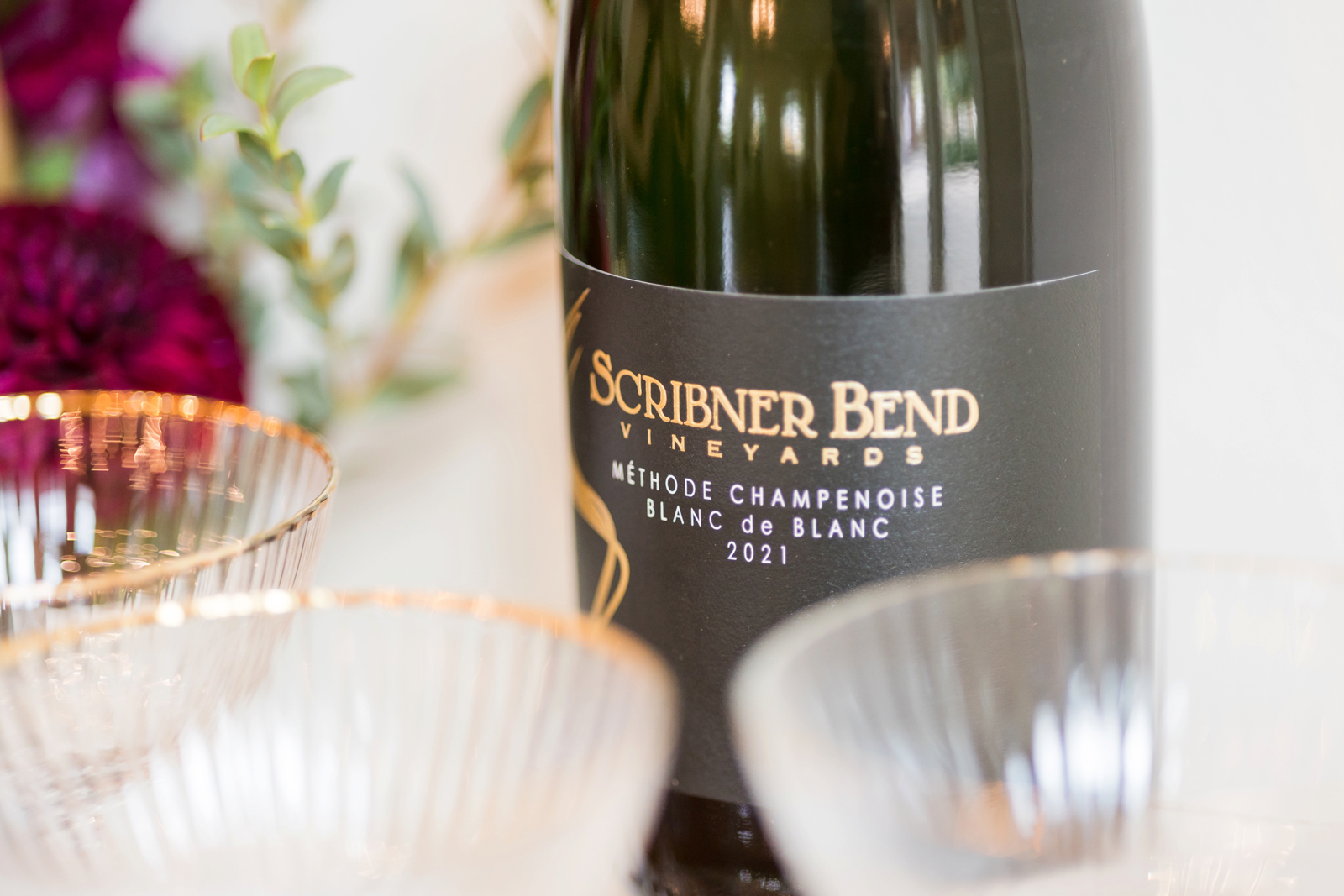 “My inspiration for this shoot came from the venue itself. It’s such a picturesque venue that I wanted to use colors and pieces that would help highlight some of the best features of the venue – the vineyards, outdoor fireplace, fountain, and of course the beautiful barn doors. Flowers in wine-like tones were the main focal point (next to the beautifully bottled wine from the vineyard), complemented by more neutral tones and a minimal setting to show off the elegance and simplicity that the venue offers. Most people think of wineries for rustic or more whimsical weddings but I wanted to show that a winery can be a versatile space for events by dressing it with some more modern pieces from some great local companies. I think the Chanel quote, “Simplicity is the key note of all true elegance” describes it best. I am in love with the way this shoot turned out and I want to thank the teams at Scribner Bend, Strelitzia, Barnswallow Rentals, and Events to Remember Party Rentals for bringing the vision to life and Rachel and Mark Photography & Films for capturing it so beautifully.” – Alexandria, Alexandria Elaine Events.