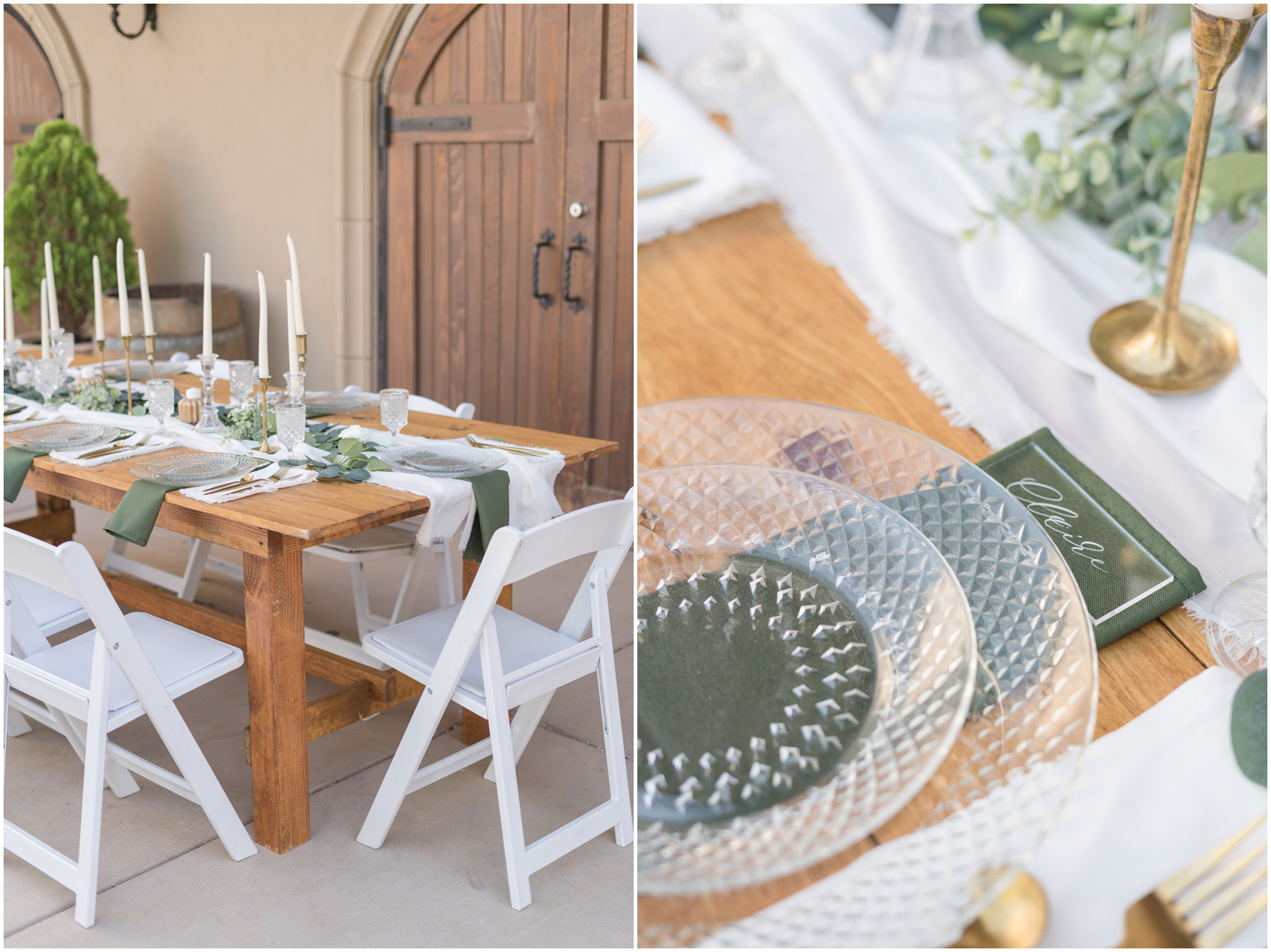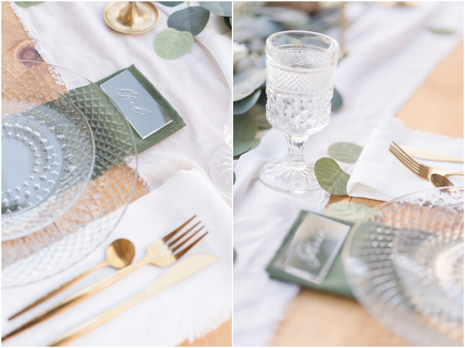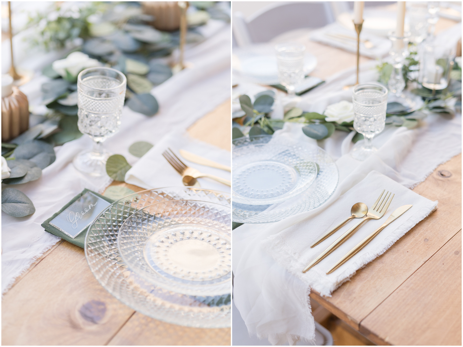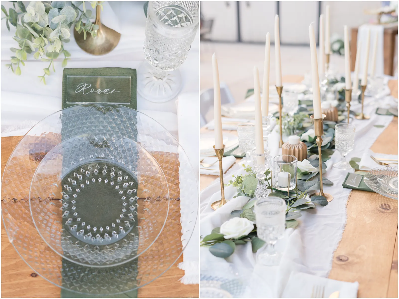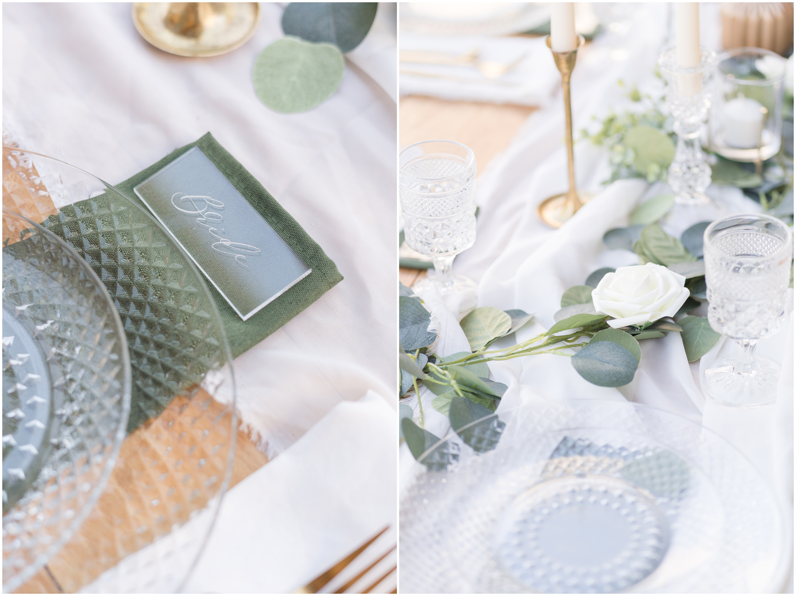 “It’s the simplicity for me. There is something so elegant about white, green and pops of gold. AND those crystal elements, I mean it’s truly a beautiful set up.