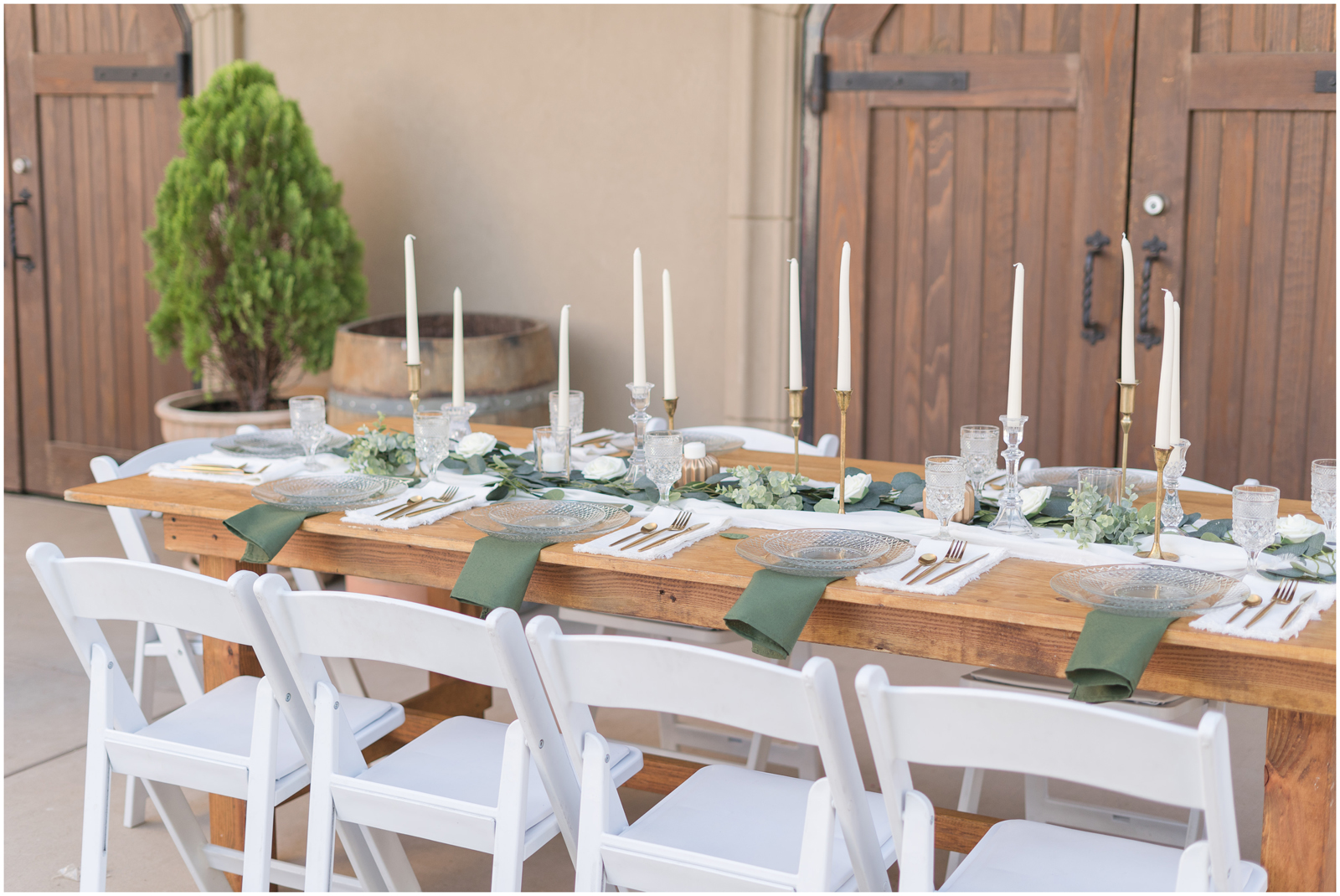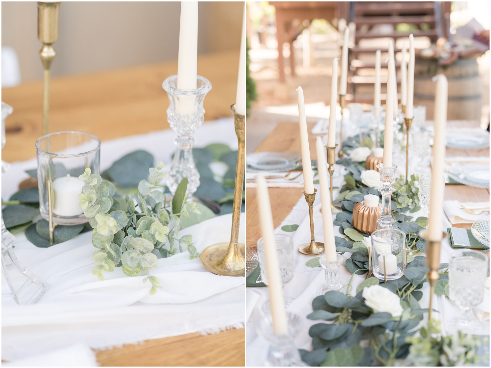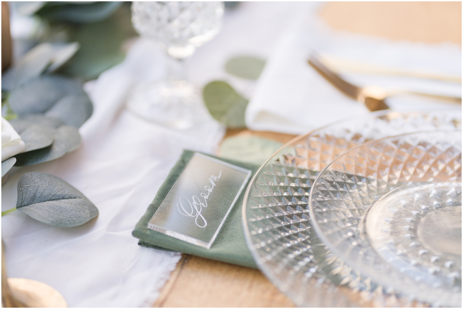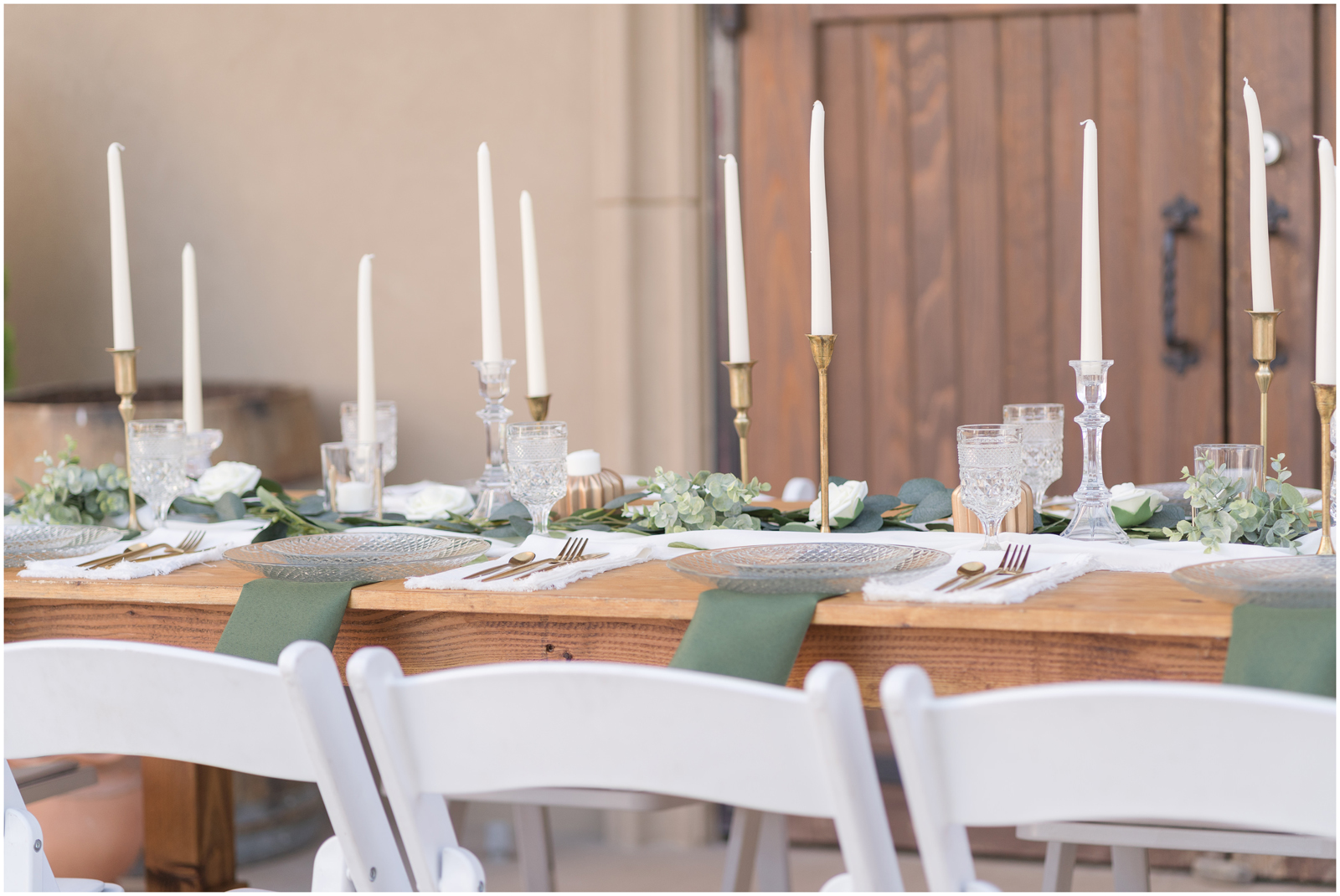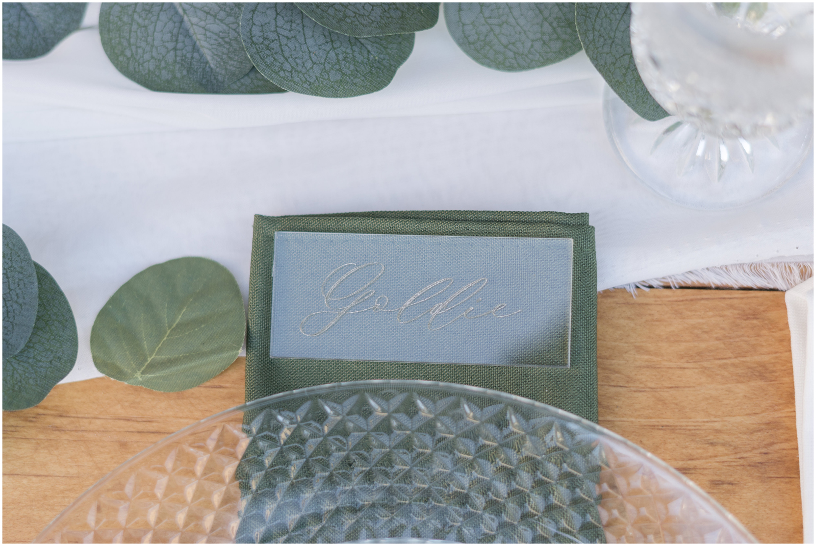 “It’s the simplicity for me. There is something so elegant about white, green and pops of gold. AND those crystal elements, I mean it’s truly a beautiful set up.