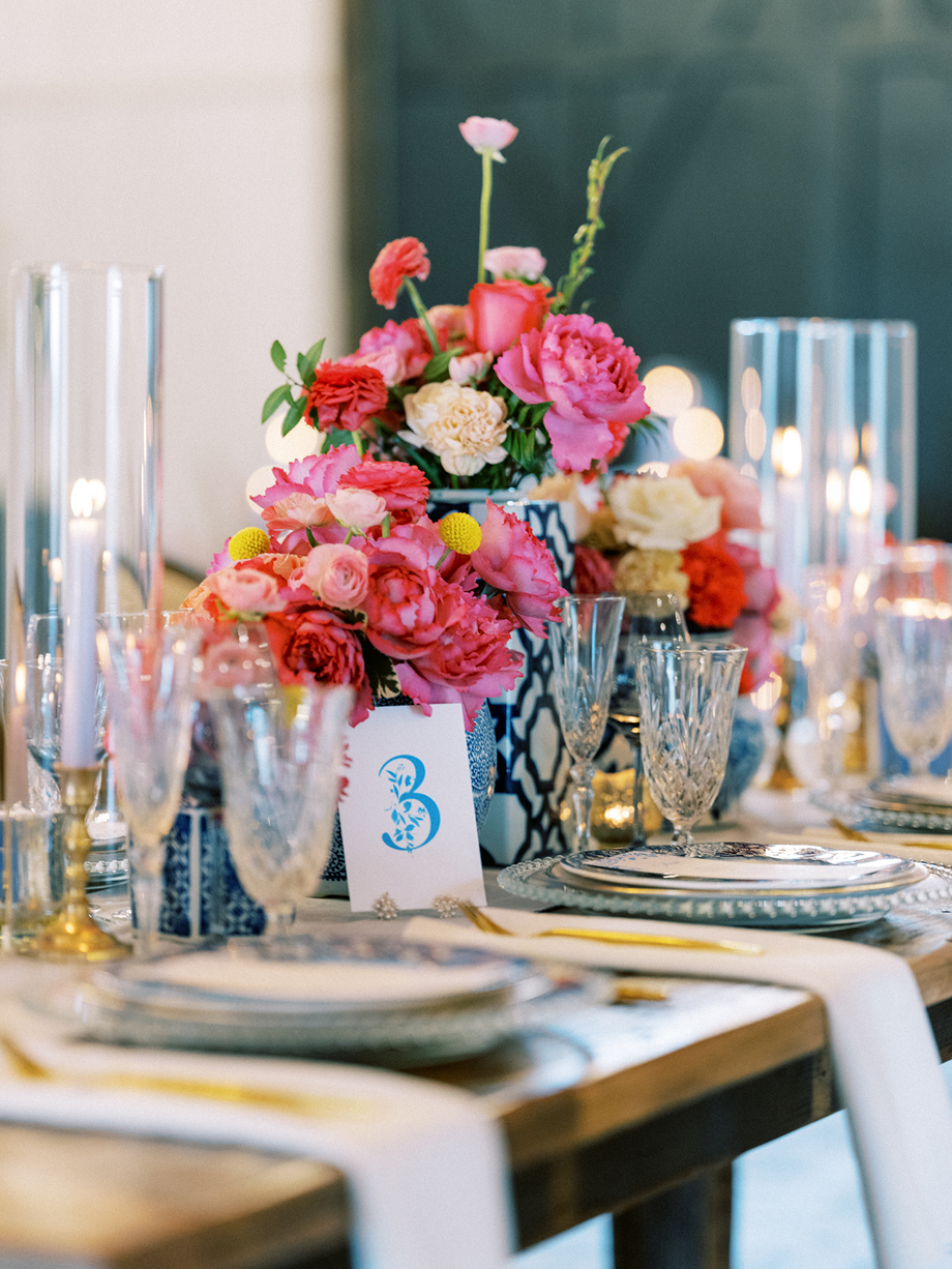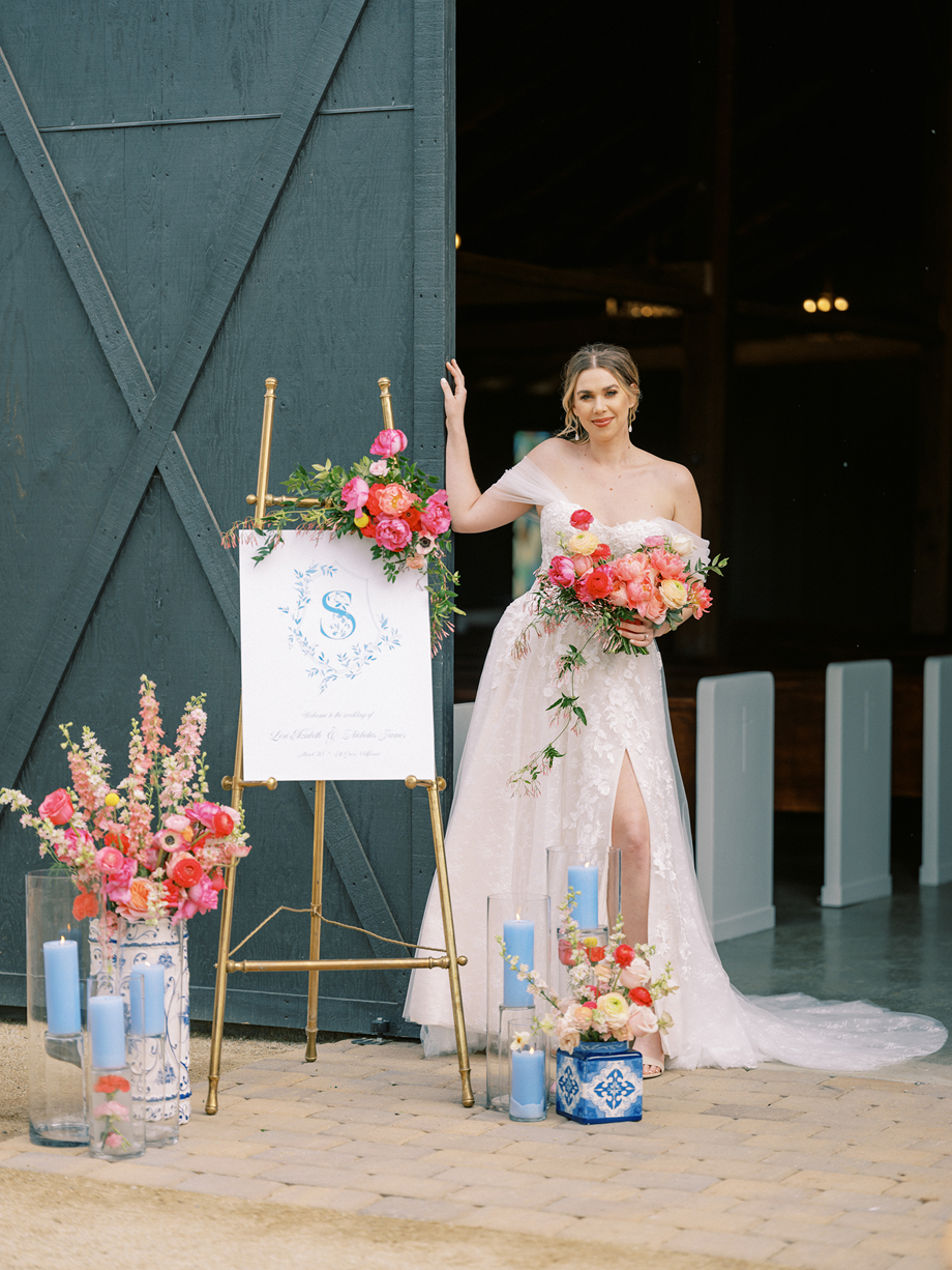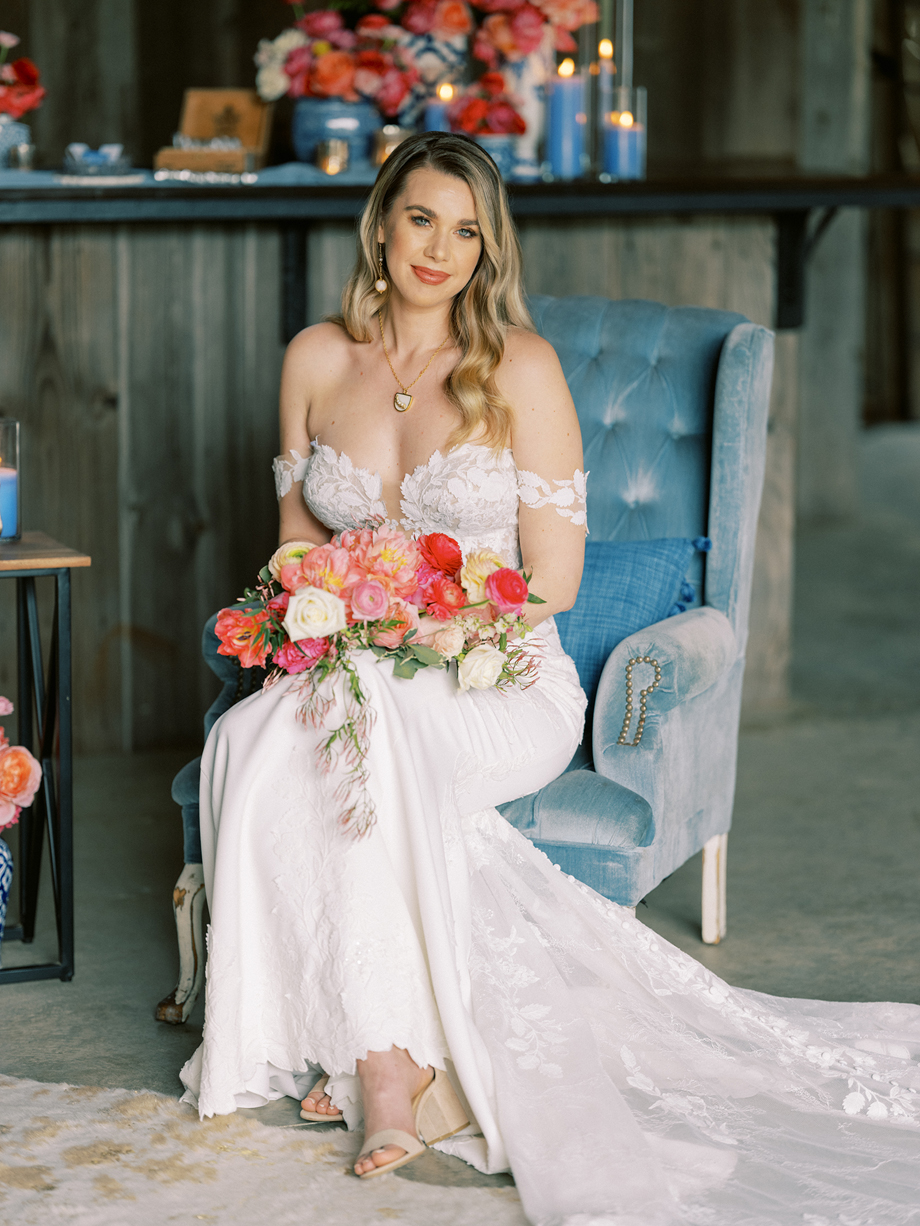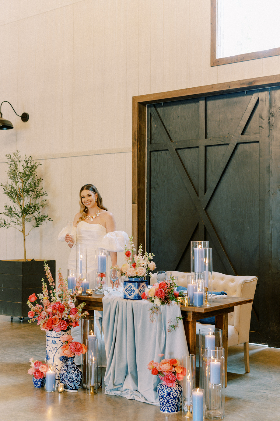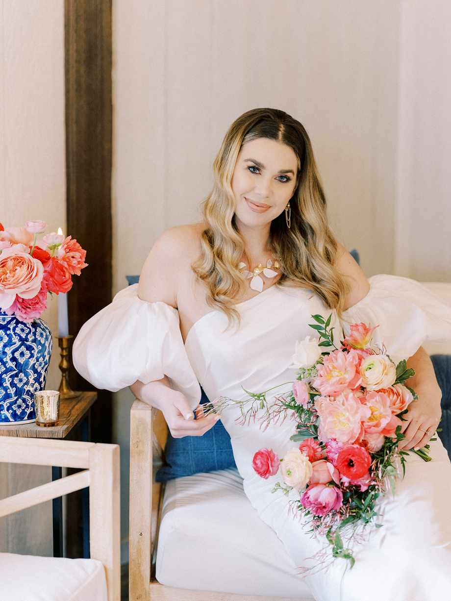 Our “Charmed by Love” styled shoot was inspired by a classic piece of china. You know the one: white with intricate blue decorations. Classic and stunning. Much like our real bride model, Lexi. But we did punch up the color with bright and fun pink florals. Also much like Lexi; bright and fun just like all brides-to-be should be! Check out the layout from this stunning shoot below.