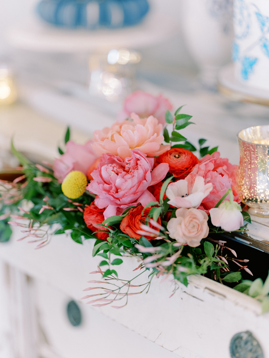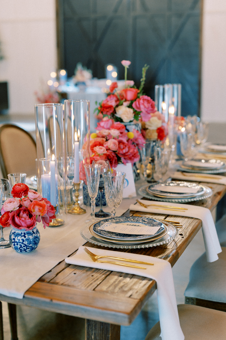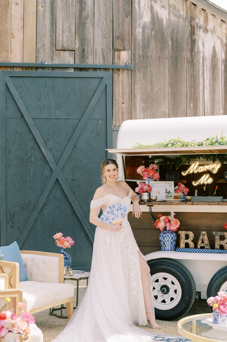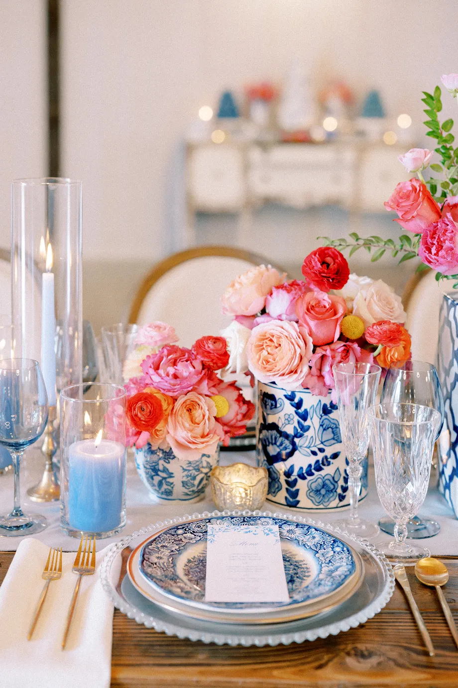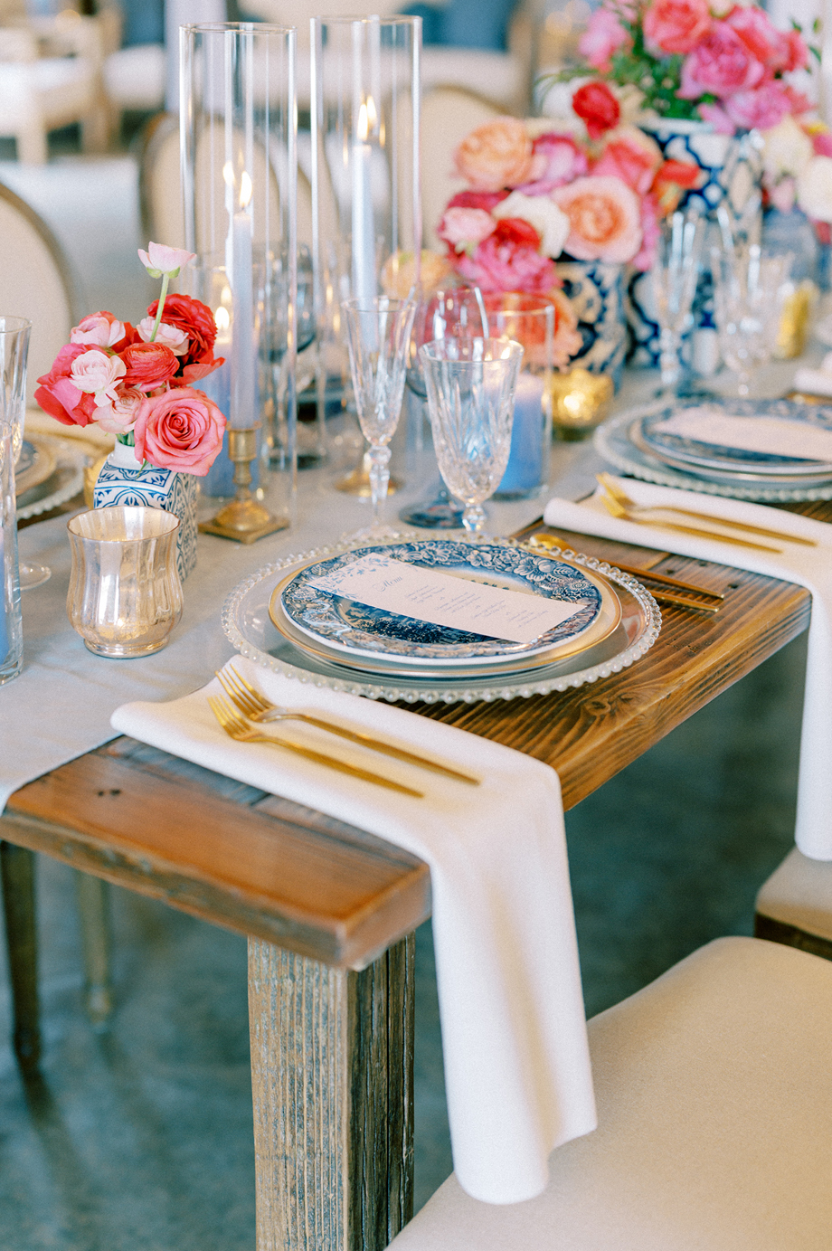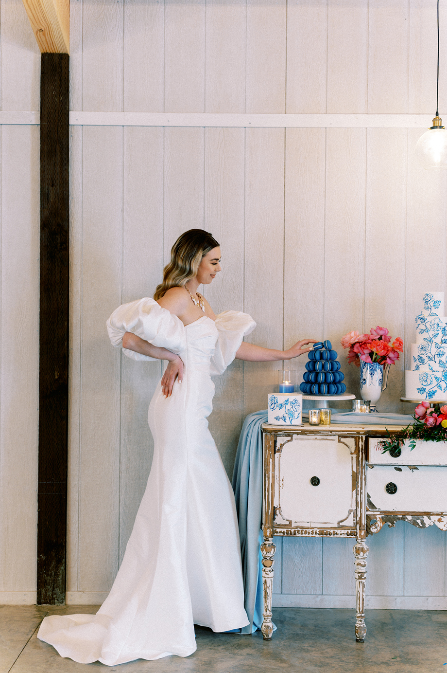 Our “Charmed by Love” styled shoot was inspired by a classic piece of china. You know the one: white with intricate blue decorations. Classic and stunning. Much like our real bride model, Lexi. But we did punch up the color with bright and fun pink florals. Also much like Lexi; bright and fun just like all brides-to-be should be! Check out the layout from this stunning shoot below.