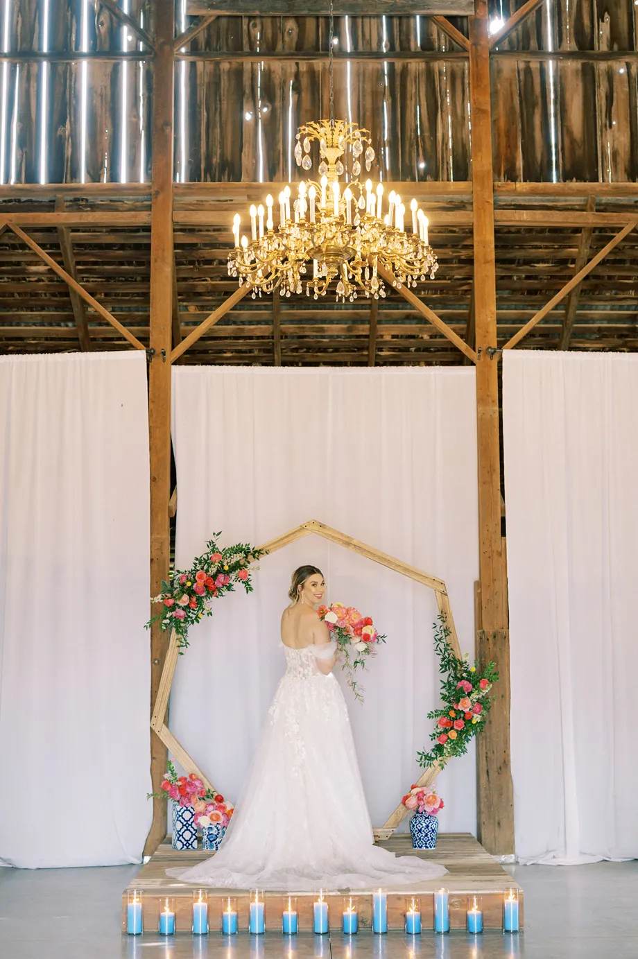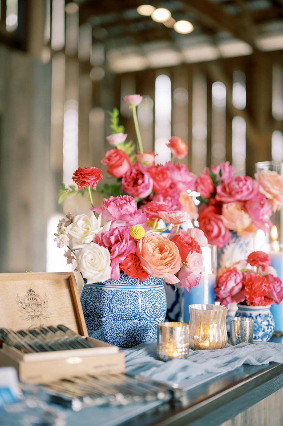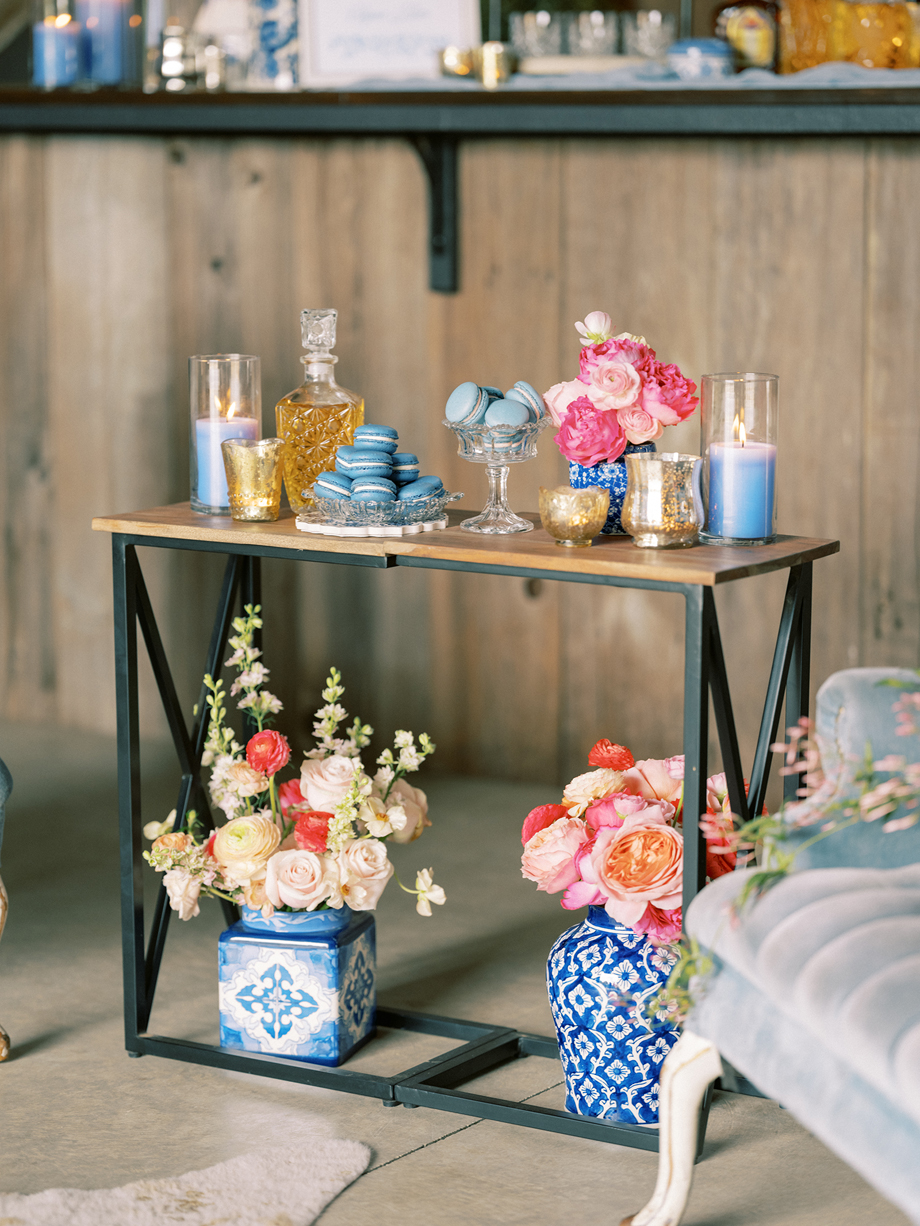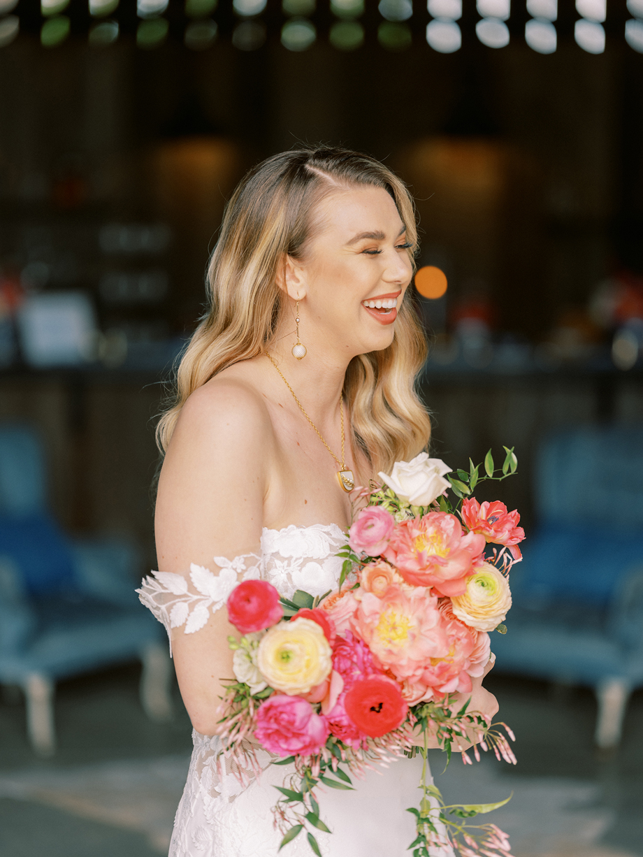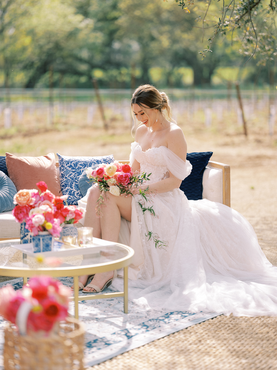 Our “Charmed by Love” styled shoot was inspired by a classic piece of china. You know the one: white with intricate blue decorations. Classic and stunning. Much like our real bride model, Lexi. But we did punch up the color with bright and fun pink florals. Also much like Lexi; bright and fun just like all brides-to-be should be! Check out the layout from this stunning shoot below.