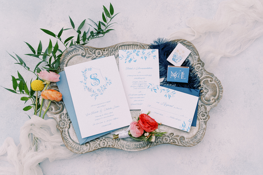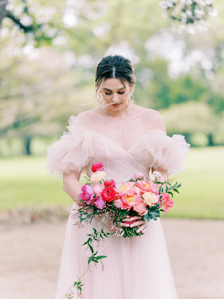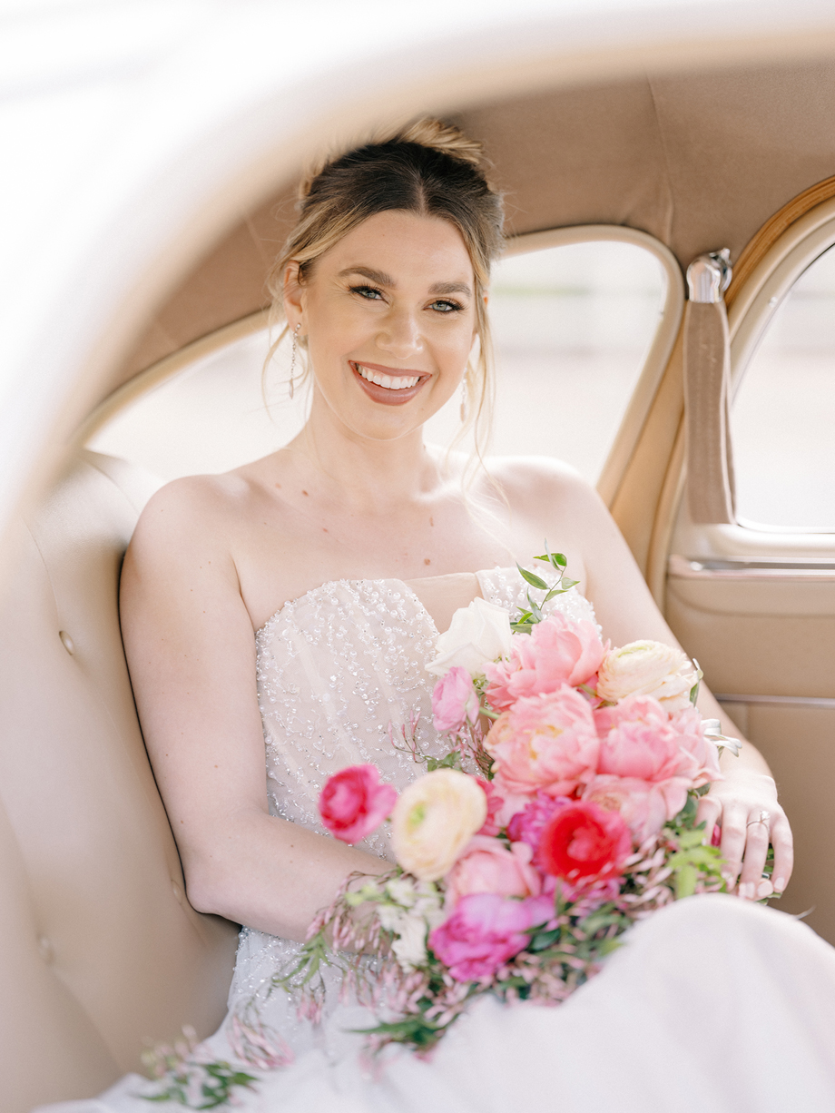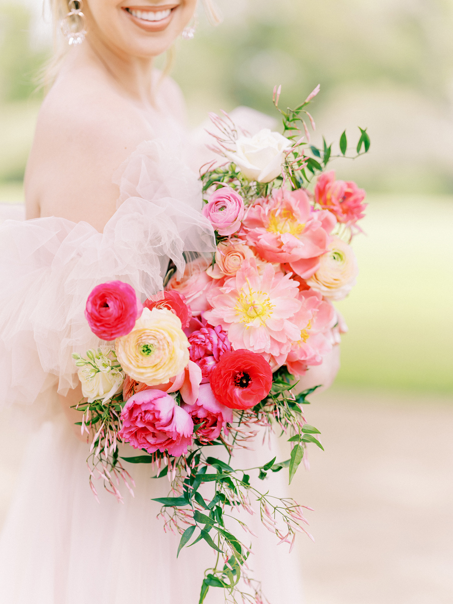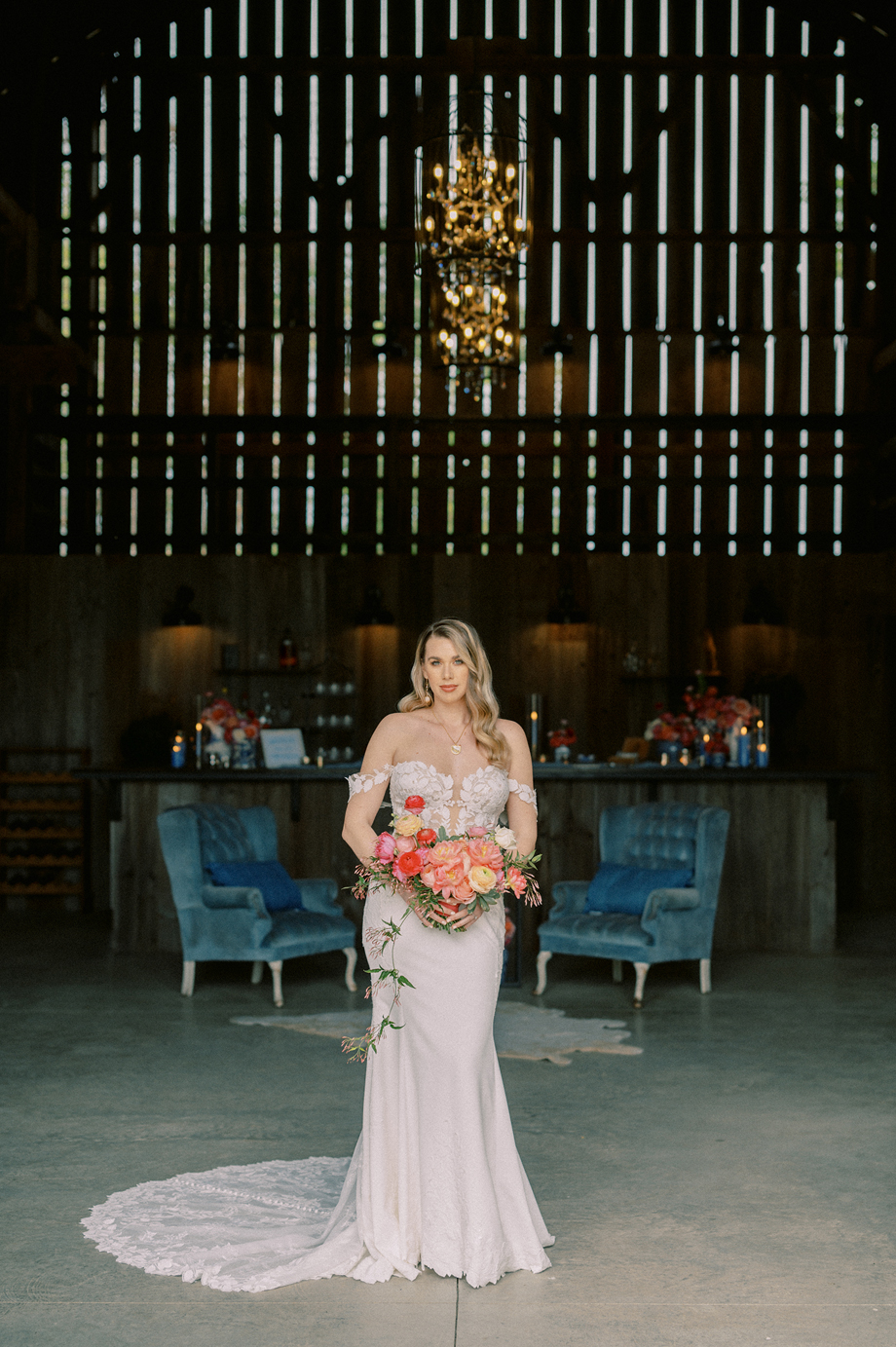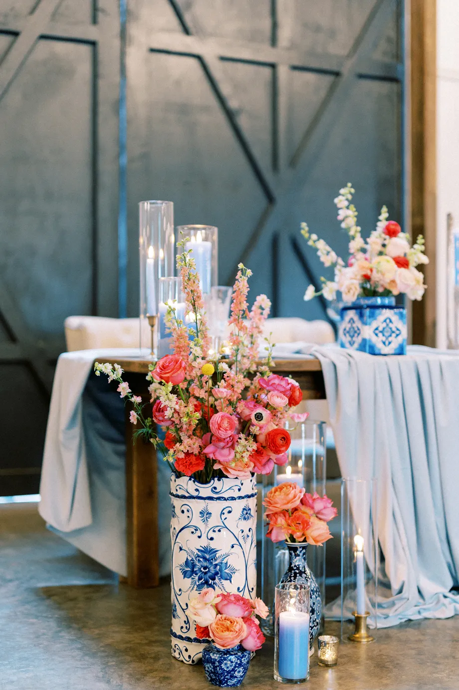 Our “Charmed by Love” styled shoot was inspired by a classic piece of china. You know the one: white with intricate blue decorations. Classic and stunning. Much like our real bride model, Lexi. But we did punch up the color with bright and fun pink florals. Also much like Lexi; bright and fun just like all brides-to-be should be! Check out the layout from this stunning shoot below.